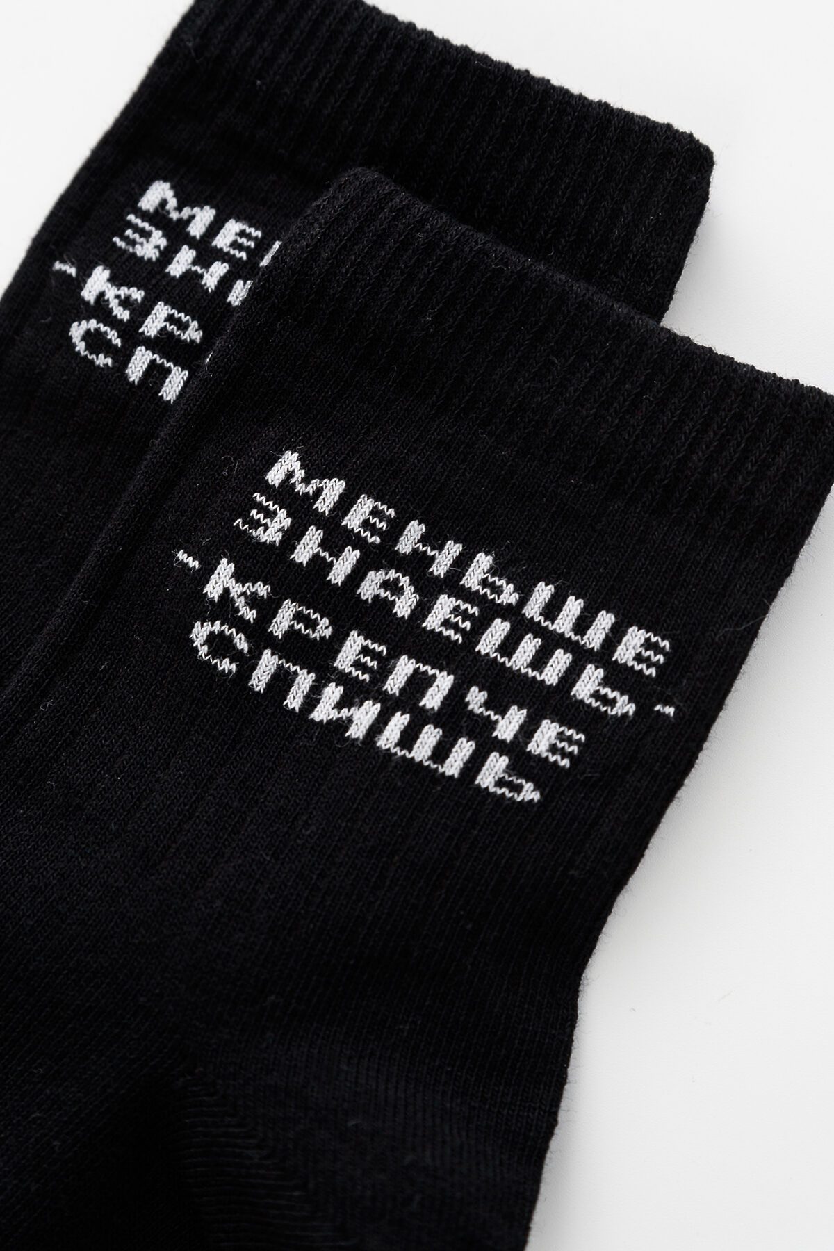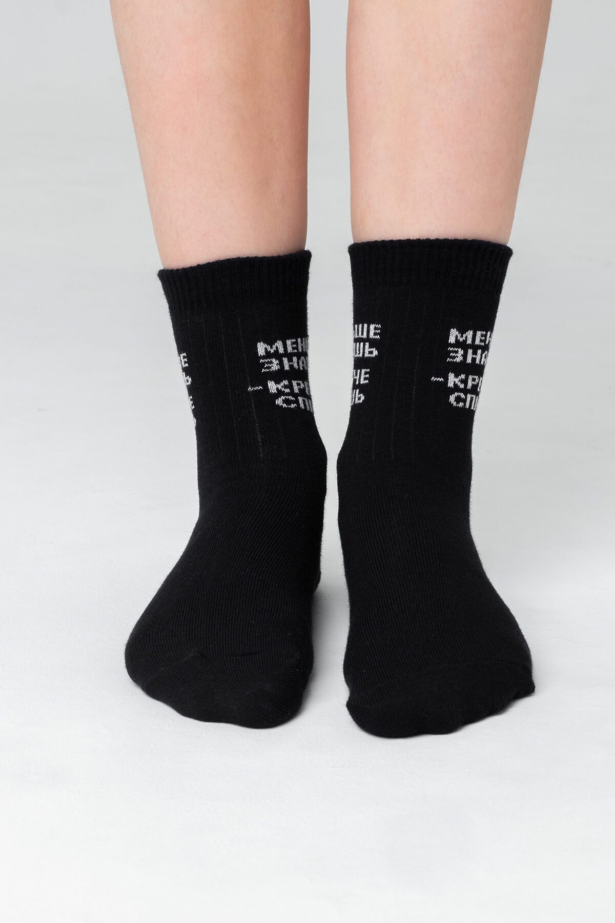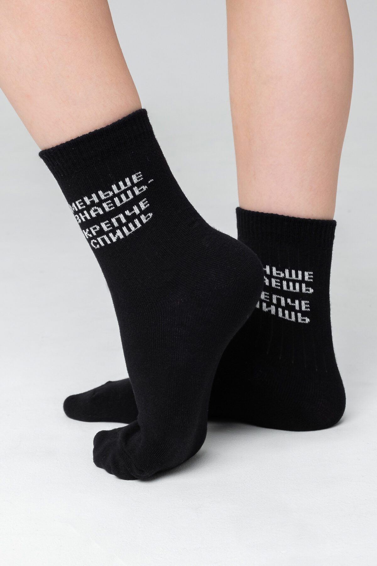 Подростковые носочки с надписью Меньше знаешь - крепче спишь, связанные из натурального хлопка. Креативная модель мягко облегает ногу, не доставляя дискомфорт в течение всего дня. Носки сочетаются с разной обувью, подходят как мальчикам, так и девочкам.