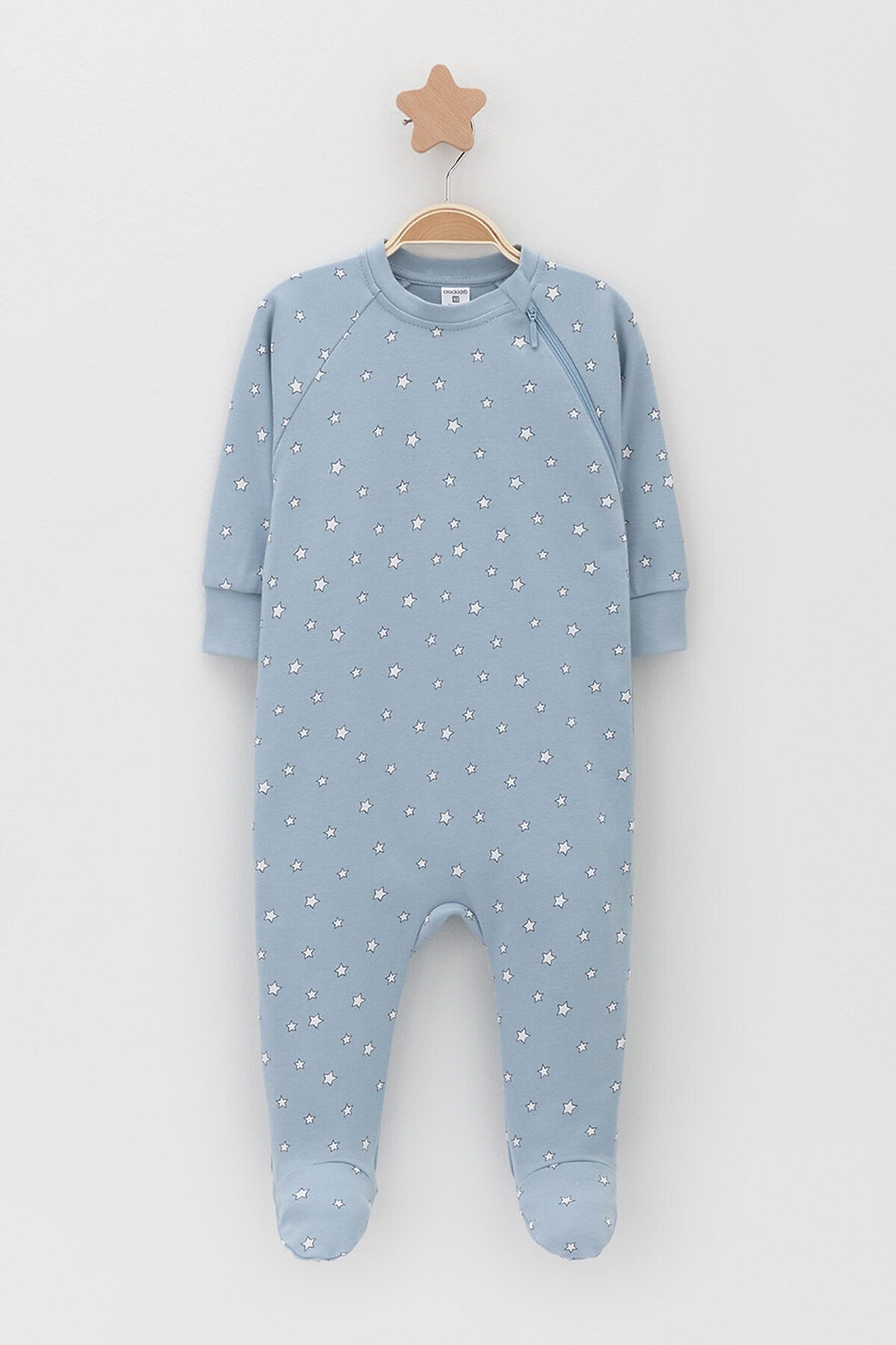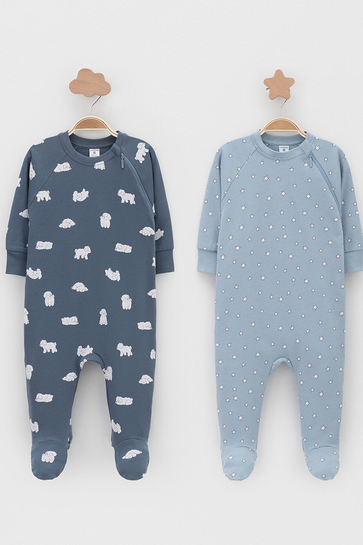 Комбинезоны для новорождённых из мягкого эластичного трикотажа интерлок, произведённого из натурального хлопка. В упаковке 2 штуки. Застёгиваются сбоку на молнию и на кнопку. Длинные рукава-реглан оканчиваются манжетами. Оригинальная набивка выполнена из стойких гипоаллергенных текстильных красителей. Все трикотажные полотна производятся в соответствии с нормами Швейцарского сертификата ЭкоТекс.