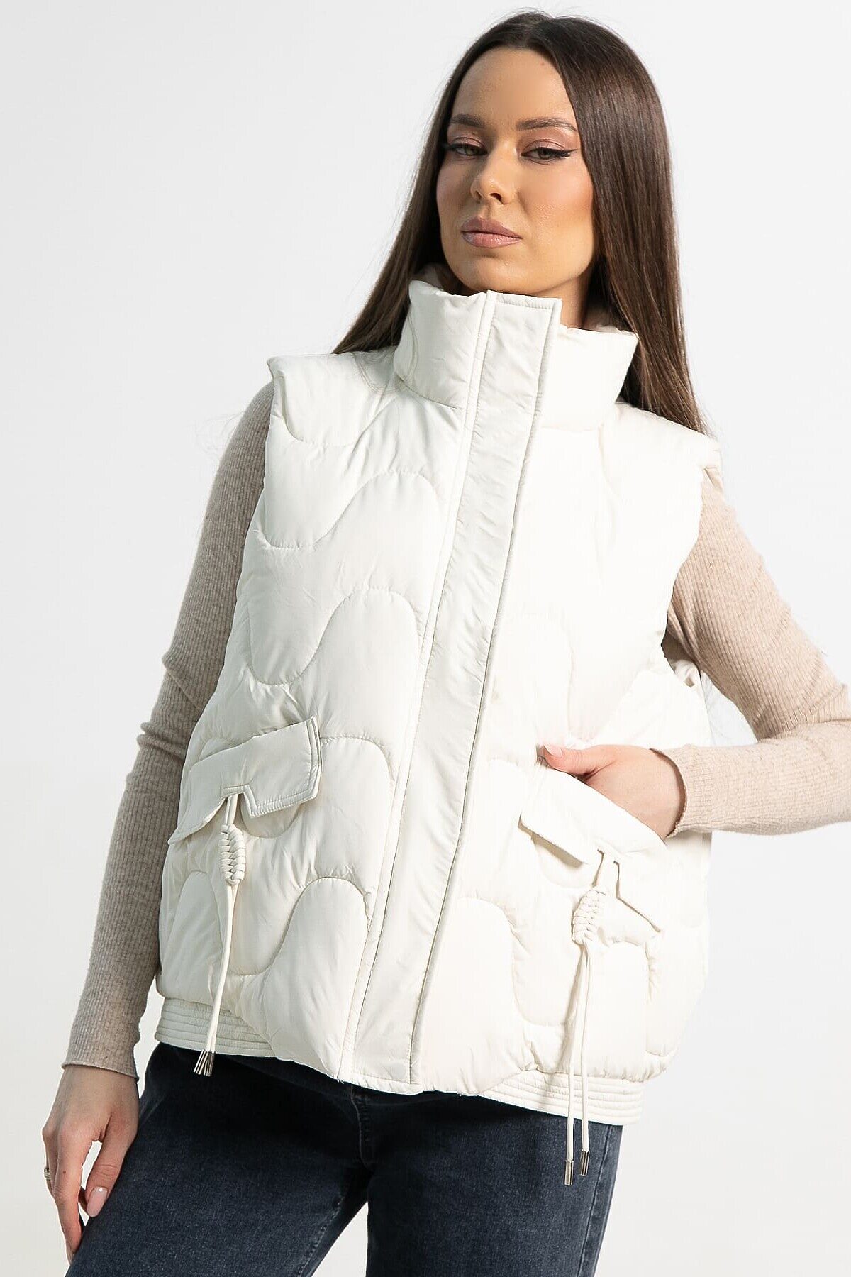 Женский стеганый жилет в оттенке крем-брюле, идеально подходящий для осени и весны, станет важной частью вашего гардероба. Он создан для максимального комфорта и теплоты, сочетая современный стиль и практичность. Воротник-стойка и вместительные передние карманы, украшенные шнуром из экокожи, добавляют жилету элегантности. Этот утепленный жилет прекрасно подходит для создания многослойных ансамблей, идеально сочетаясь с любимыми свитерами, толстовками или водолазками. Он обеспечивает тепло и свободу движений, оставаясь стильным элементом вашего образа. Благодаря продуманному дизайну и функциональным деталям, жилет подходит как для городских прогулок, так и для загородных поездок или повседневных задач. Создайте уникальный образ с этим модным и практичным жилетом!