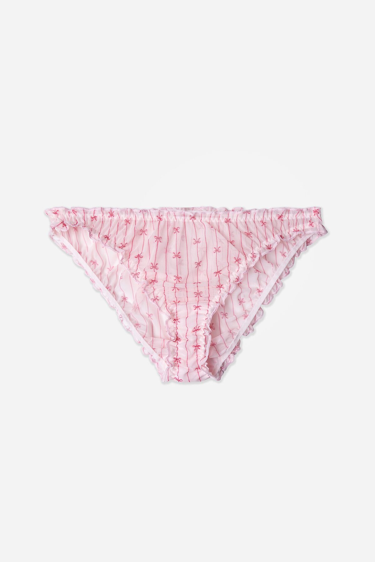 Трусы женские, силуэт - слипы, выполнены из трикотажного полотна сетки. Задняя и передняя деталь цельнокроеные. Подкладка ластовицы из кулирного полотна, отлетная по врхнему срезу. Верхние и нижние срезы обработаны закруткой, и собраны со сборкой на эл. тесьму 6мм (жилка Wt4-6, девсел 13460W) зигзагом.