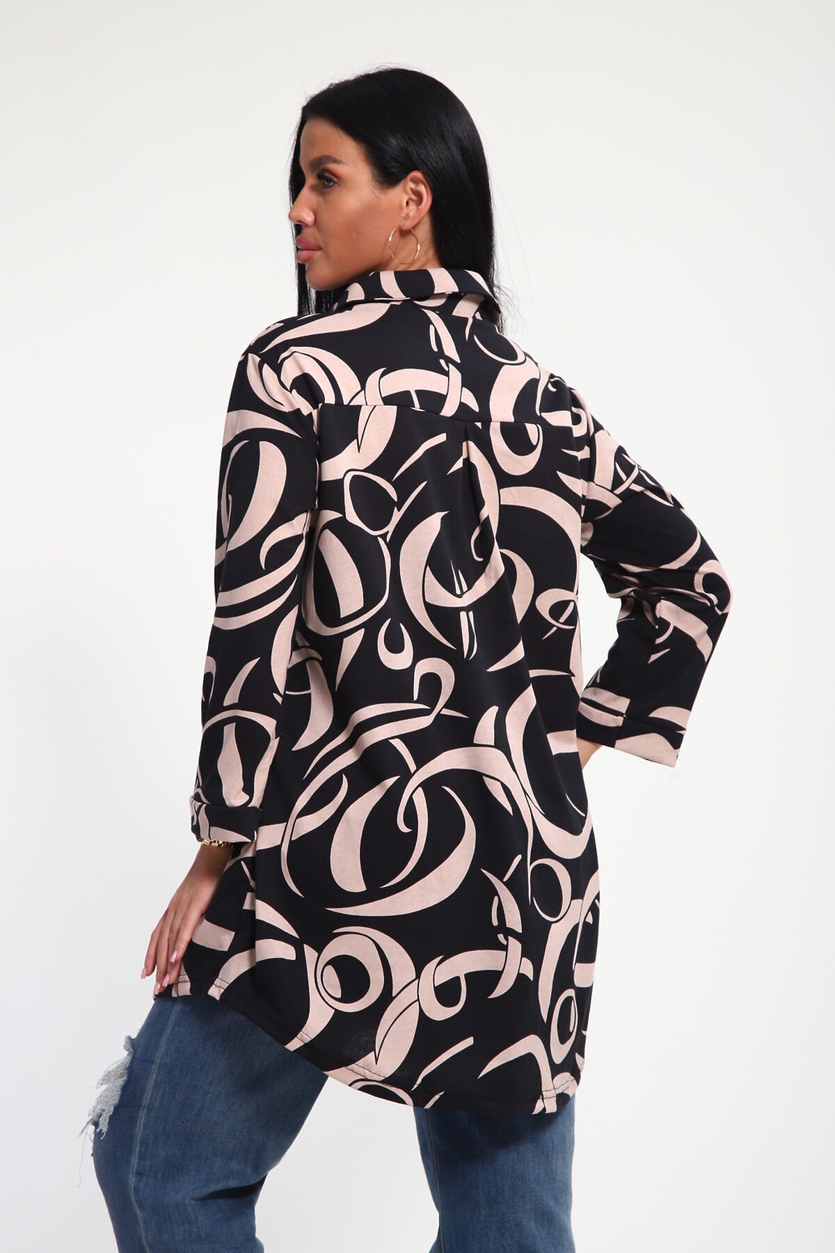 Женская туника-рубашка на пуговицах выполнена из хлопкового трикотажного полотна. Изделие свободного покроя с воротником-стойкой подойдет для любителей стильных вещей. Прекрасно подойдет под любой тип фигуры и комплекцию благодаря широкой размерной сетке.