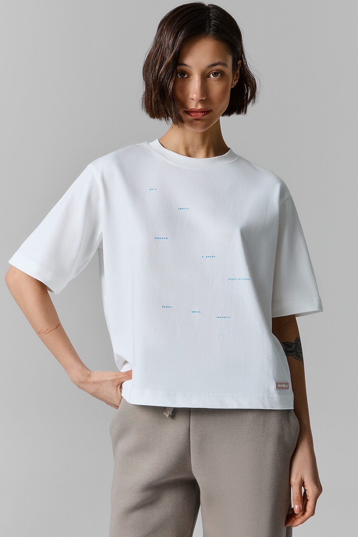 Эта женская футболка — идеальное сочетание комфорта и современного дизайна! Выполненная из мягкой и приятной на ощупь кулирки, она дарит ощущение легкости и удобства на весь день. Округлая горловина и короткие рукава подчеркивают стильный силуэт, а свободный крой обеспечивает комфортную посадку, позволяя чувствовать себя расслабленно и уверенно в любой ситуации. Футболка станет отличным выбором для повседневного гардероба, легко комбинируясь с джинсами, брюками, шортами или юбками. В линейке представлено множество вариантов дизайна, чтобы вы могли подобрать идеальный стиль для себя. Оверсайз-футболки от Mark Formelle созданы для того, чтобы дарить комфорт и уверенность каждый день! Окунитесь в мир удобства и стильных решений, выбирая актуальные и функциональные вещи для своего гардероба.