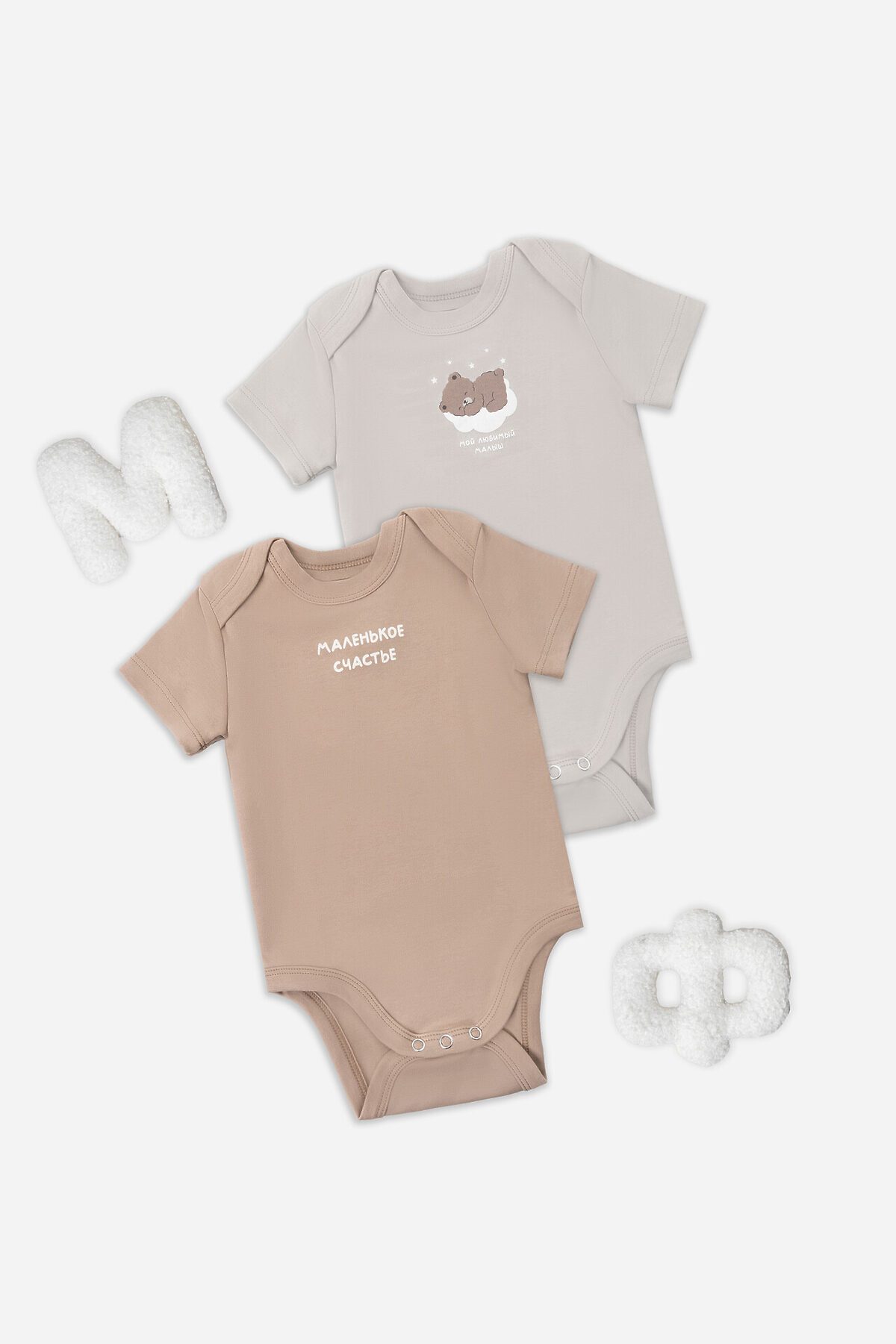 Боди детское (2шт.) MARK FORMELLE, серо-коричневый +бежевый +печать