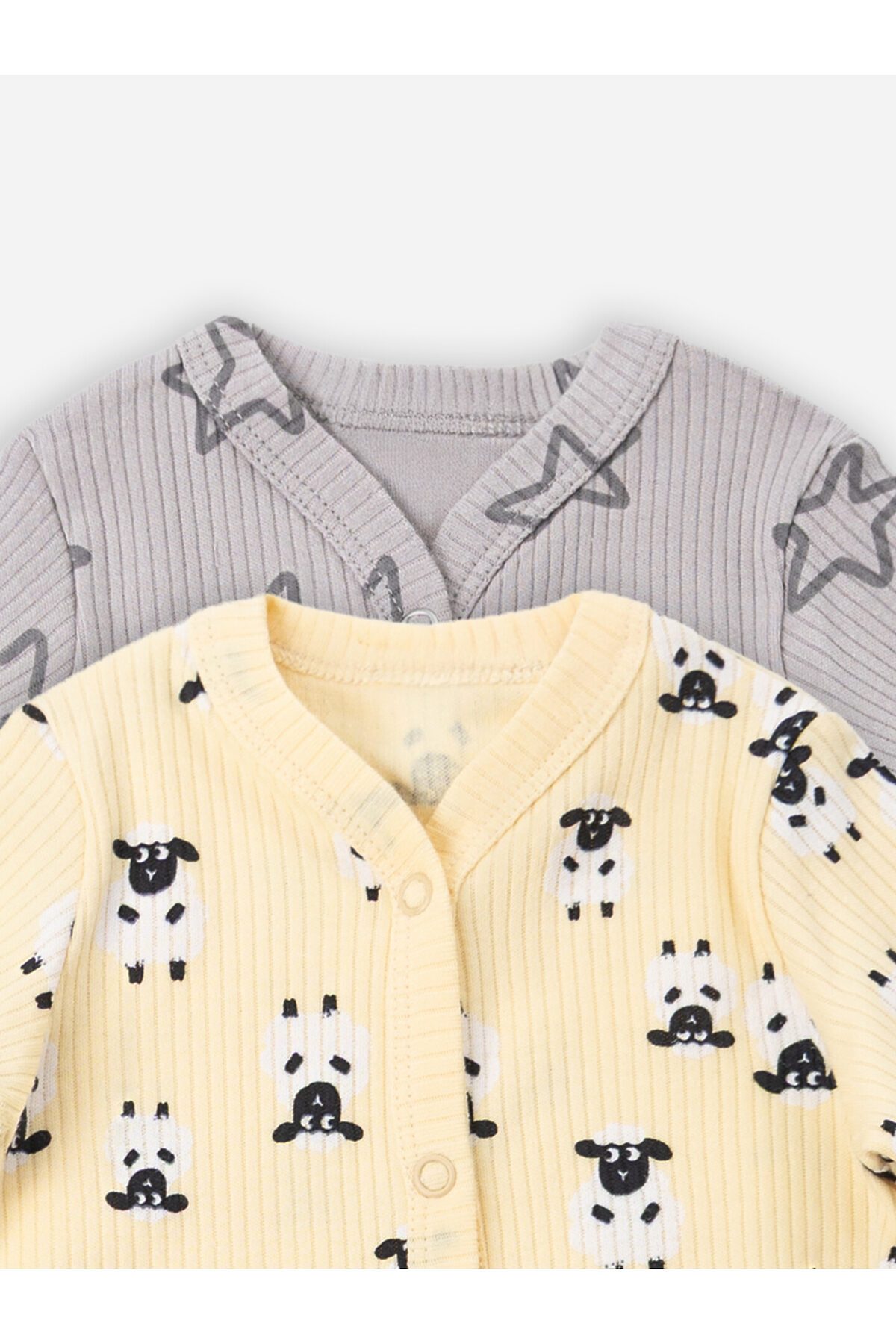 Комбинезон нательный детский (2шт.) MARK FORMELLE, барашки на абрикосовом +звездочки на сером
