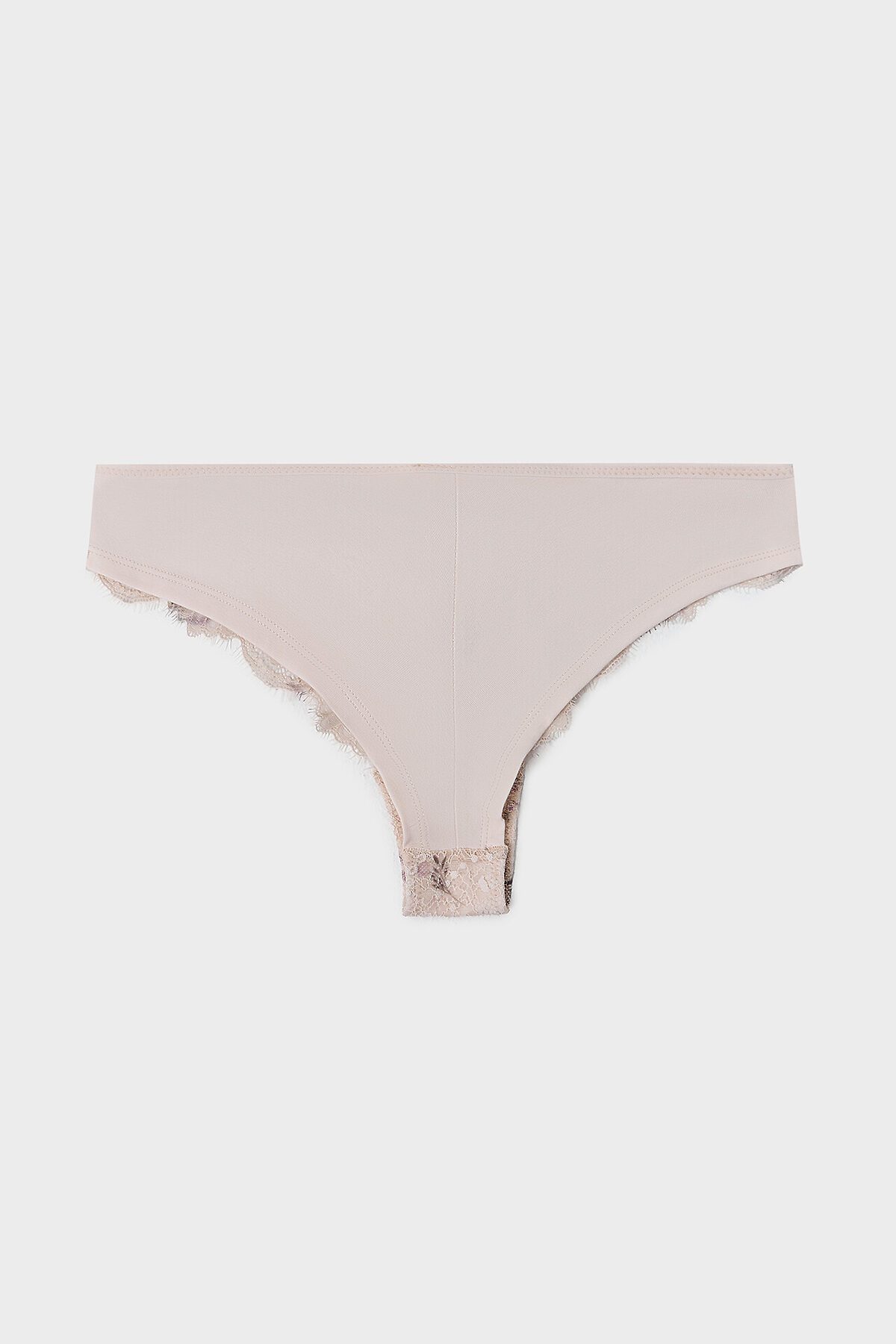 Изящные трусики-бразилиана — воплощение комфорта и утончённого стиля. Выполненные из эластичного кружева и мягкого кулирного полотна, они обеспечивают идеальную посадку благодаря средней высоте талии и V-образному силуэту. Передняя часть выполнена из кружева, добавляющего женственность, а задняя деталь из гладкого кулирного полотна со средним швом для дополнительного комфорта. Ластовица из натурального материала и аккуратная обработка нижних срезов швом вподгибку завершают этот элегантный образ.