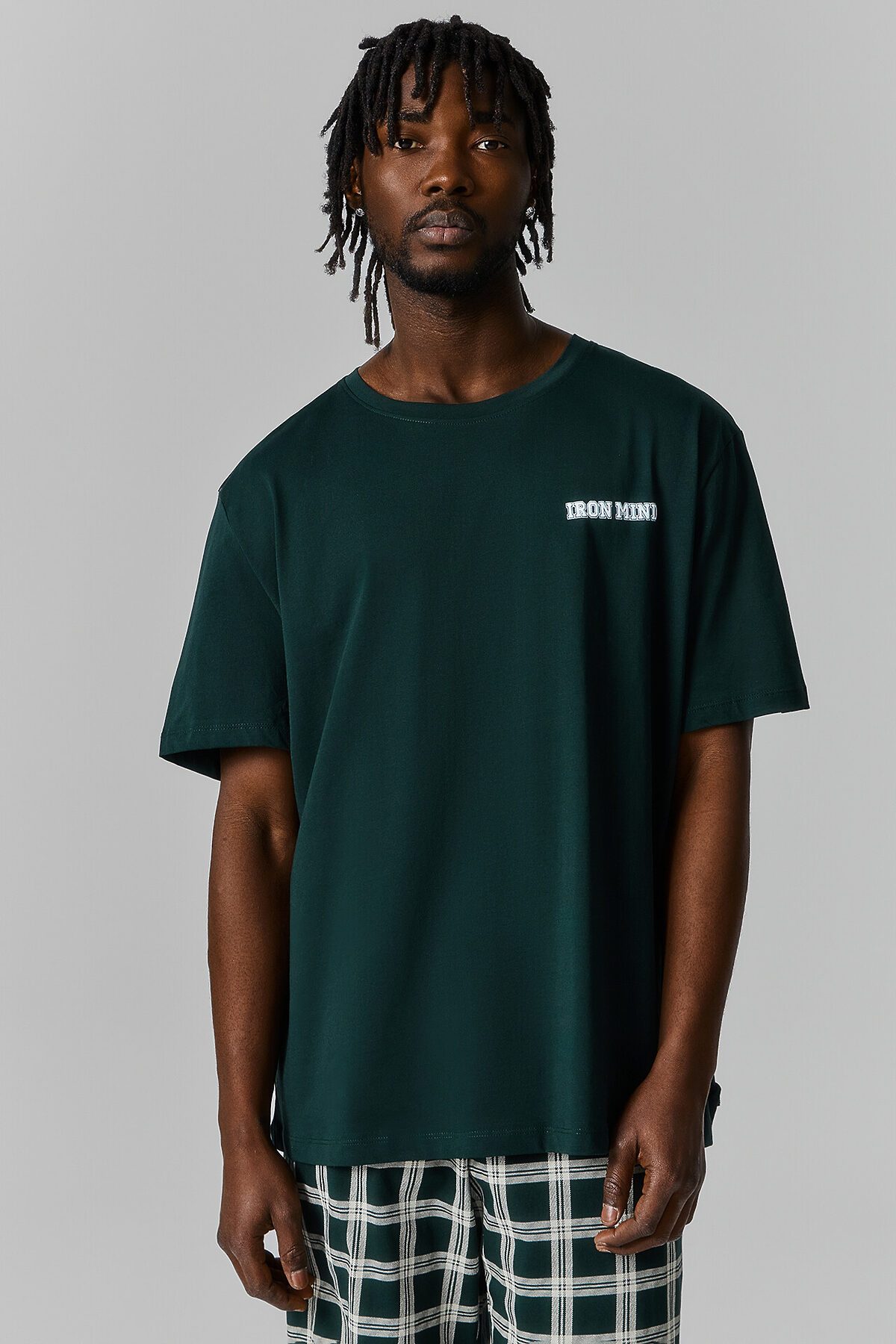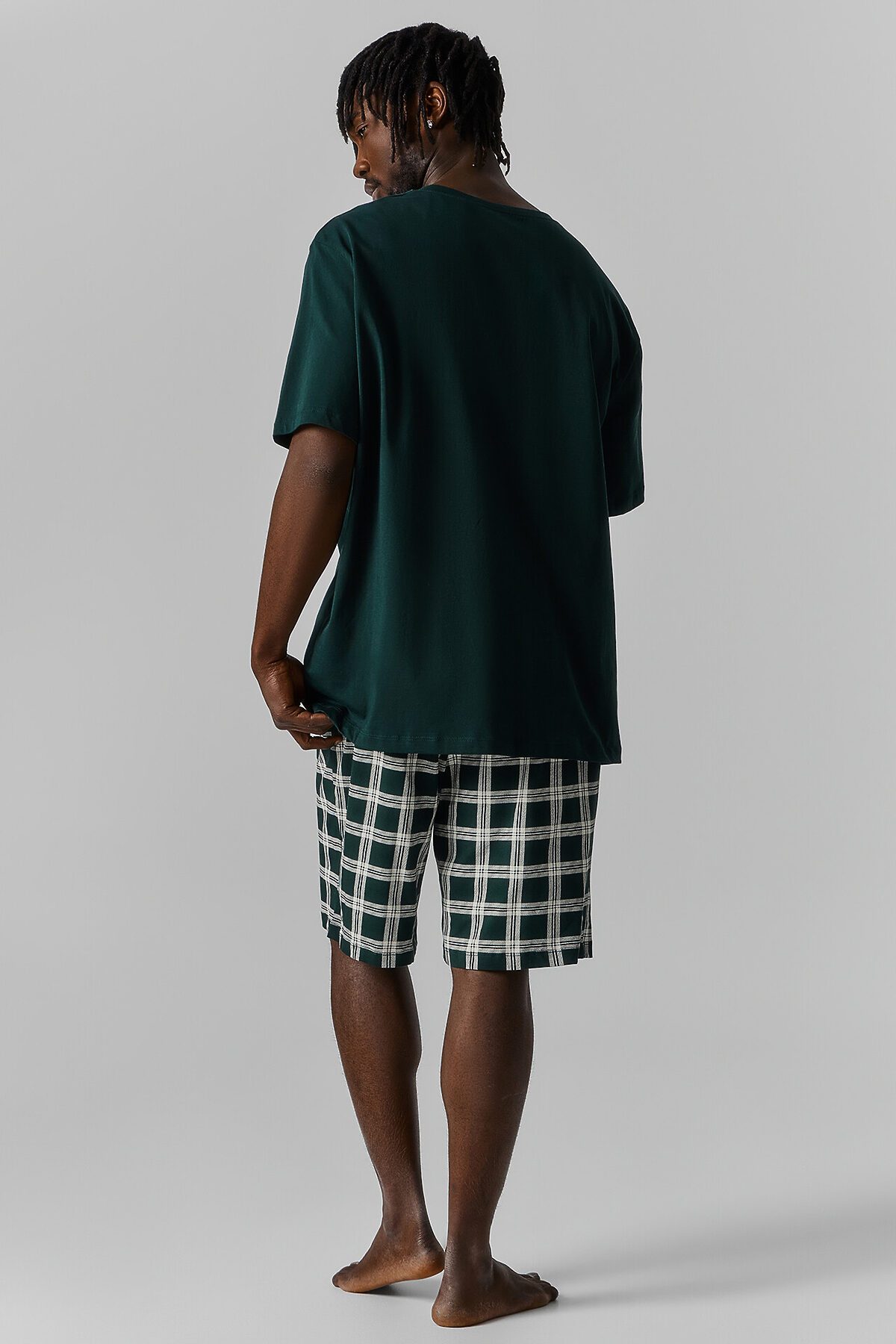Комплект мужской (футболка, шорты) MARK FORMELLE, зеленый бархат +зеленая клетка