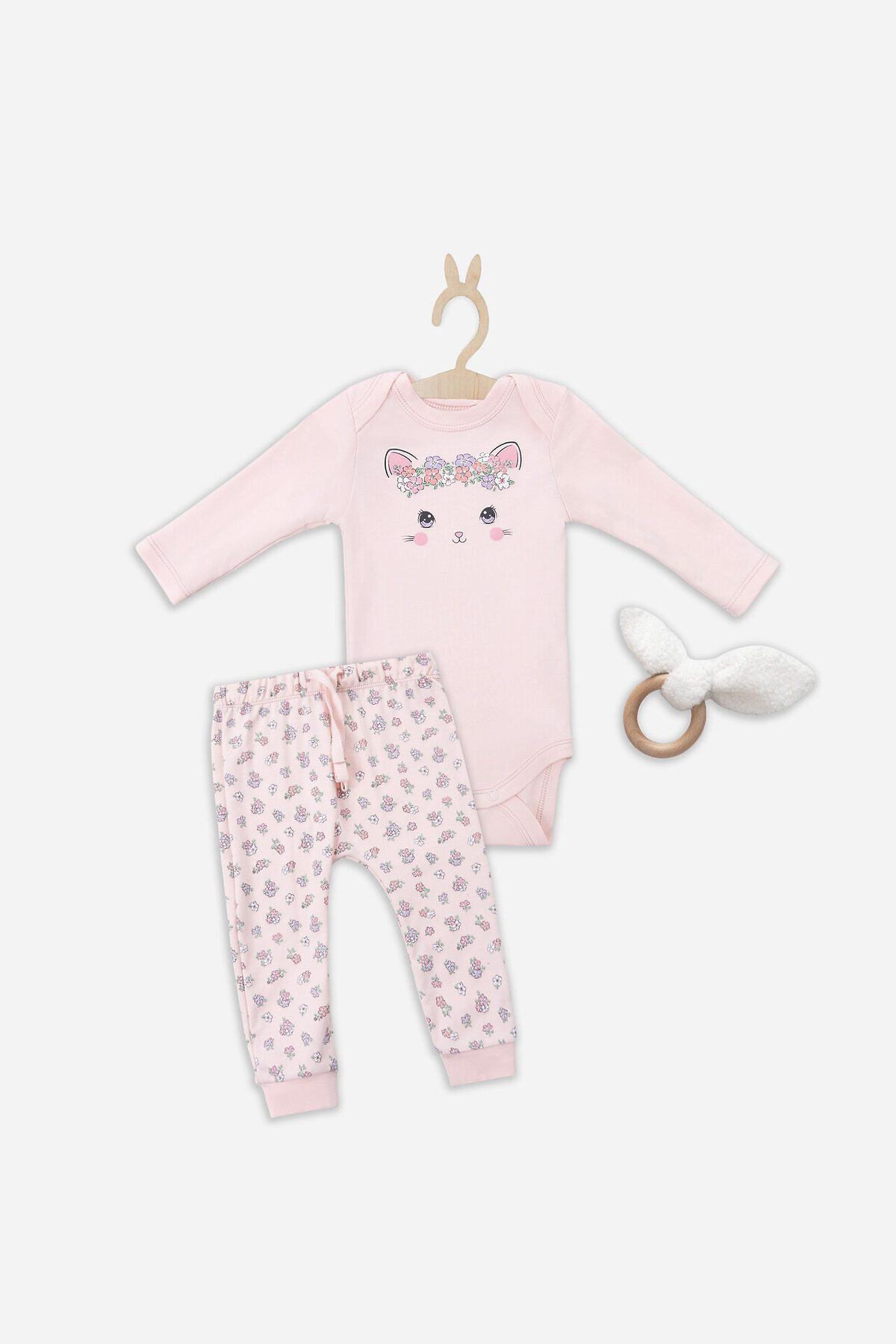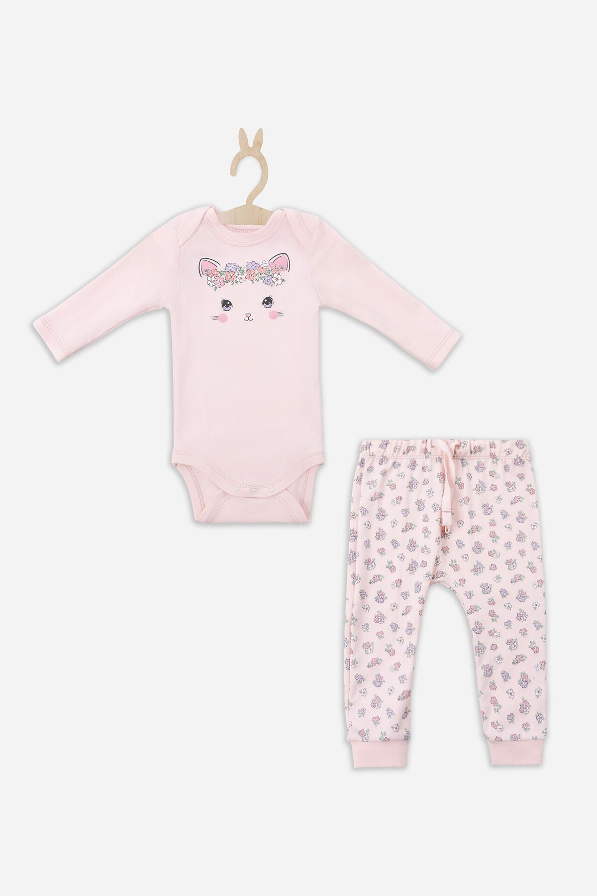 Комплект детский (боди, ползунки) MARK FORMELLE, розовый +цветочки на розовом