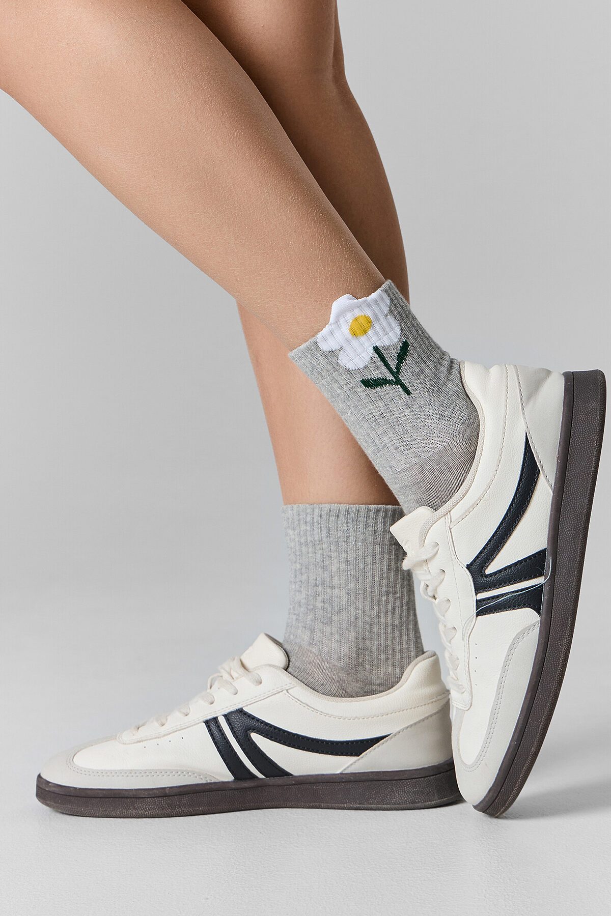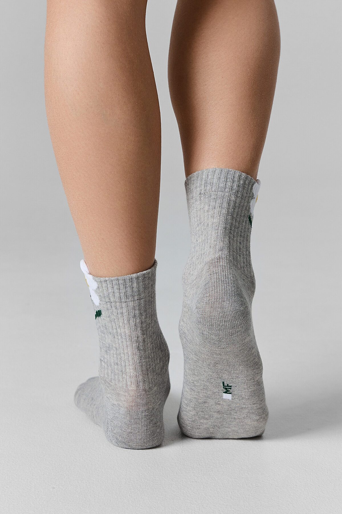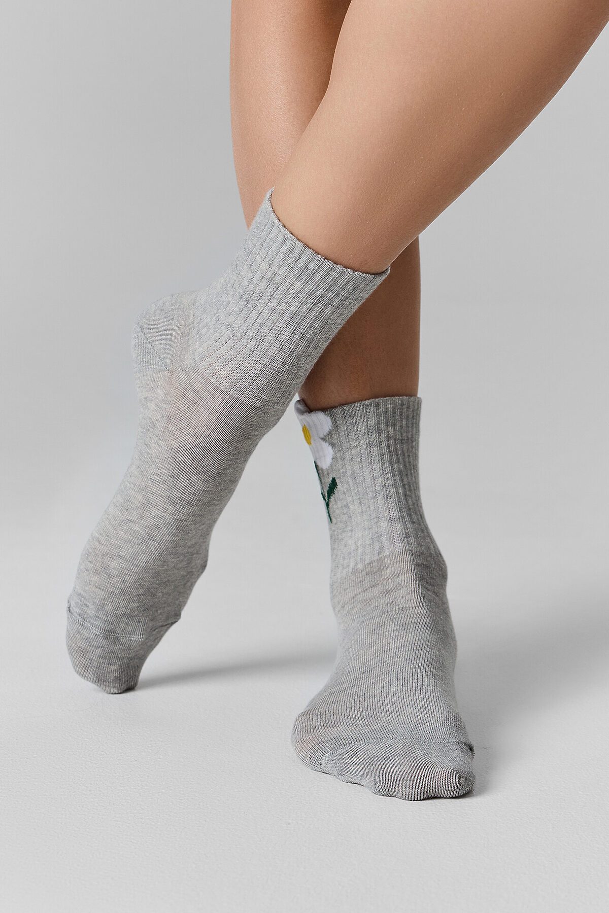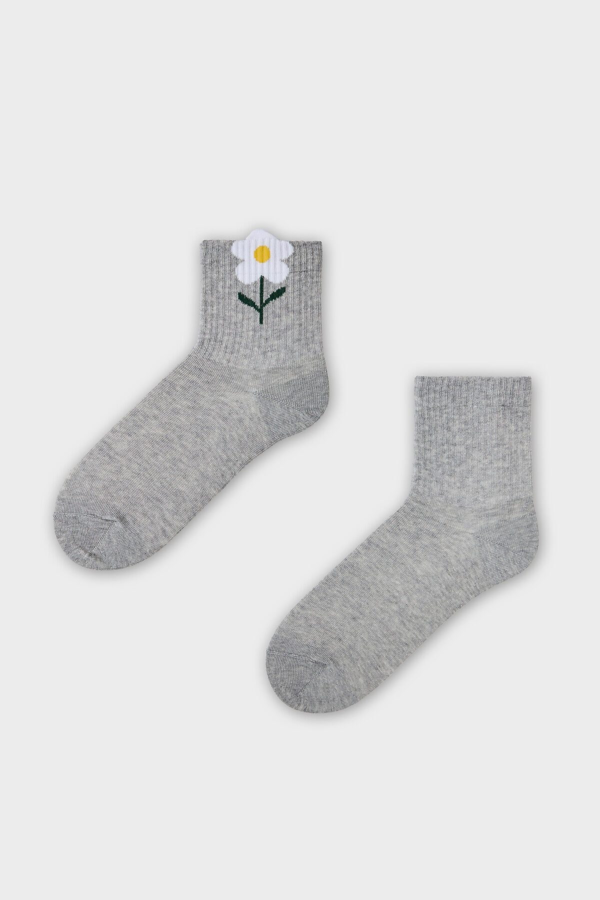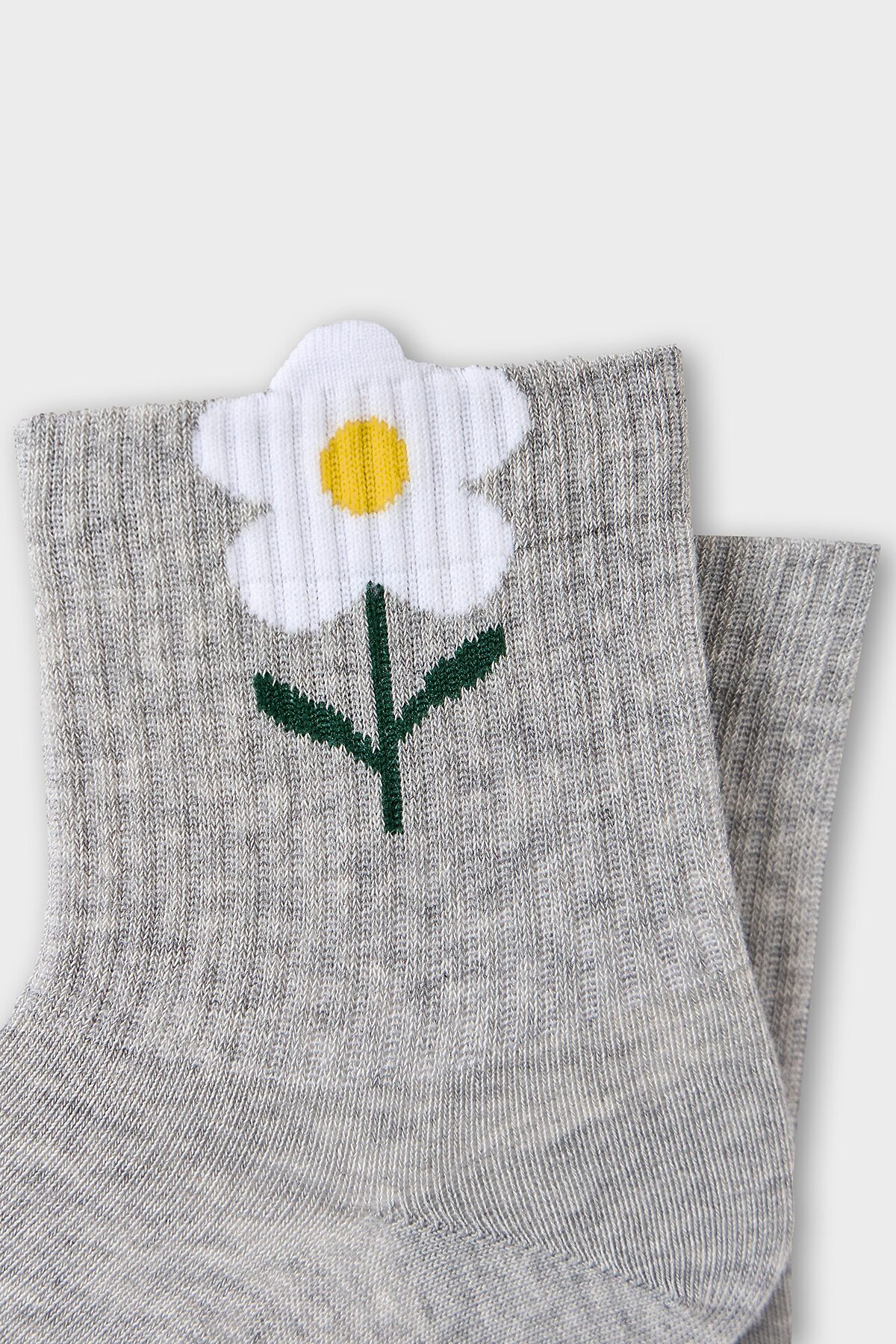 рис.2758 Женские носки средней высоты, с плотным бортом с рисунком в виде цветочка с 3D элементом на бортике.