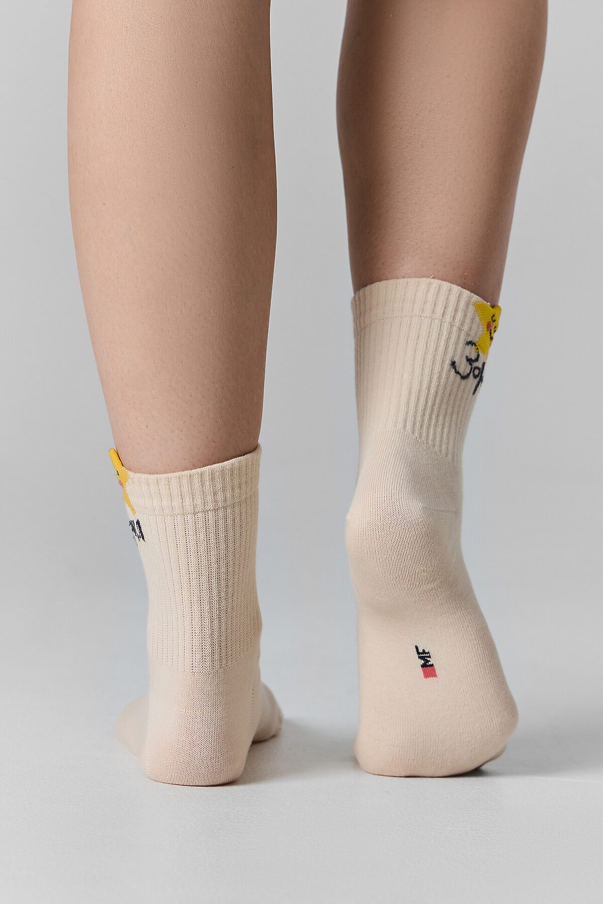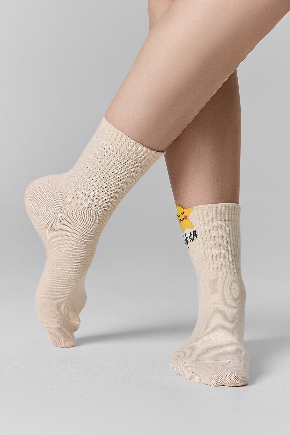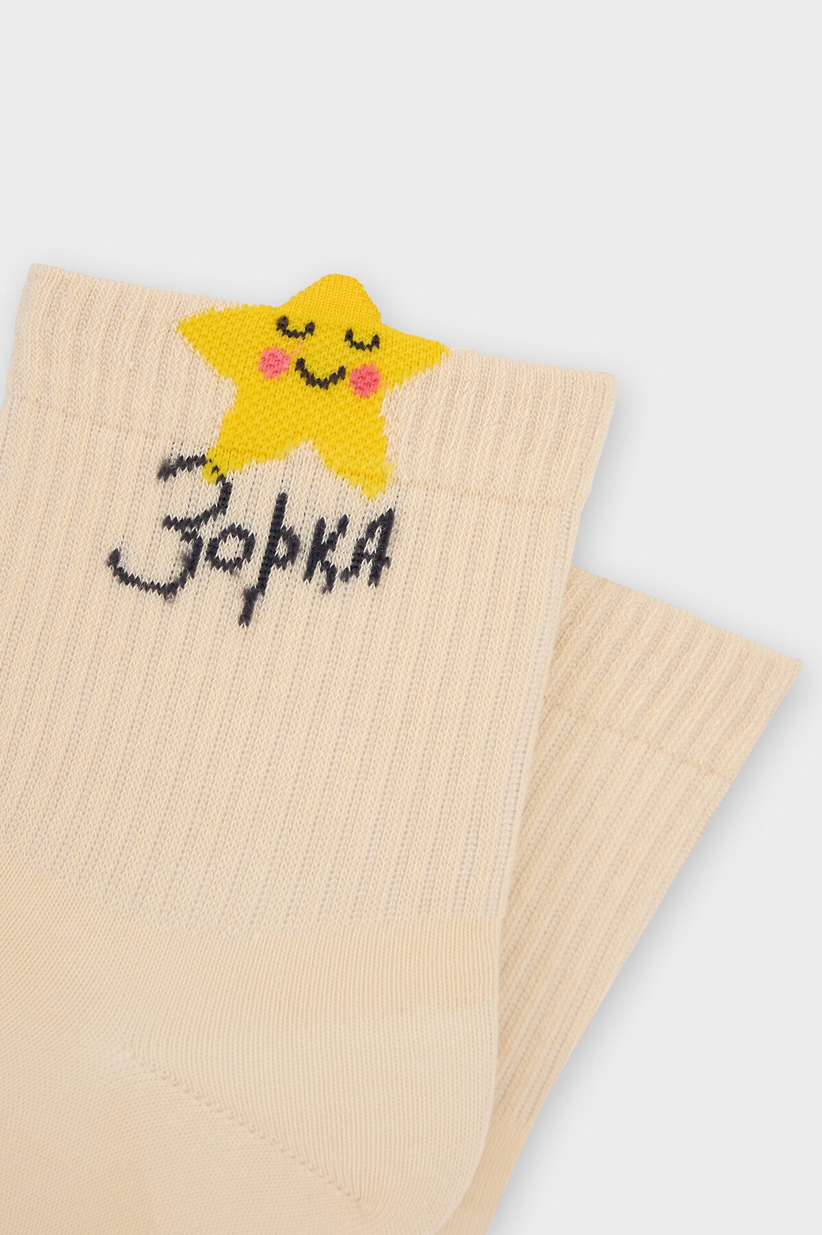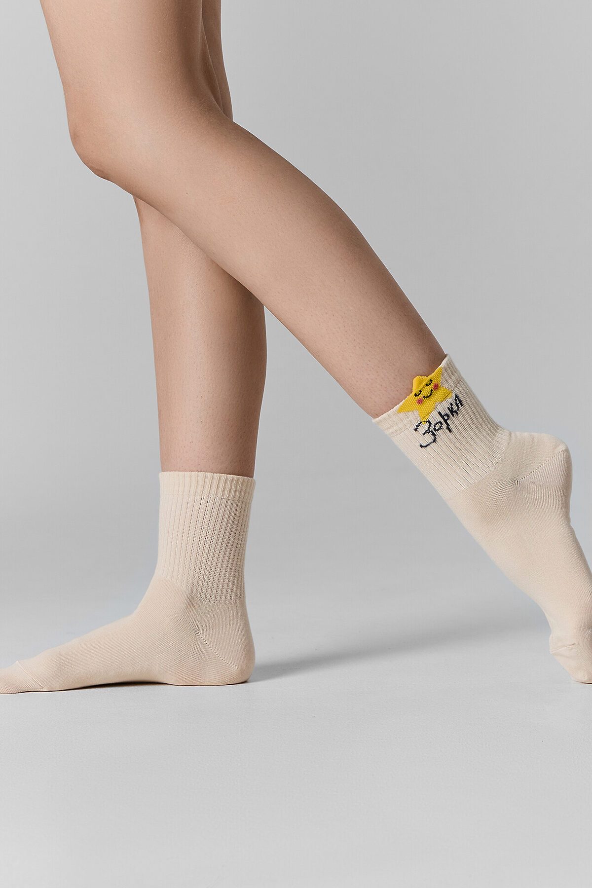 рис.3163 Женские носки средней высоты, с плотным бортом и рисунком в виде звездочки с 3D элементом на бортике и надписью "Зорка".