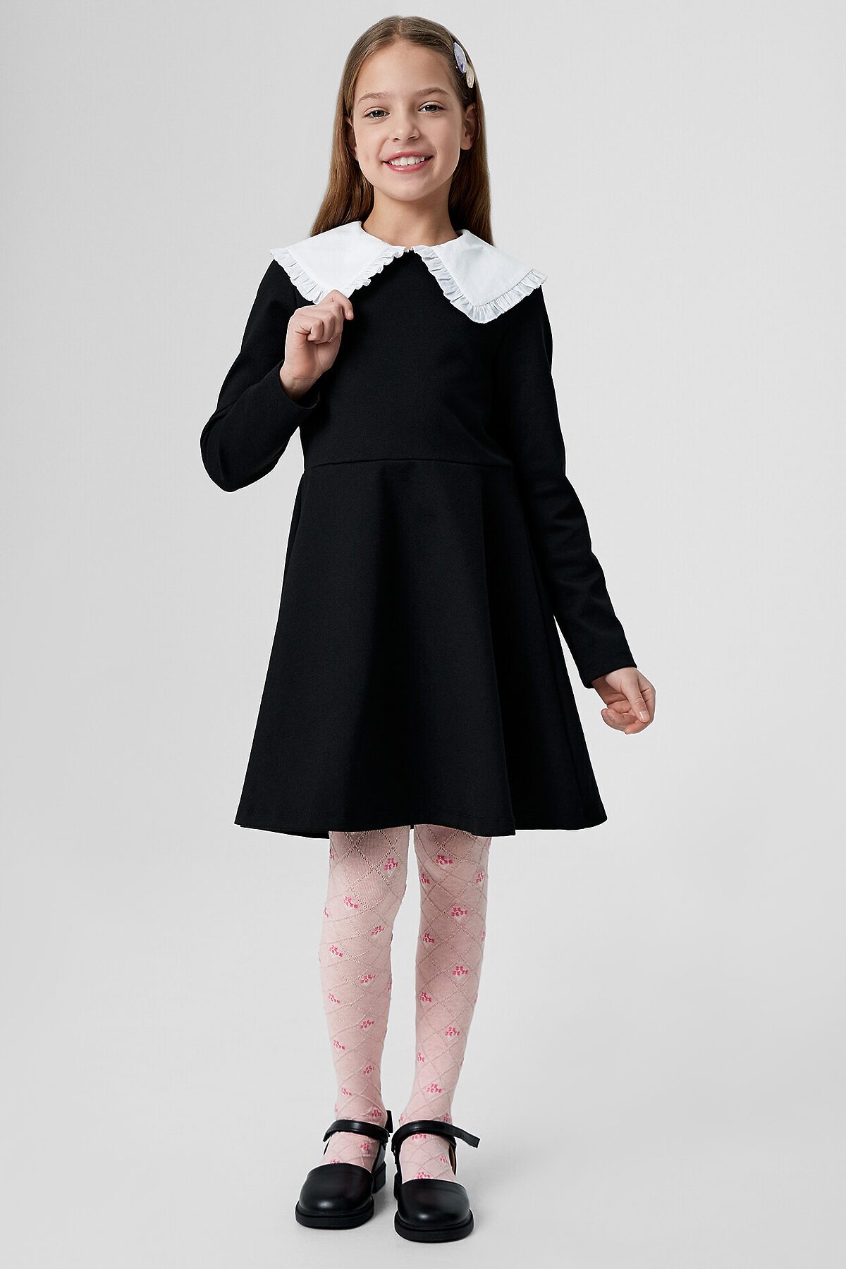 Модель с объемным рисунком выглядит изысканно и аккуратно, легко сочетаясь с школьными платьями, юбками или сарафанами.
