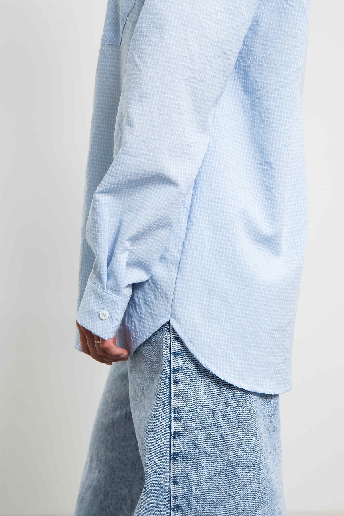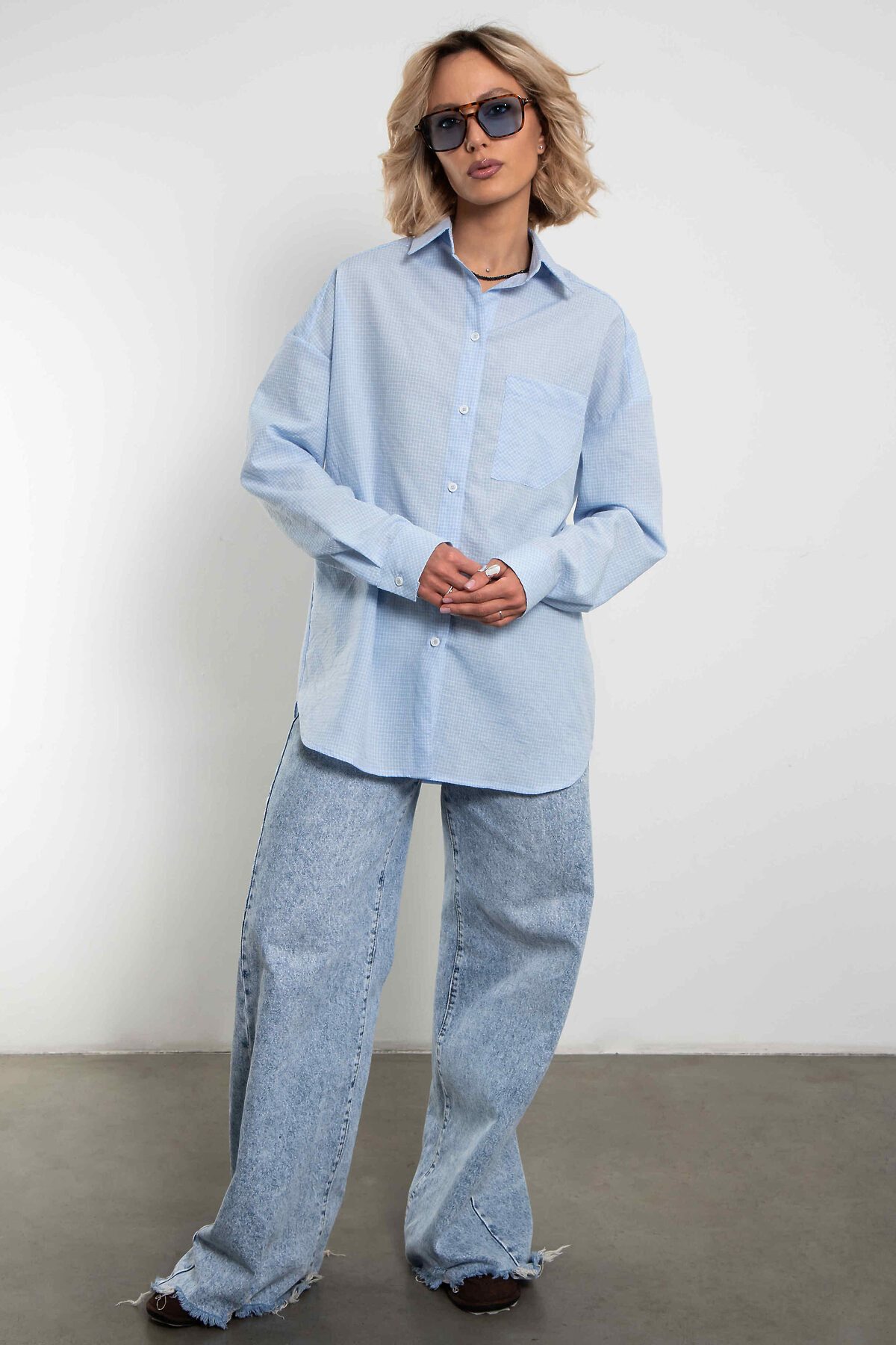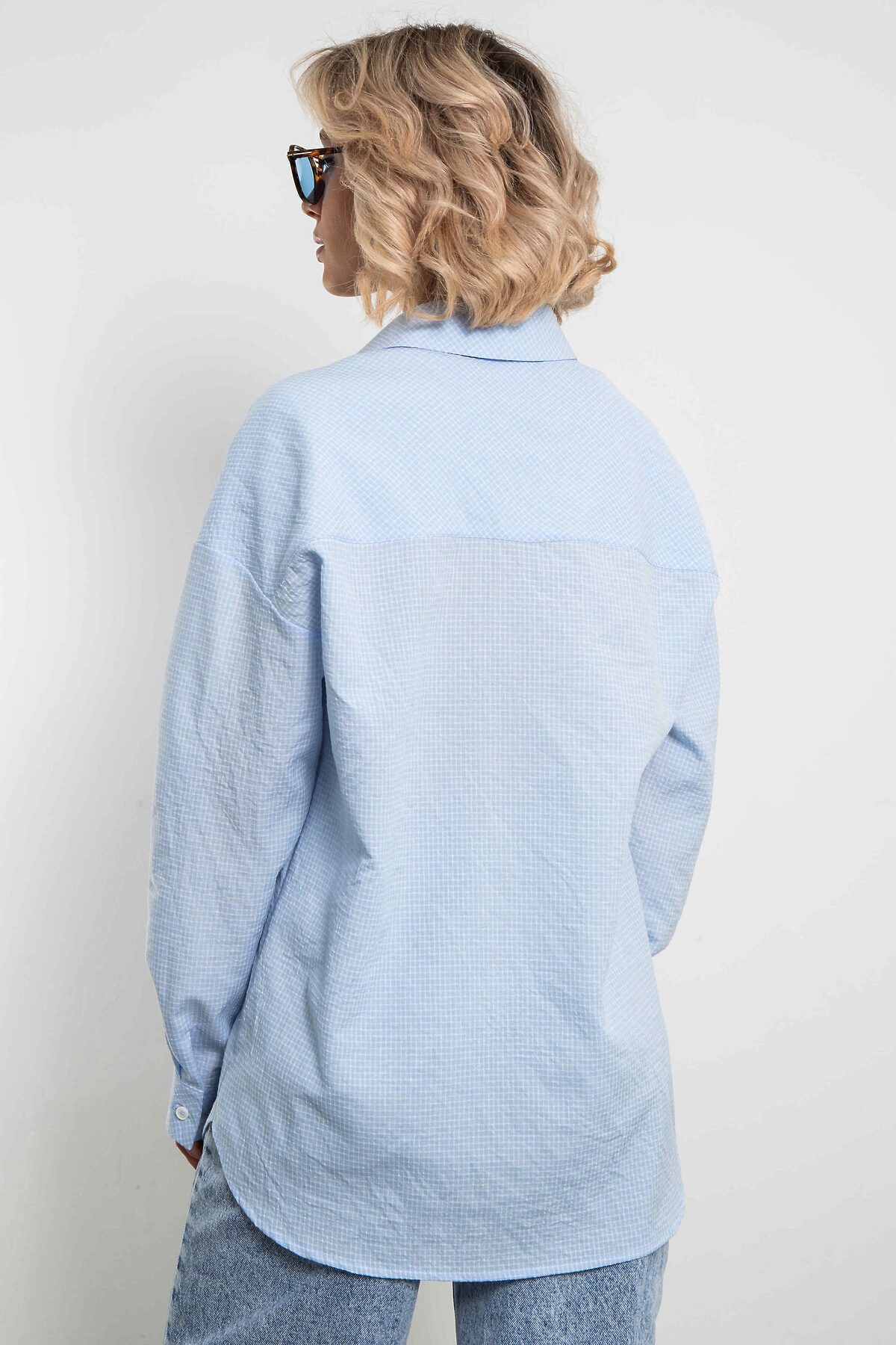 Женская стильная рубашка в голубую клетку — это сочетание элегантности и комфорта. Универсальная клетчатая рубашка oversize с нагрудным карманом. Застегивается на пуговицы.Модель отличается свободным кроем, мягкой тканью и утонченными деталями. Рубашку можно носить, как с джинсами и юбками, так и с брюками, создавая разнообразные образы от casual до полуформального стиля. Голубая клетка остается актуальной тенденцией, подчеркивая женственность и индивидуальность обладательницы.