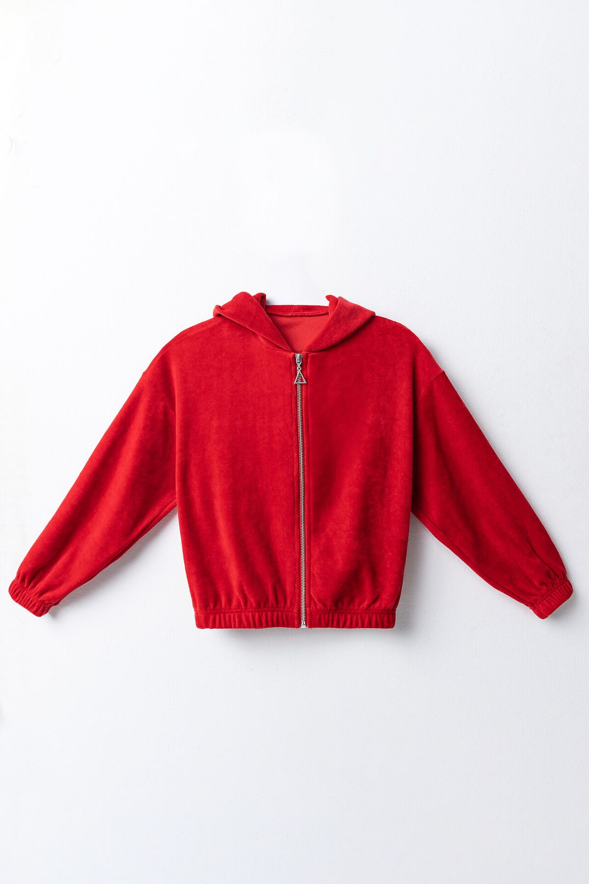 Толстовка детская свободного силуэта с капюшоном, спинка цельнокроеная. Горловина круглой формы. Капюшон двойной . Плечо слегка спущено, пройма углублена. Низ рукава и изделия обработан в подгибку с резиной внутри 30RV. Перед с центральной застежкой на молнию. Брюки свободного силуэта с высокой посадкой. Пояс цельнокроеный с эластичной тесьмой внутри 30RV. Карманы в боковых швах. Низ брюк обработан швом вподгибку.