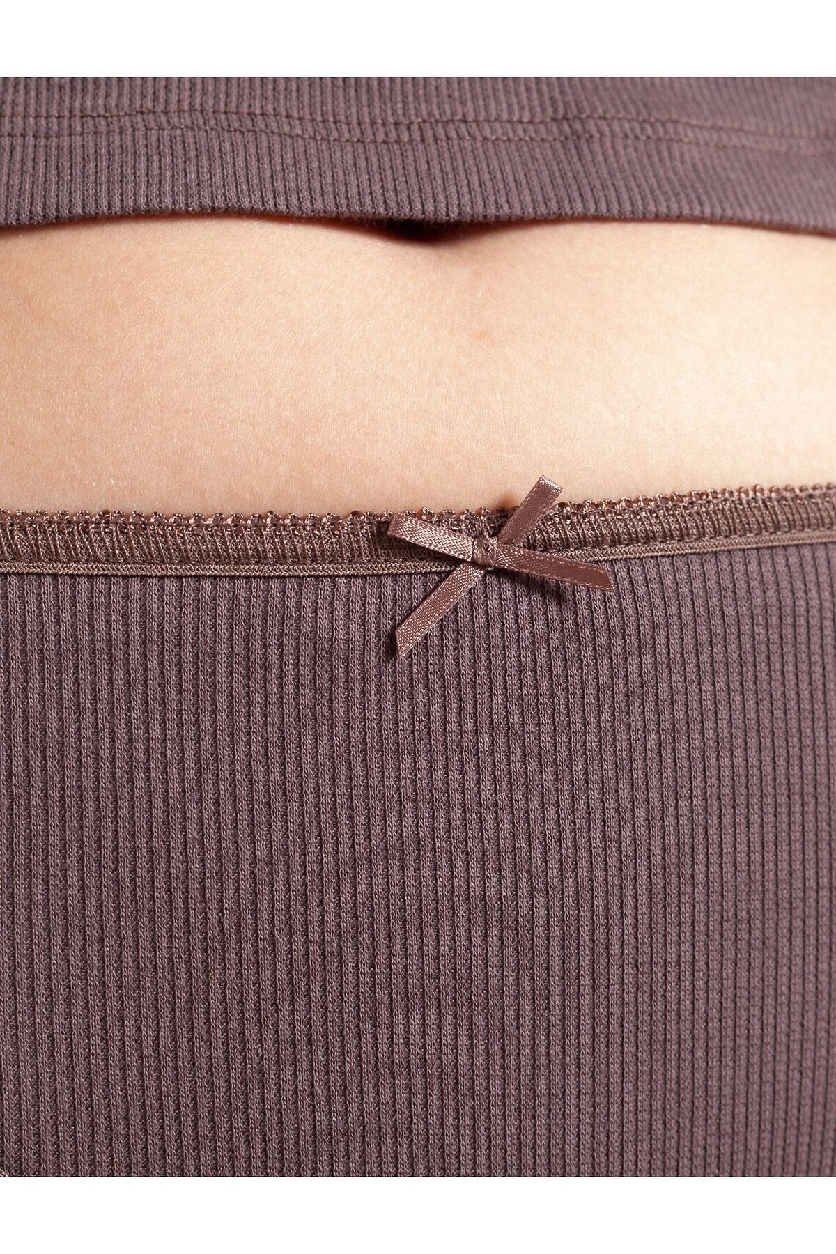 Трусы слипы со средней посадкой из фактурного трикотажа в рубчик VILATTE, кофе