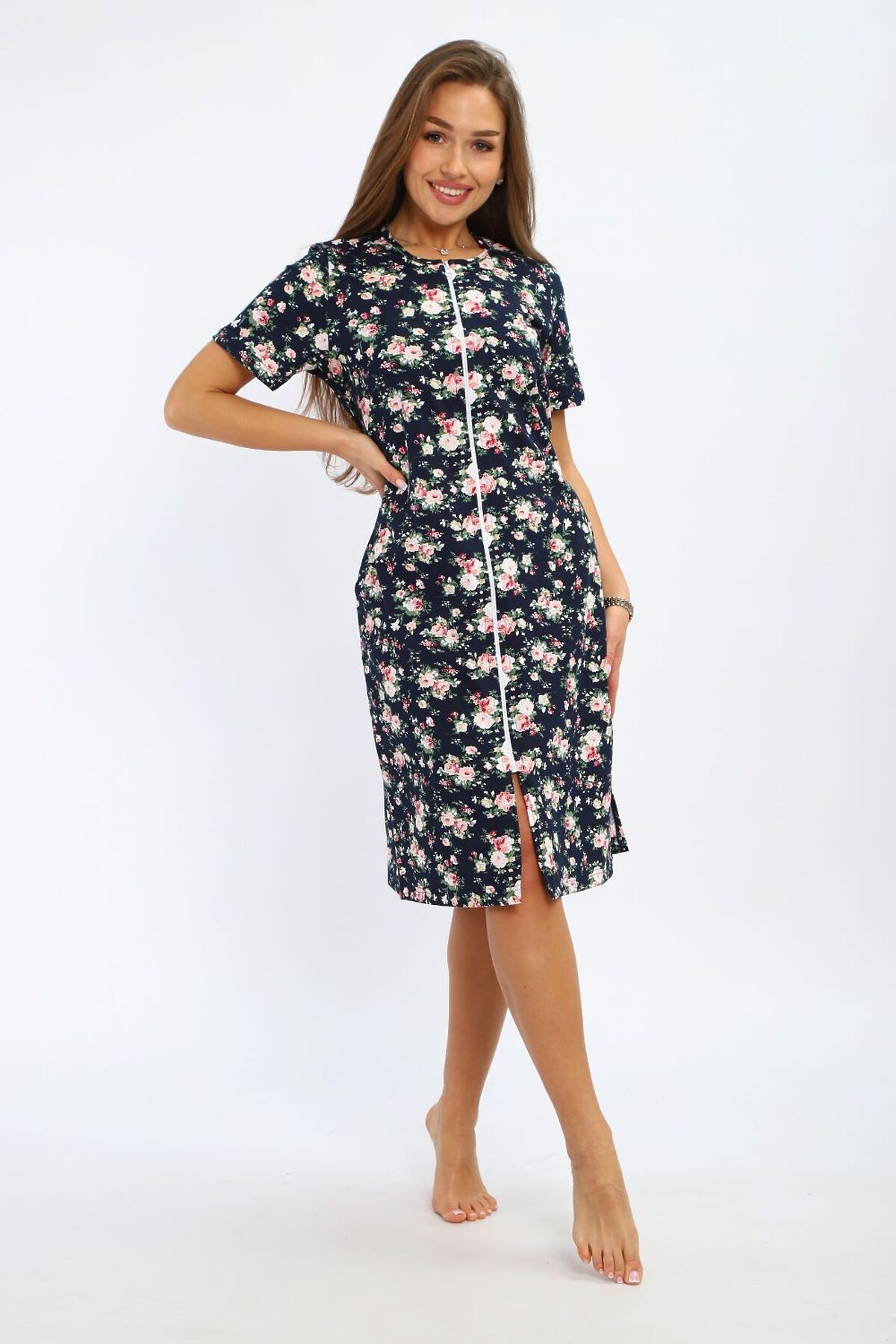 ХАЛАТ домашний - безупречное изделие, которое сочетает в себе комфорт, аккуратный внешний вид и простоту в уходе. Модель разработана с учётом повседневных потребностей современных женщин: удобно носить дома, на даче, в поездках или во время отдыха. Свободный крой и мягкий материал позволяют чувствовать себя комфортно в течение всего дня, не стесняя движений и не перегружая образ. Халат на молнии, 2 боковых кармана, круглый воротник, завязки на спине. Изделие выполнено из трикотажного полотна с натуральным составом такой материал приятен к телу, дышит и поддерживает оптимальный микроклимат. Фасон изделия универсален и уместен в любой обстановке: его можно надеть после душа, использовать как лёгкую одежду для дома или взять с собой в поездку. За счёт продуманного силуэта изделие хорошо садится на разные типы фигуры и подчёркивает естественную линию тела, при этом оставаясь удобным и свободным. ХАЛАТ домашний подойдёт как для личного использования, так и в качестве подарка на такие замечательные праздники, как 8 марта, Новый год или День рождения. Наша продукция станет символом заботы и внимания к вашим близким.