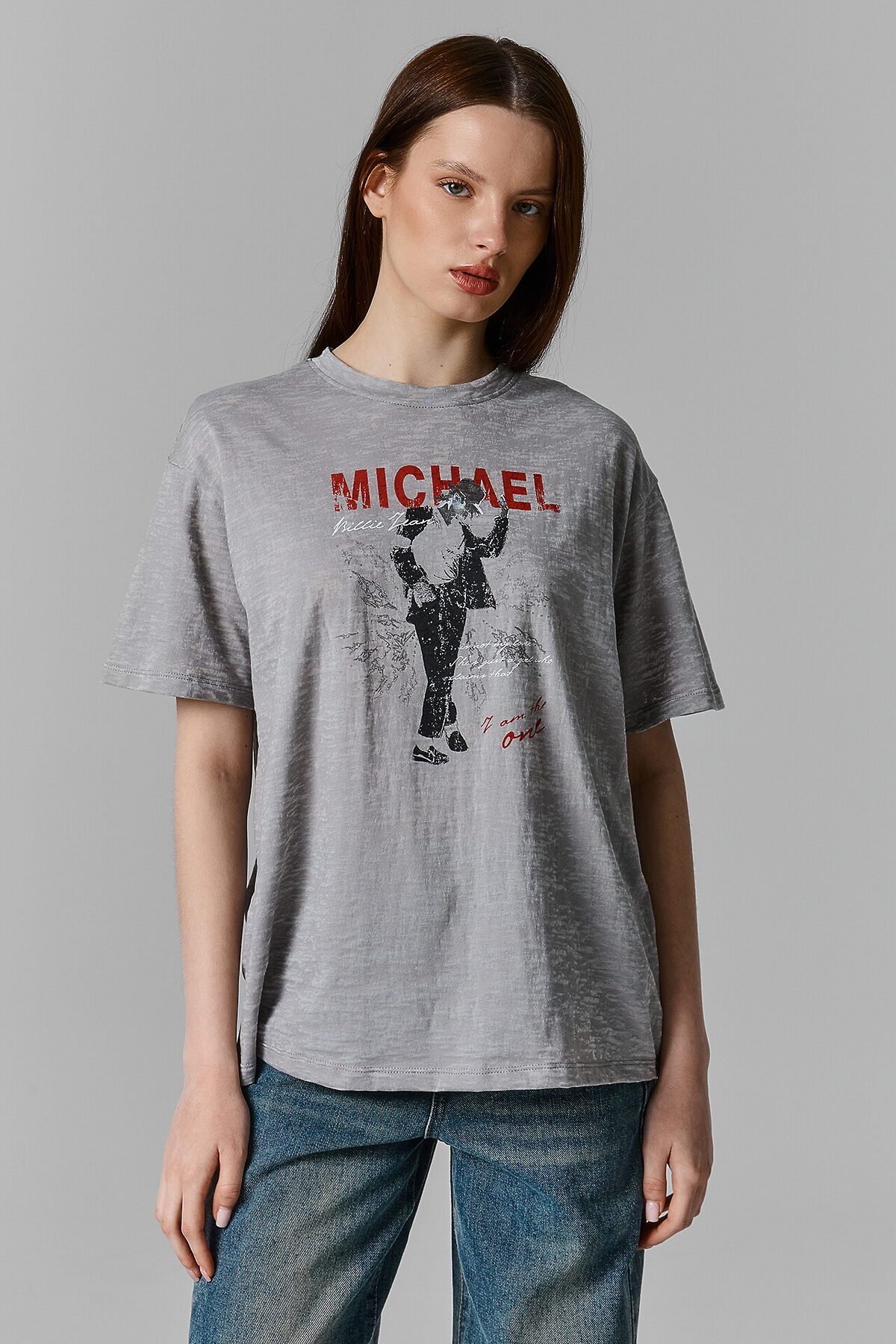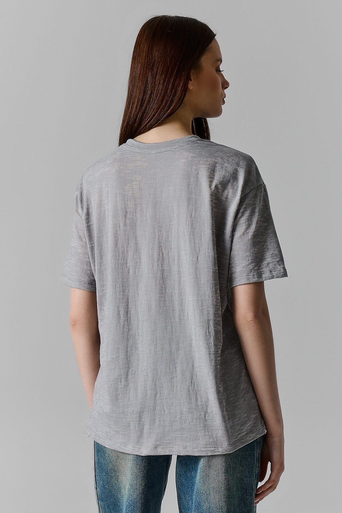 Хлопковая футболка свободного силуэта из трикотажного полотна кулирка. Горловина круглой формы. Свободу движений гарантируют спущенная линия плеча и углубленная пройма. Рукава широкие, чуть выше локтя. Стильная модель!