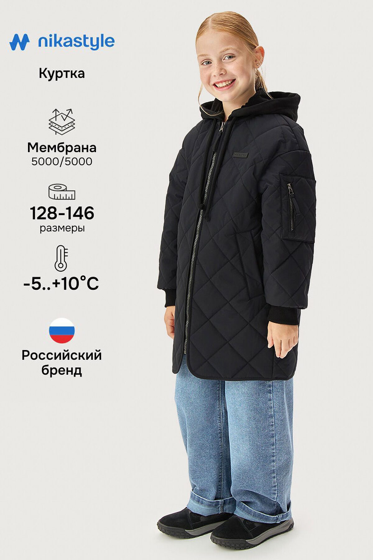 Удлиненная куртка ЛАЙК из стеганной мембранной ткани 5000/5000. Мембранная ткань - это непродуваемый и водонепроницаемый материал, который надежно защищает от ветра и влаги. Благодаря дышащим свойствам мембраны ребенку будет комфортно в любую погоду, и он не вспотеет. Мембрана в сочетании с утеплителем сохраняет тепло во время прогулок, позволяя телу дышать.