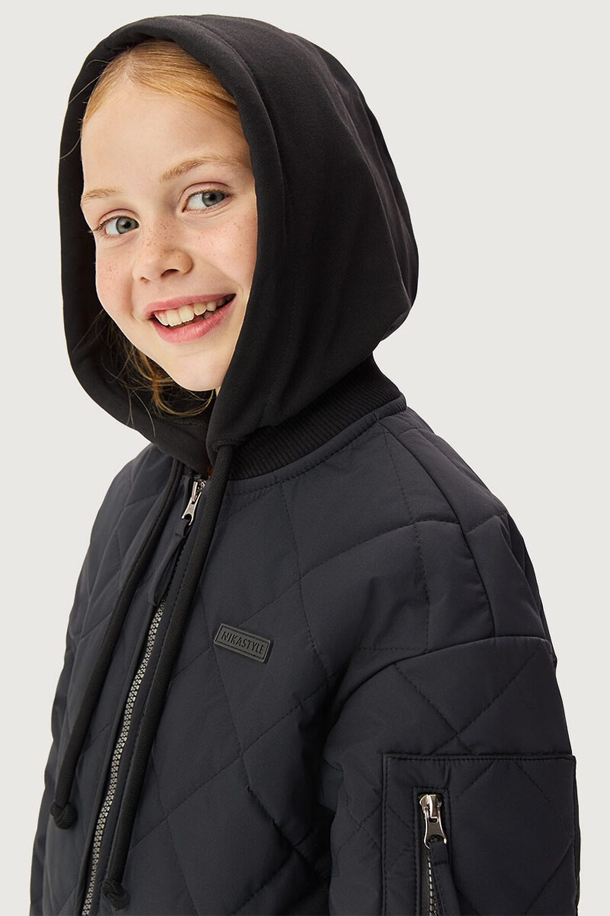 Мы все продумали до мелочей, поэтому у модели манжет и горловина оформлены трикотажным подвязом, съемный капюшон из футера.