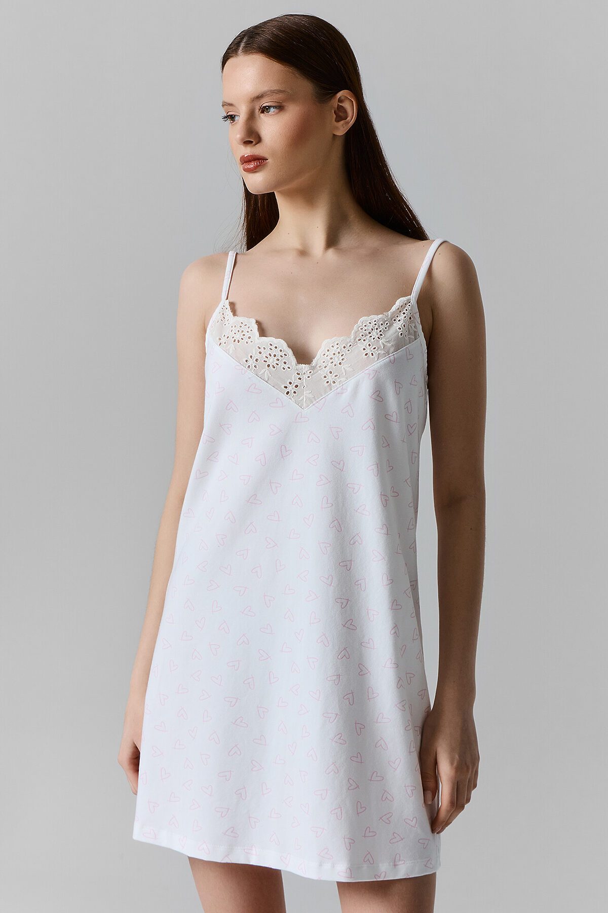 Сорочка ночная женская MARK FORMELLE, сердечки на белом