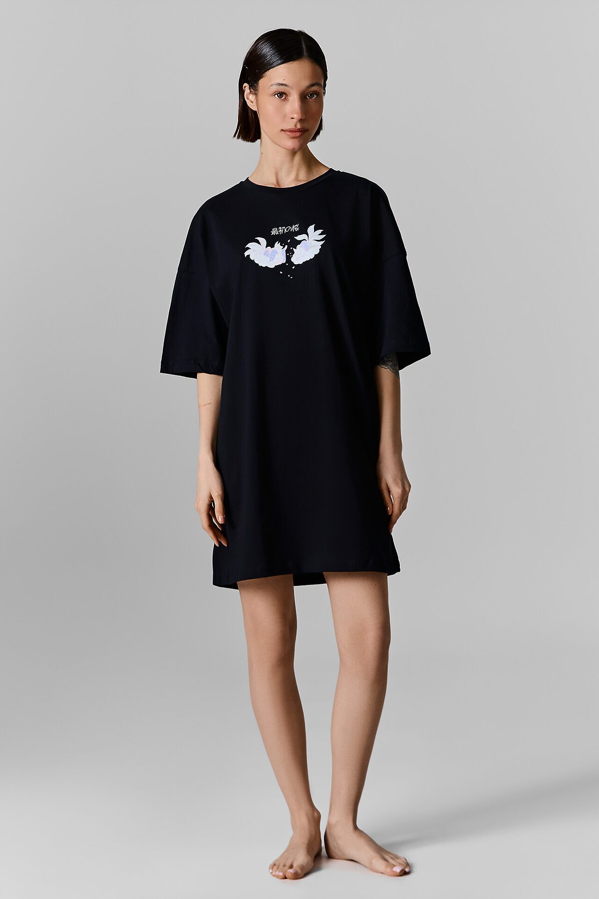 Очаровательная женская туника станет идеальным дополнением ваших домашних образов. Она прекрасно сидит по фигуре и не стесняет движений, обеспечивая максимальный комфорт. Короткие рукава со спущенной линией плеча и круглая горловина придают модели легкость. Изделие выполнено из мягкого и дышащего материала, который не сковывает движений и обеспечивает ощущение свободы. Деликатные швы абсолютно не чувствуются на коже, что добавляет дополнительное удобство. Эта туника идеально подходит для занятий домашними делами, отдыха и сна. В линейке представлены интересные базовые цвета, а широкий размерный ряд позволяет каждой женщине найти подходящий вариант. Рекомендуем!