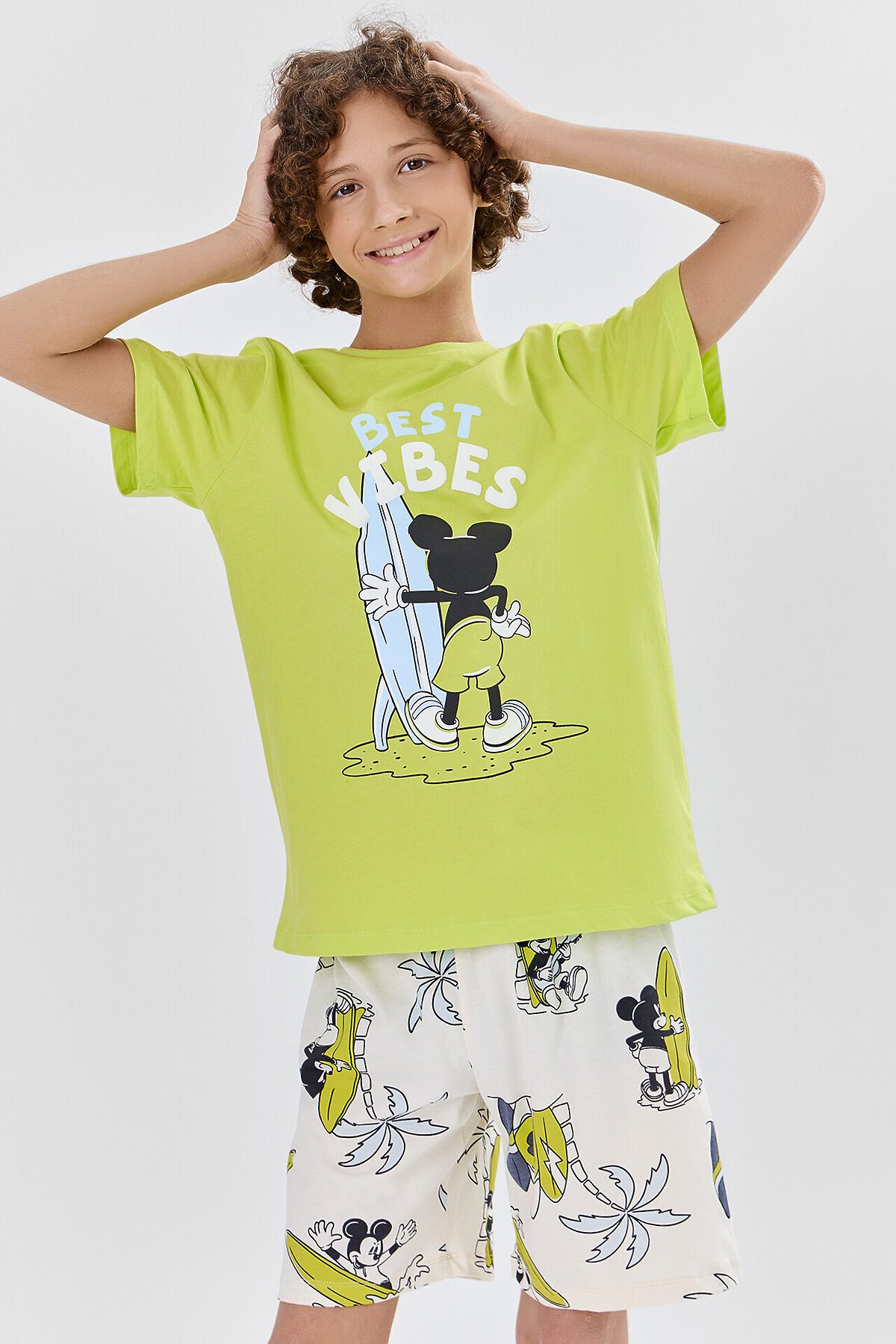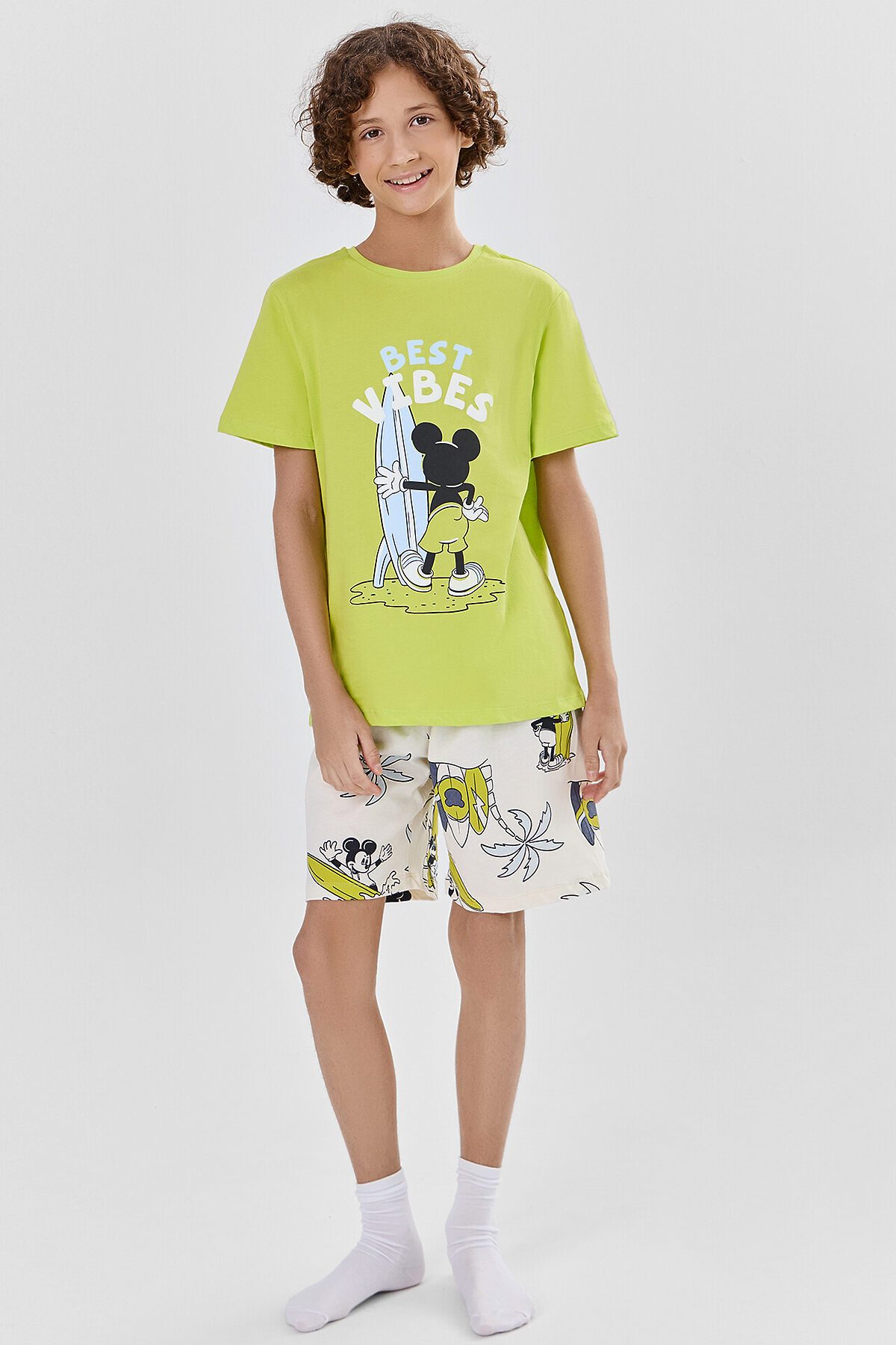 Комплект для мальчиков (футболка, шорты) MARK FORMELLE, дикий лайм +пляжные мышата на молоке