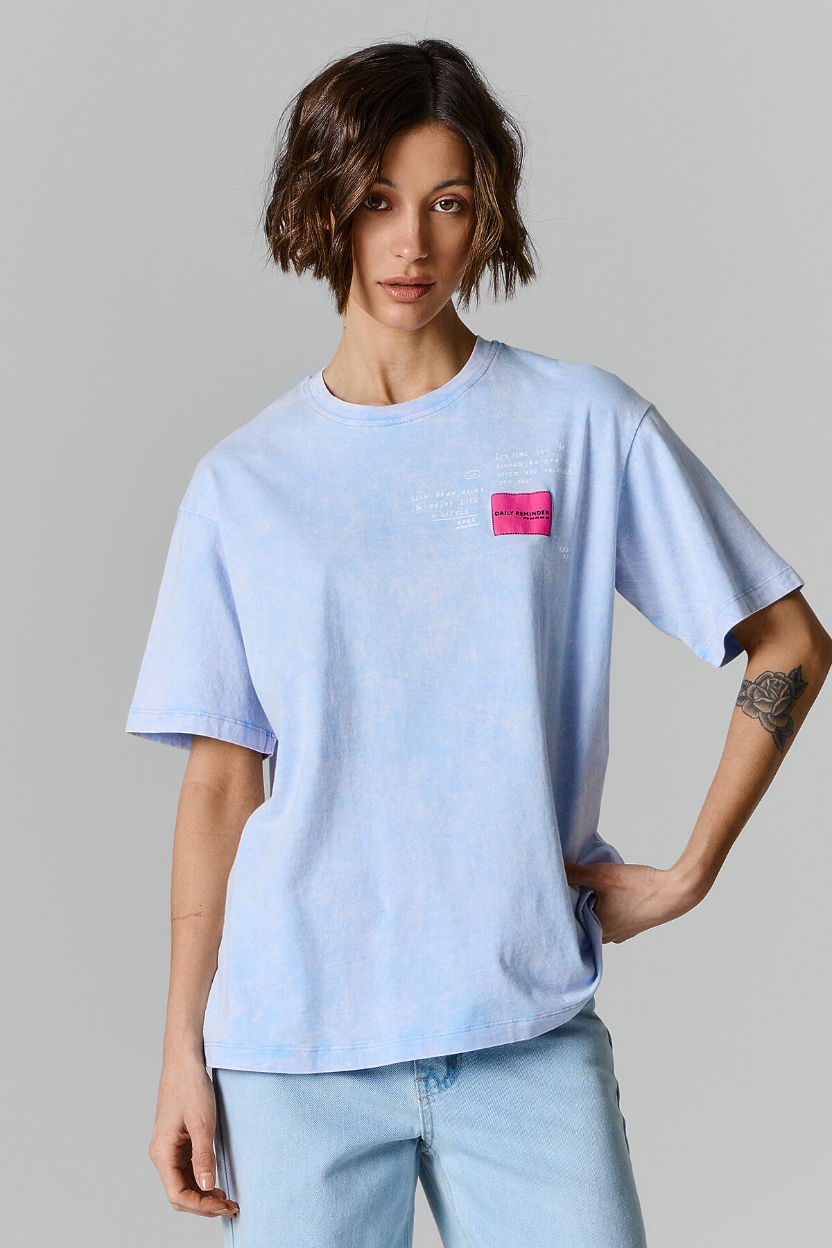 - ЦветAcid wash безмятежно -голубой +печать
