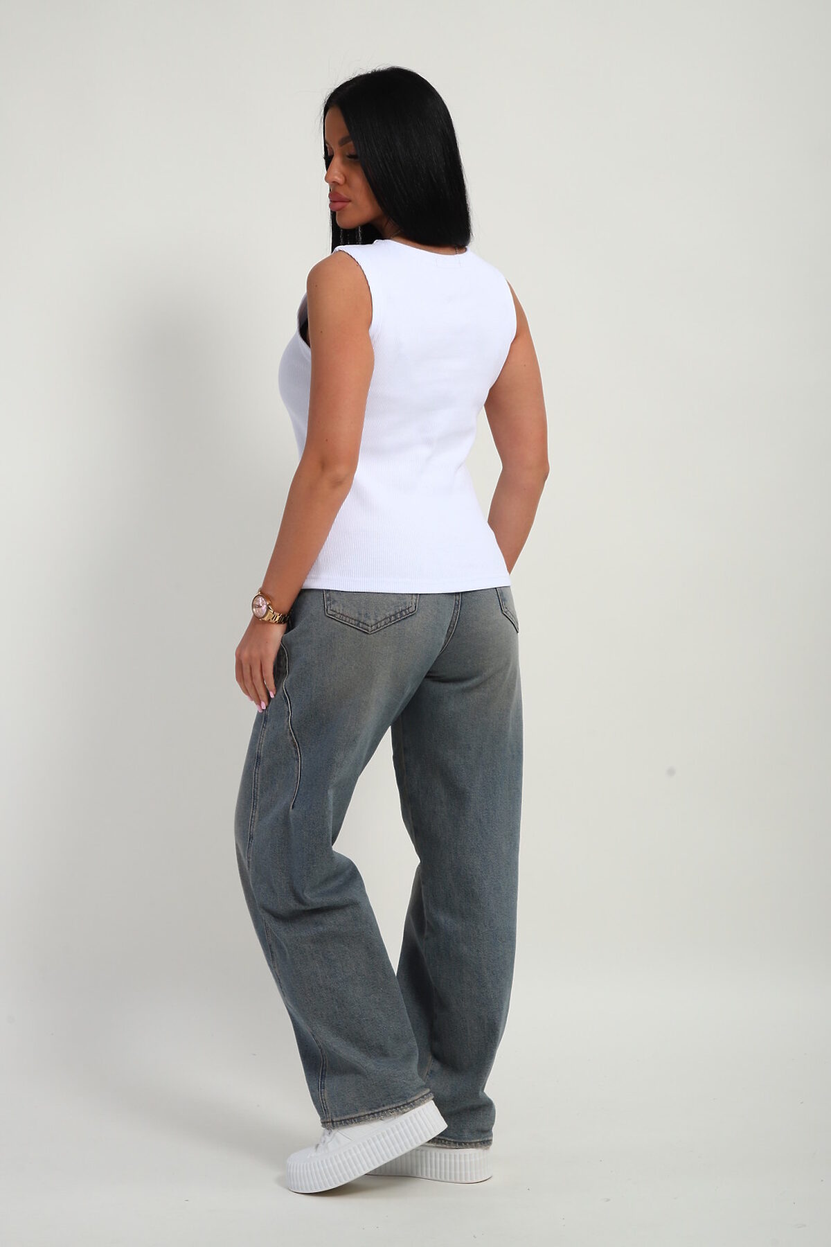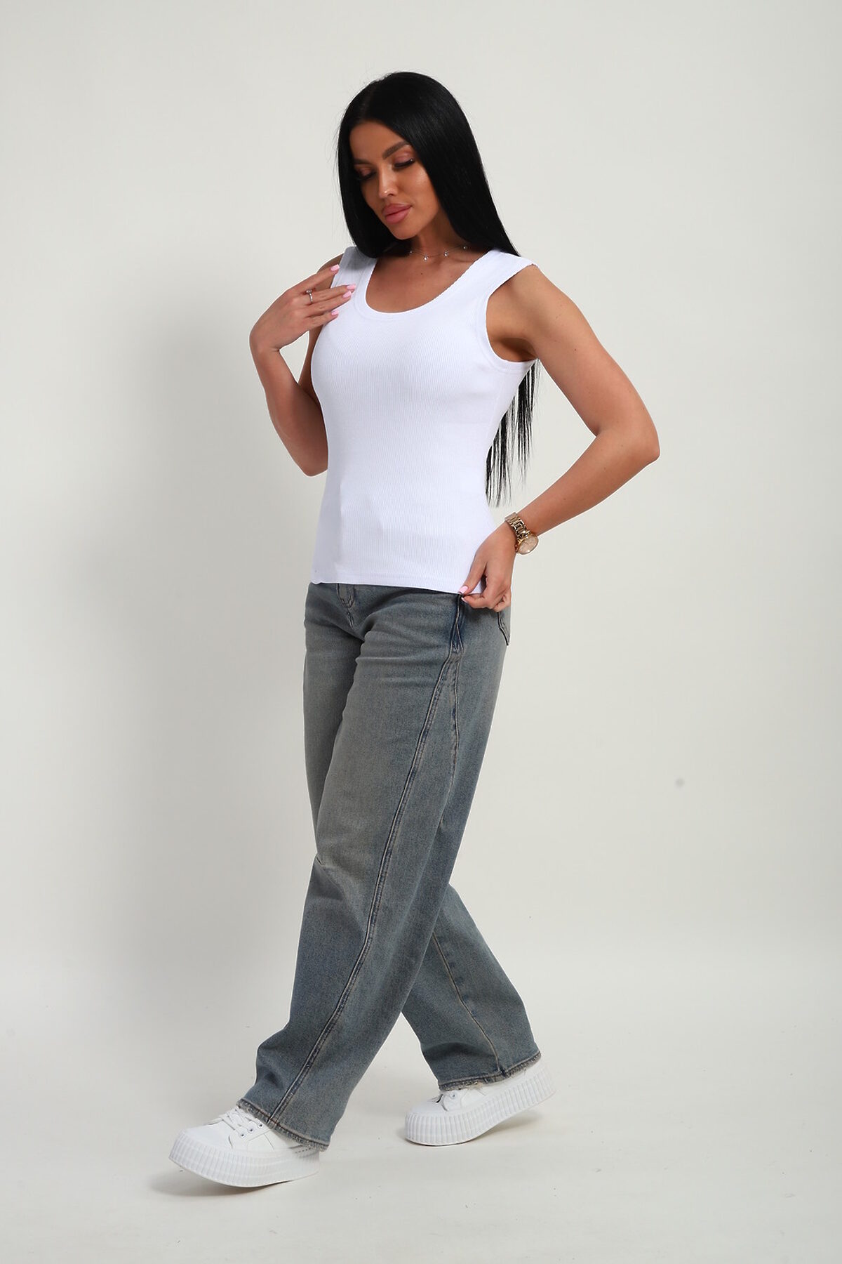 Трендовый топ, сшит из приятной к телу ткани. Материал кашкорсе с фактурой в рубчик, хорошо тянется и очень комфортна в носке. Эстетичная модель с круглым вырезом имеет качественный пошив и отлично держит форму.