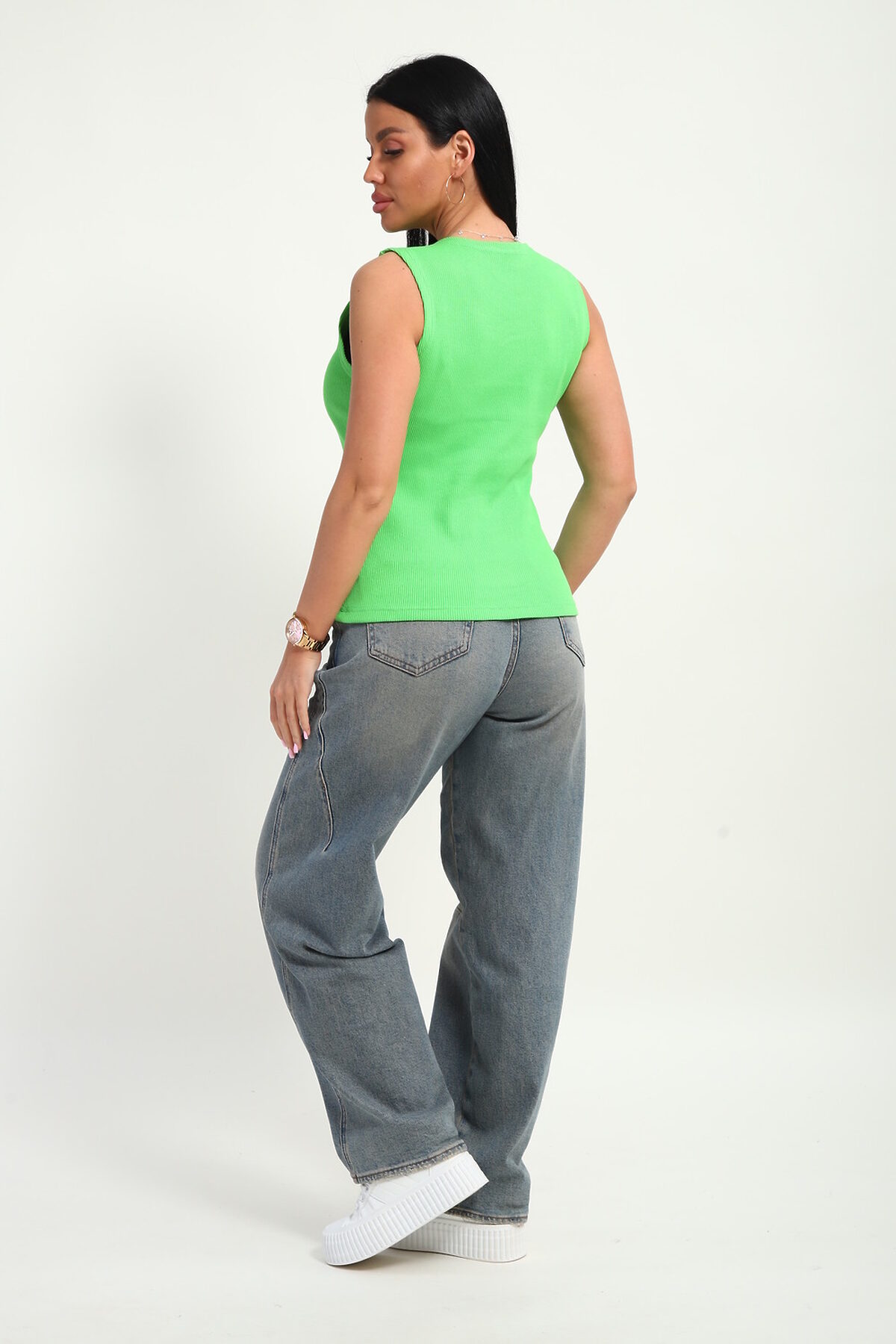 Трендовый топ, сшит из приятной к телу ткани. Материал кашкорсе с фактурой в рубчик, хорошо тянется и очень комфортна в носке. Эстетичная модель с круглым вырезом имеет качественный пошив и отлично держит форму.