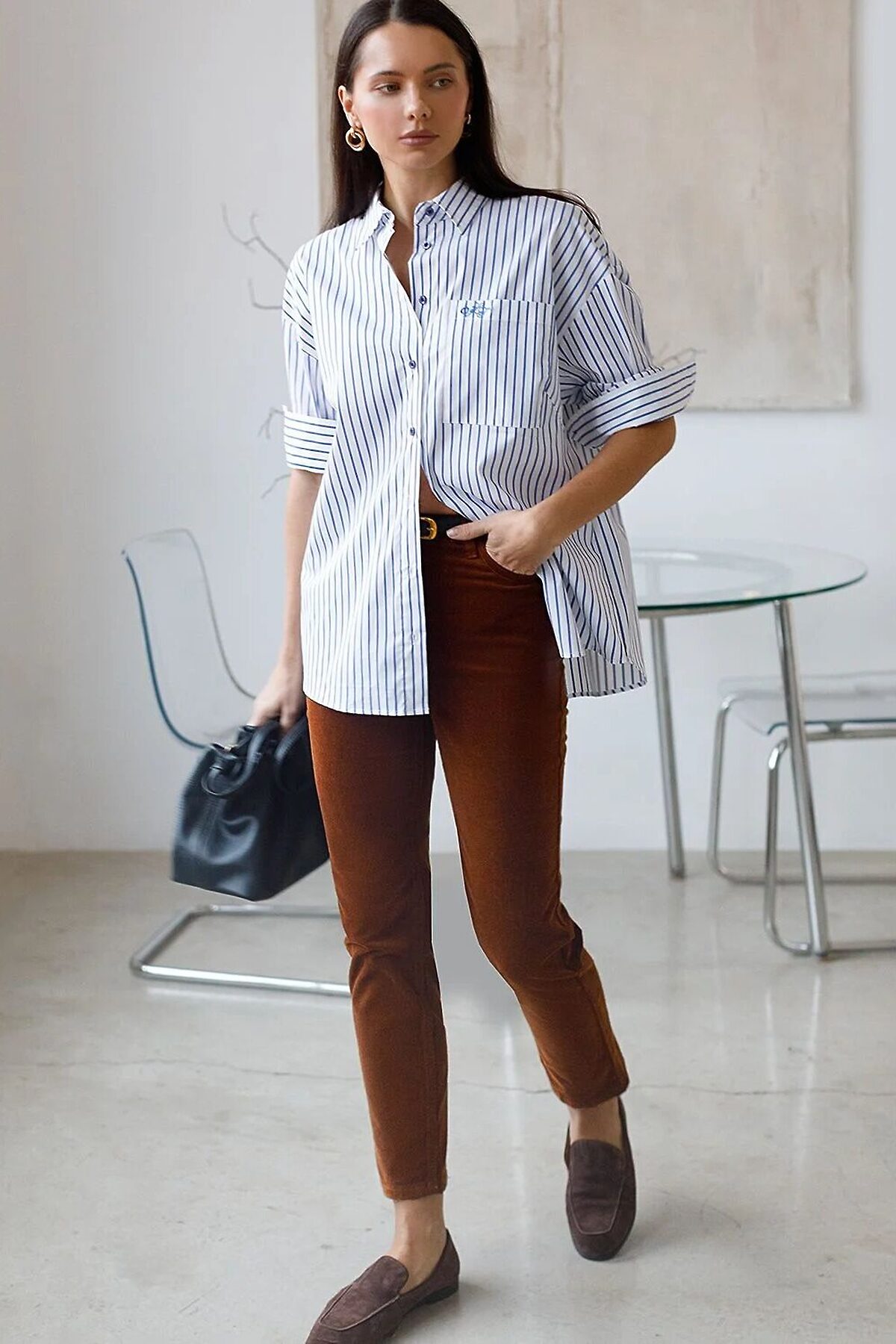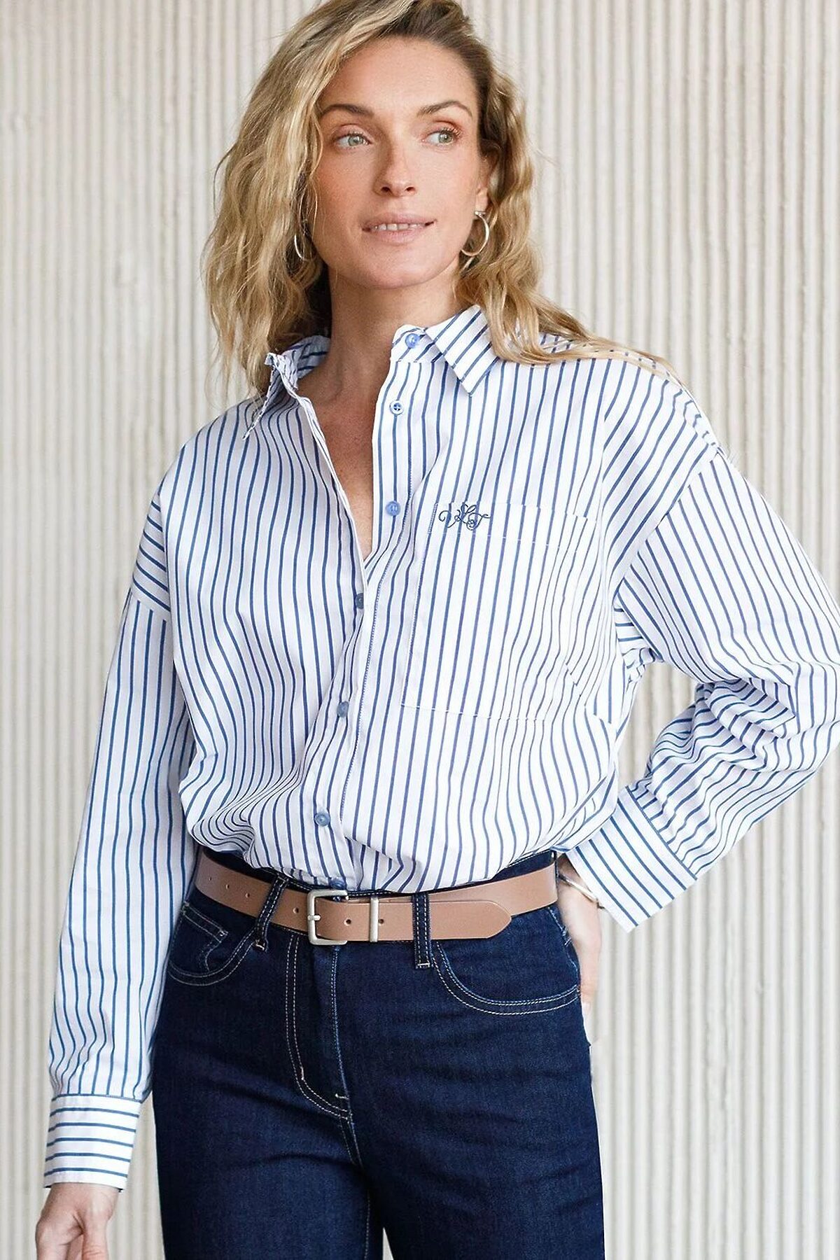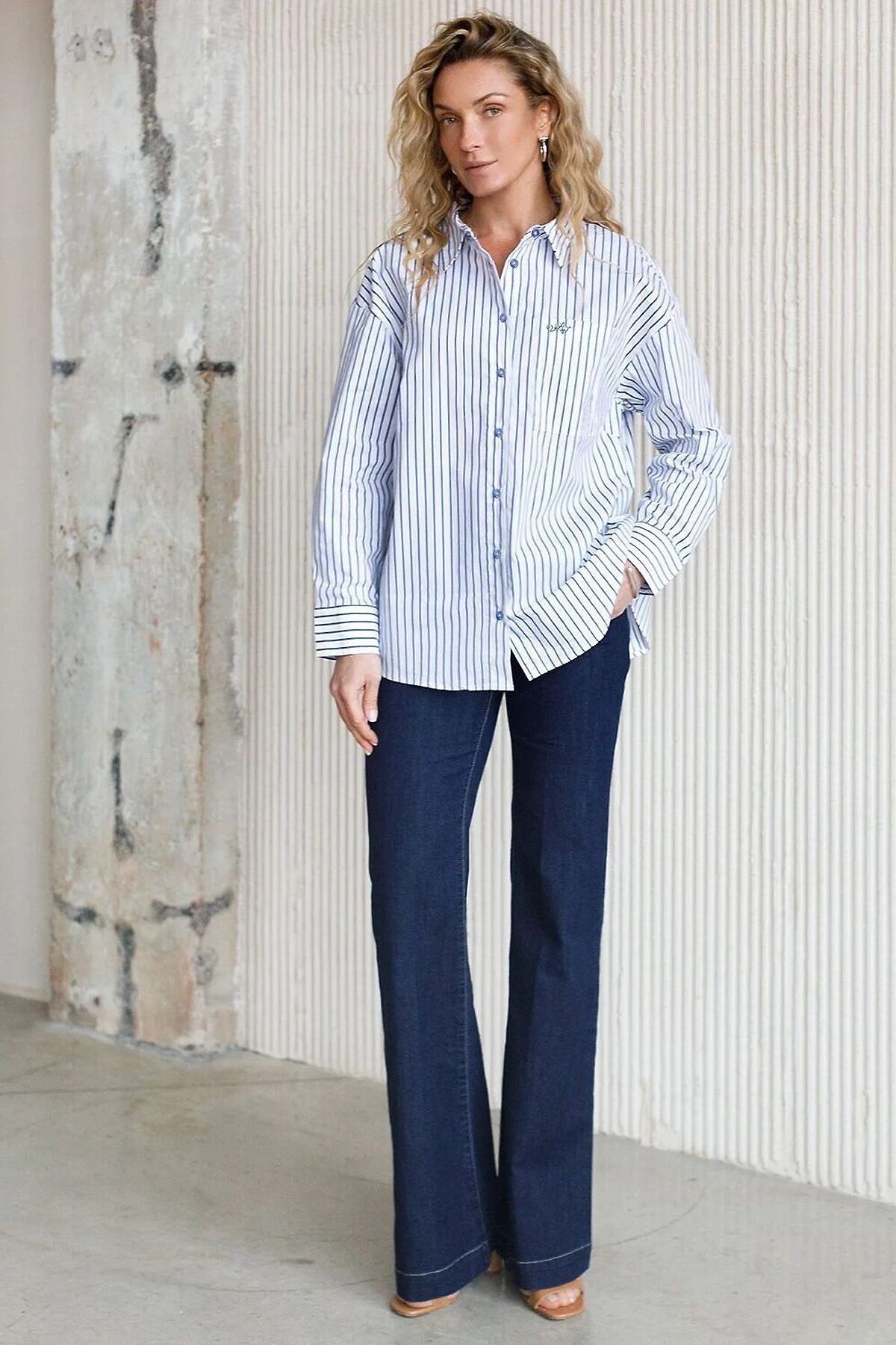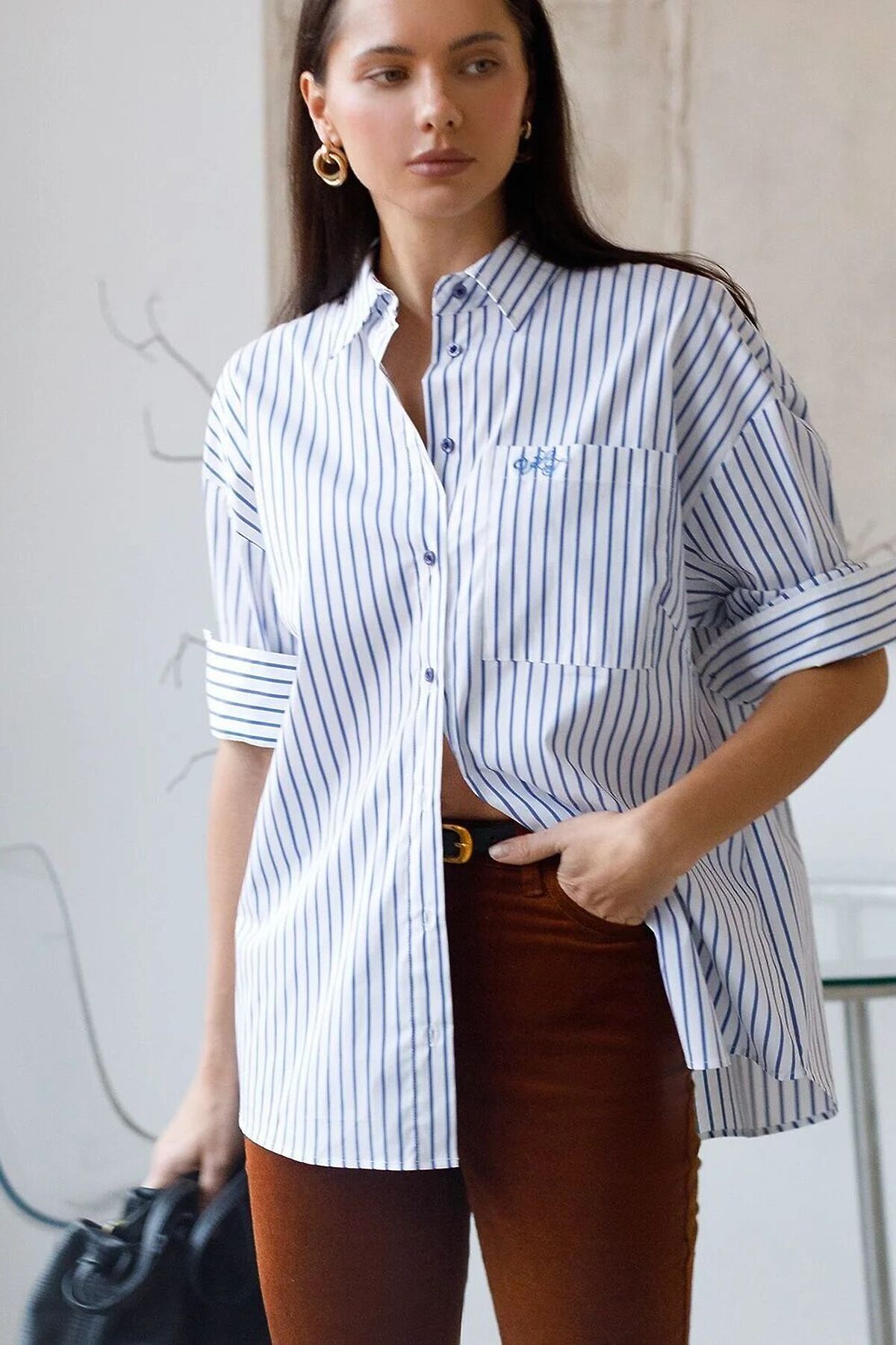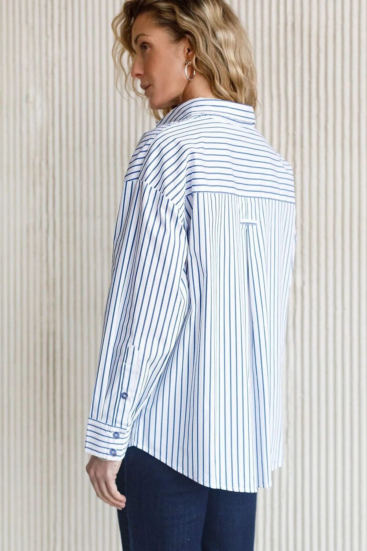 Эффектная блузка белого цвета в синюю полоску свободного силуэта станет главным акцентом вашего повседневного образа. Контрастные полосы освежают внешний вид и придают уверенности в любой ситуации. Благодаря хлопку с добавлением эластана блузка отлично держит форму, а принт полоска стройнит и визуально вытягивает силуэт. Яркая и стильная рубашка с отложным воротничком подчеркнет вашу элегантность. Удлиненная спинка со складкой смотрится оригинально и добавит динамики. Аккуратная вышивка на кармане в виде логотипа бренда добавляет премиальности образу. Повседневная и практичная, такая блузка подойдет на весну и лето, обеспечивая легкость и комфорт благодаря натуральному материалу. Мягкий эластичный хлопок приятен к телу и хорошо пропускает воздух, что особенно актуально в теплую погоду. Модель гармонично смотрится на разных размерах, в том числе и больших, а свободный крой не сковывает движений, подчеркивая индивидуальность и современный стиль.