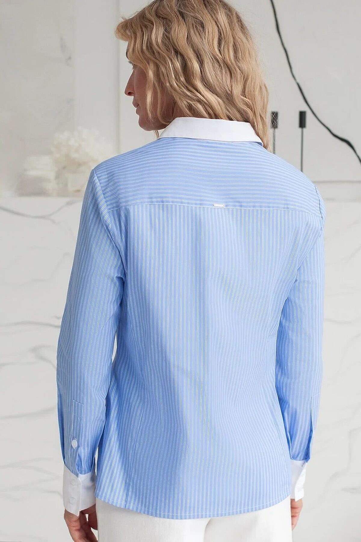 Стильная блузка голубого цвета в белую полоску приталенного силуэта подарит вам эффектный образ на весну и лето. Принт в полоску нейтральных оттенков освежает внешний вид и стройнит фигуру и визуально ытягивает силуэт. Идеально подходит для деловой работы и повседневной носки, подчеркивая вашу женственность и уверенность. Контрастные манжеты аккуратно оформлены и придают блузке дополнительный шарм, а воротник держит форму, добавляя образу элегантности. Блузка представлена так же в больших размерах, чтобы каждая могла подобрать вариант по своей фигуре. Эта красивая рубашка отлично сочетается с разными стилями и станет обязательной частью летнего гардероба. Простая, но стильная вещь, которая подчеркнет вашу индивидуальность и создаст эффектный образ.