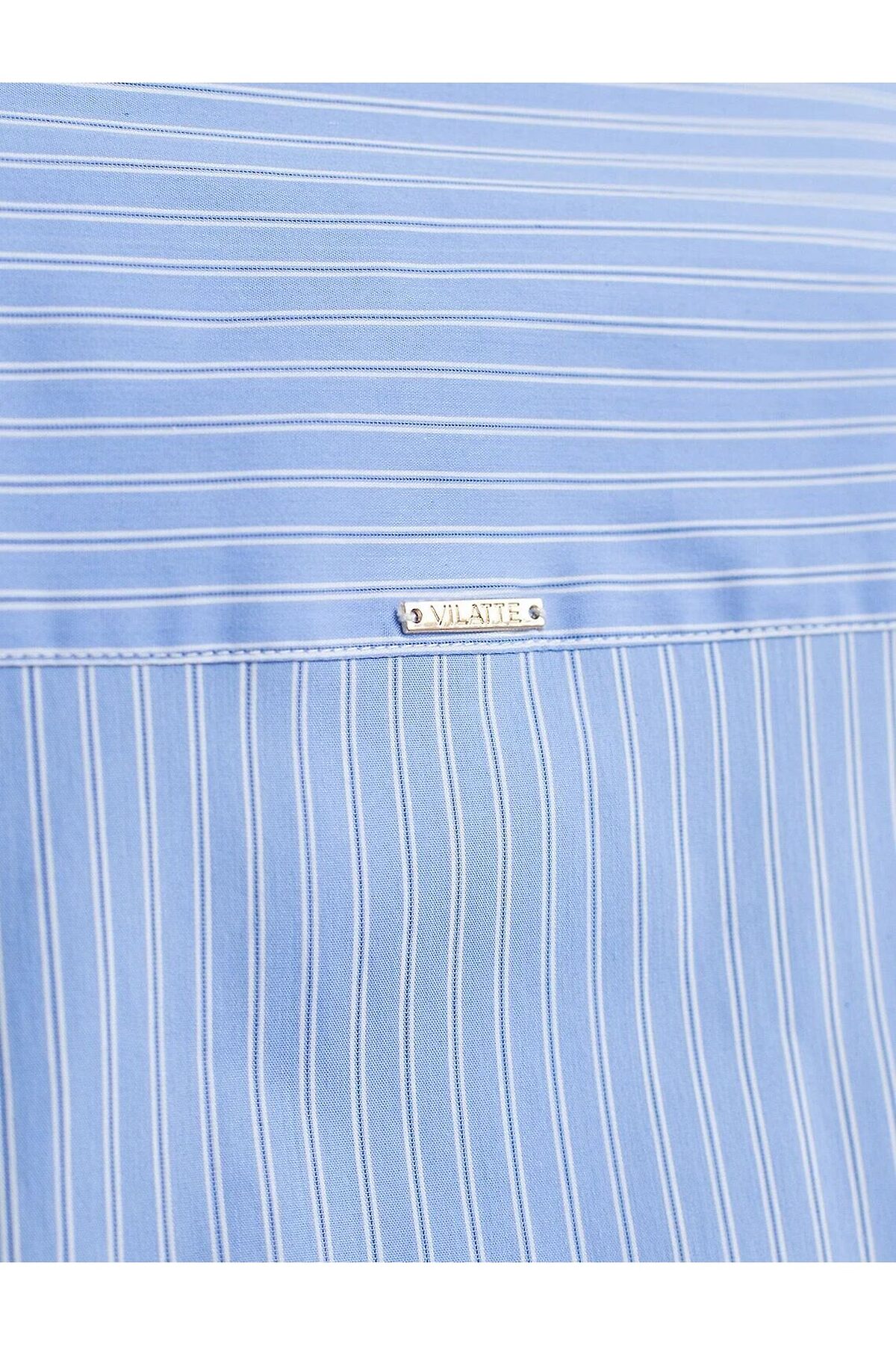 Блузка приталенного силуэта в полоску из эластичного хлопка VILATTE, голубой-белый