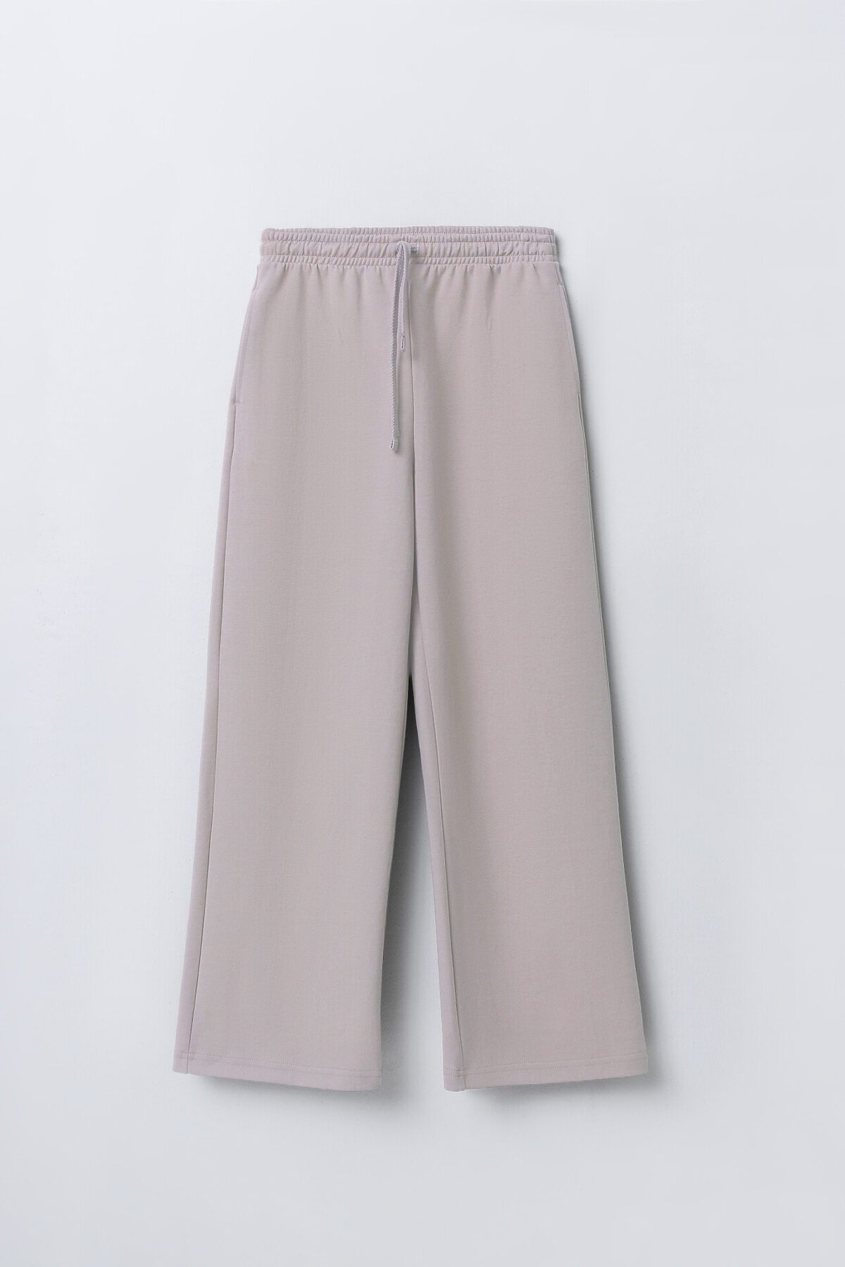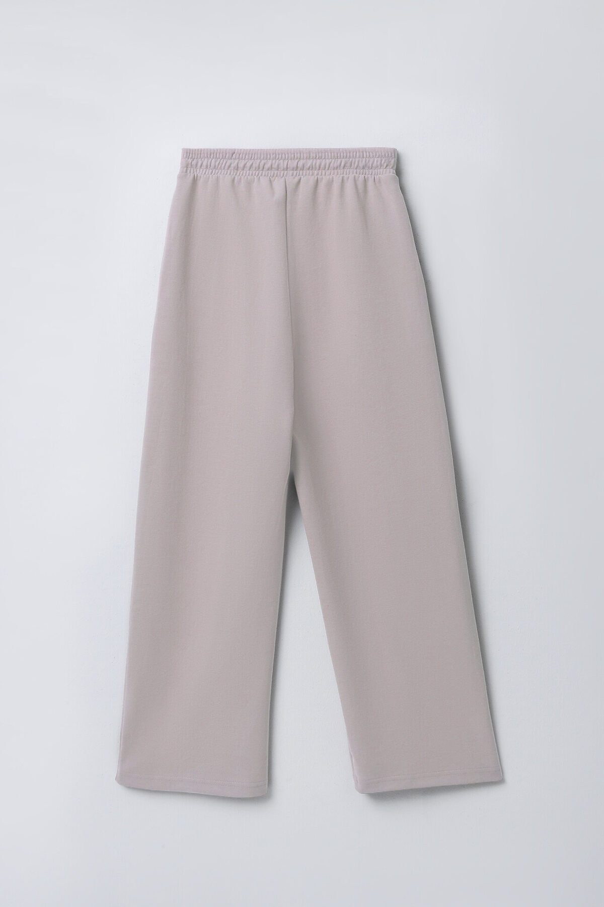 Брюки прямые свободные, посадка средняя. Пояс отрезной, с эластичной тесьмой внутри (внутренняя 40мм 40RV). С внешней стороны пробиты петли и вставлен шнур 10PX-2. В боковых швах обработаны карманы. Нижний срез брюк обработан швом вподгибку.