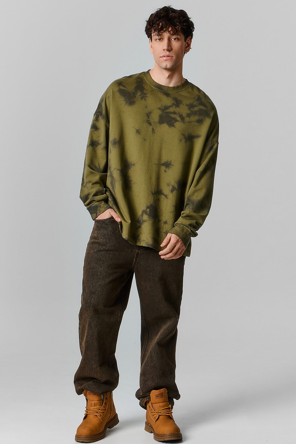 Мужской свитшот oversize дополнит бесчисленное количество стильных образов. Он выполнен из футера — материала, известного своей мягкостью и прочностью. Эта модель имеет круглую горловину и длинные рукава со спущенной линией плеча, что придает современный и расслабленный вид. Эластичные манжеты из рибаны дарят дополнительный комфорт и удерживают тепло, делая этот свитшот идеальным выбором для повседневного ношения. Рекомендуем!
