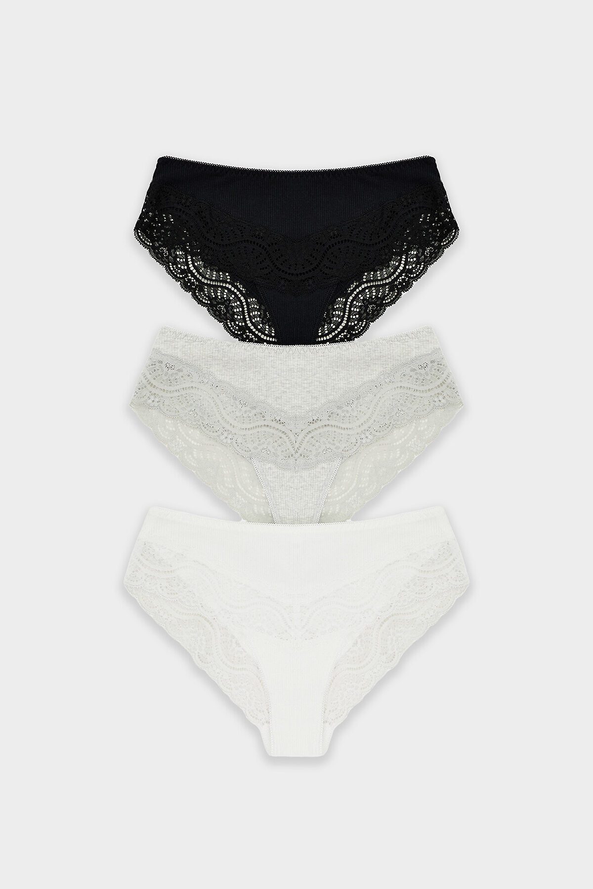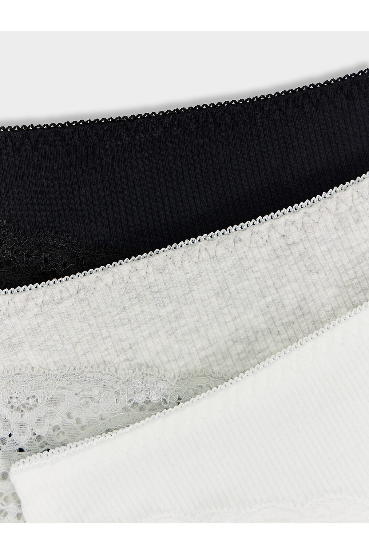 Трусы женские силуэта слип со средней посадкой из рибаны. По талии эластичная тесьма с зубом настрочена на 4-укольном зигзаге. Ножки обработаны узким кружевом шириной, на передней и задней частях со средним швом. Подкладка ластовицы из кулирной глади. Срезы ластовицы обработаны эластичной тесьмой с зубом на п/ш с изнаночной стороны.