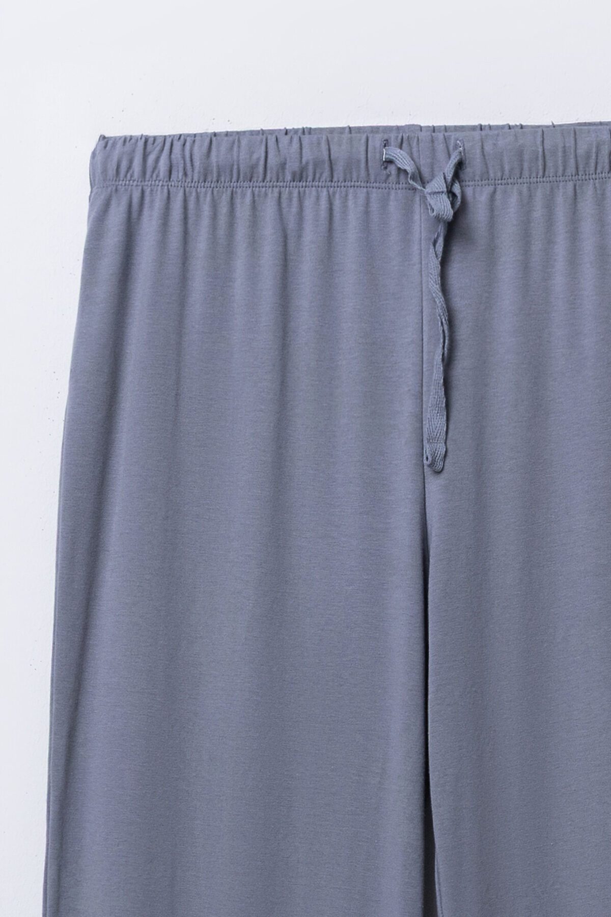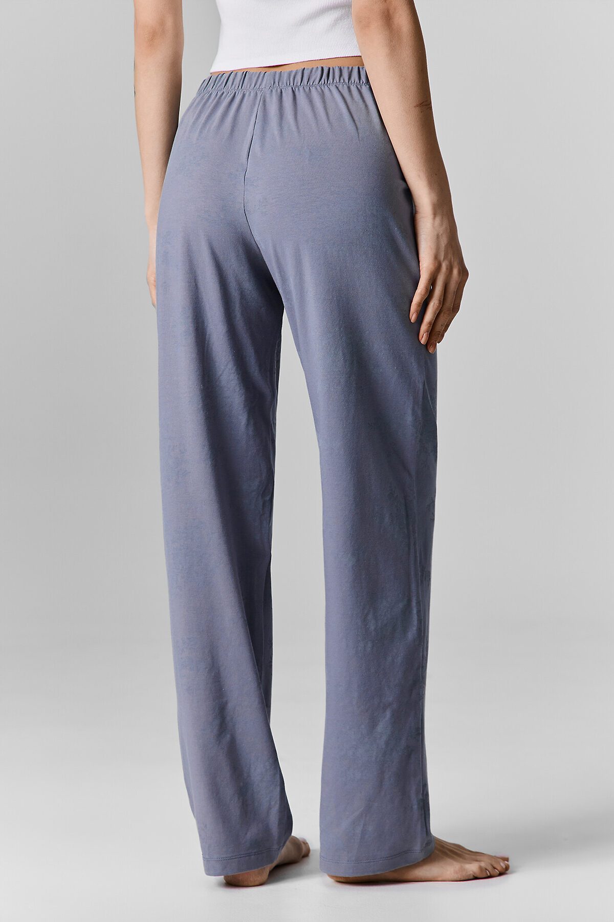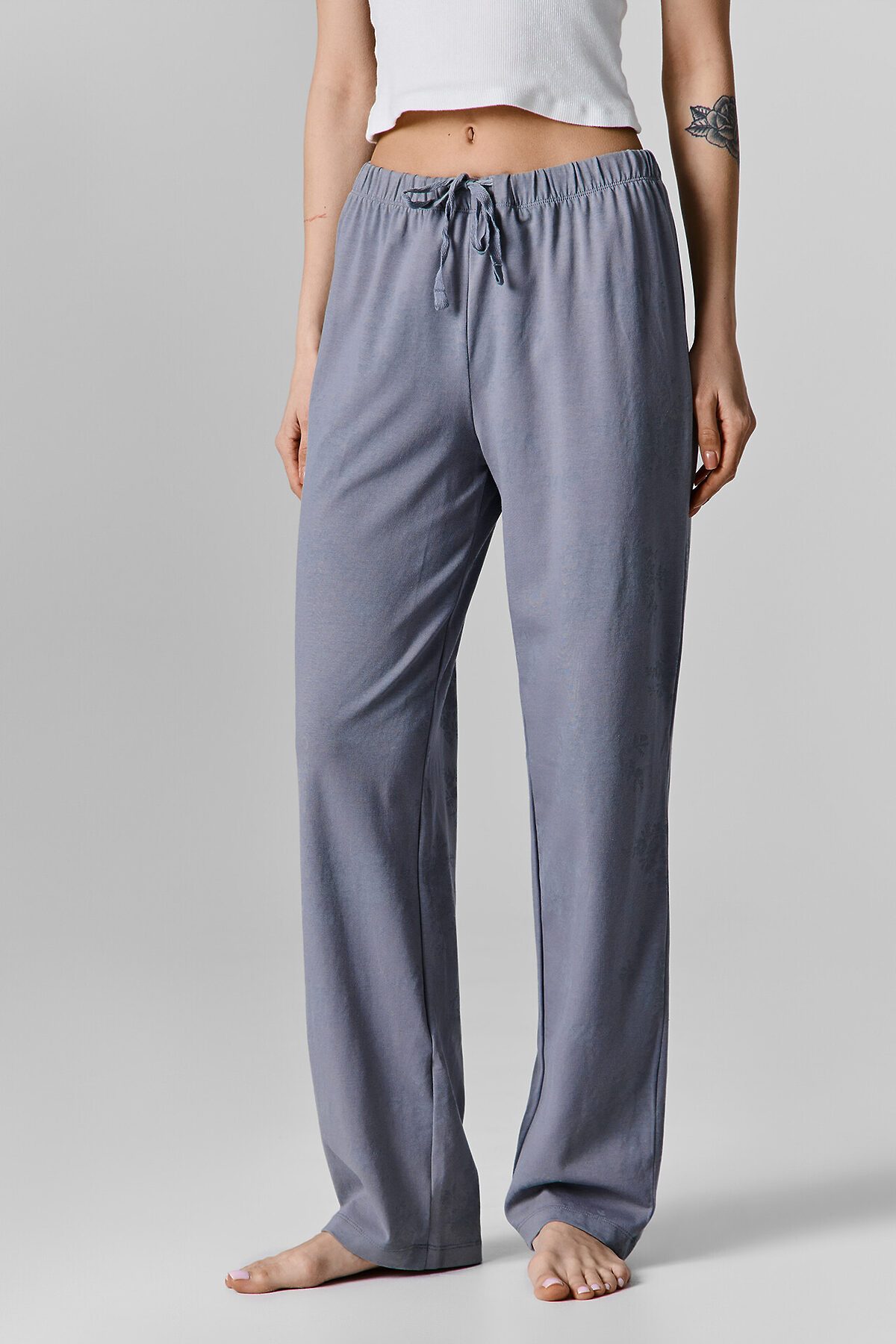 Брюки прямого силуэта, немного заужены к низу. Пояс цельнокроеный с резиной внутри 30RV. По центру пояса пробиты петли, протянута хб тесма 10мм. Низ брюк обработан в подгибку.