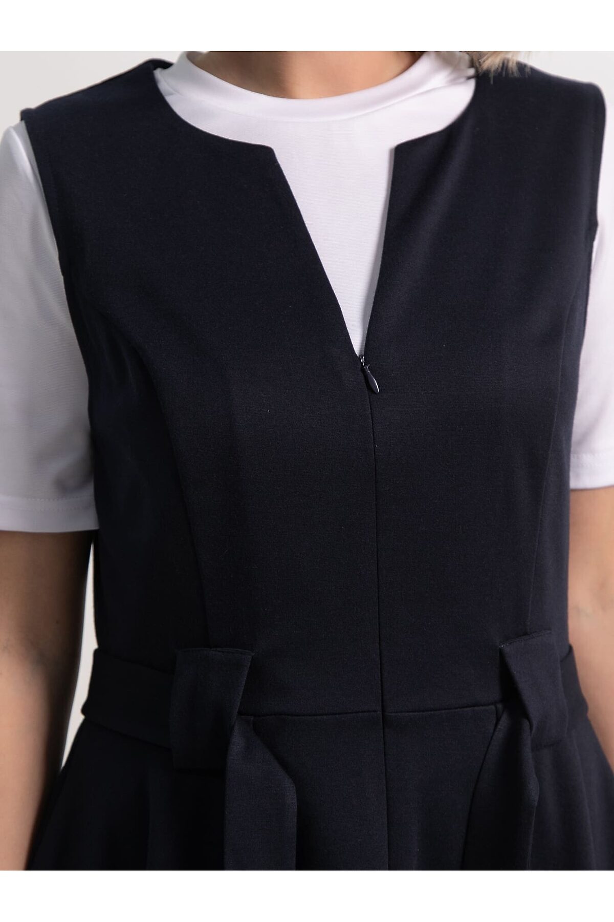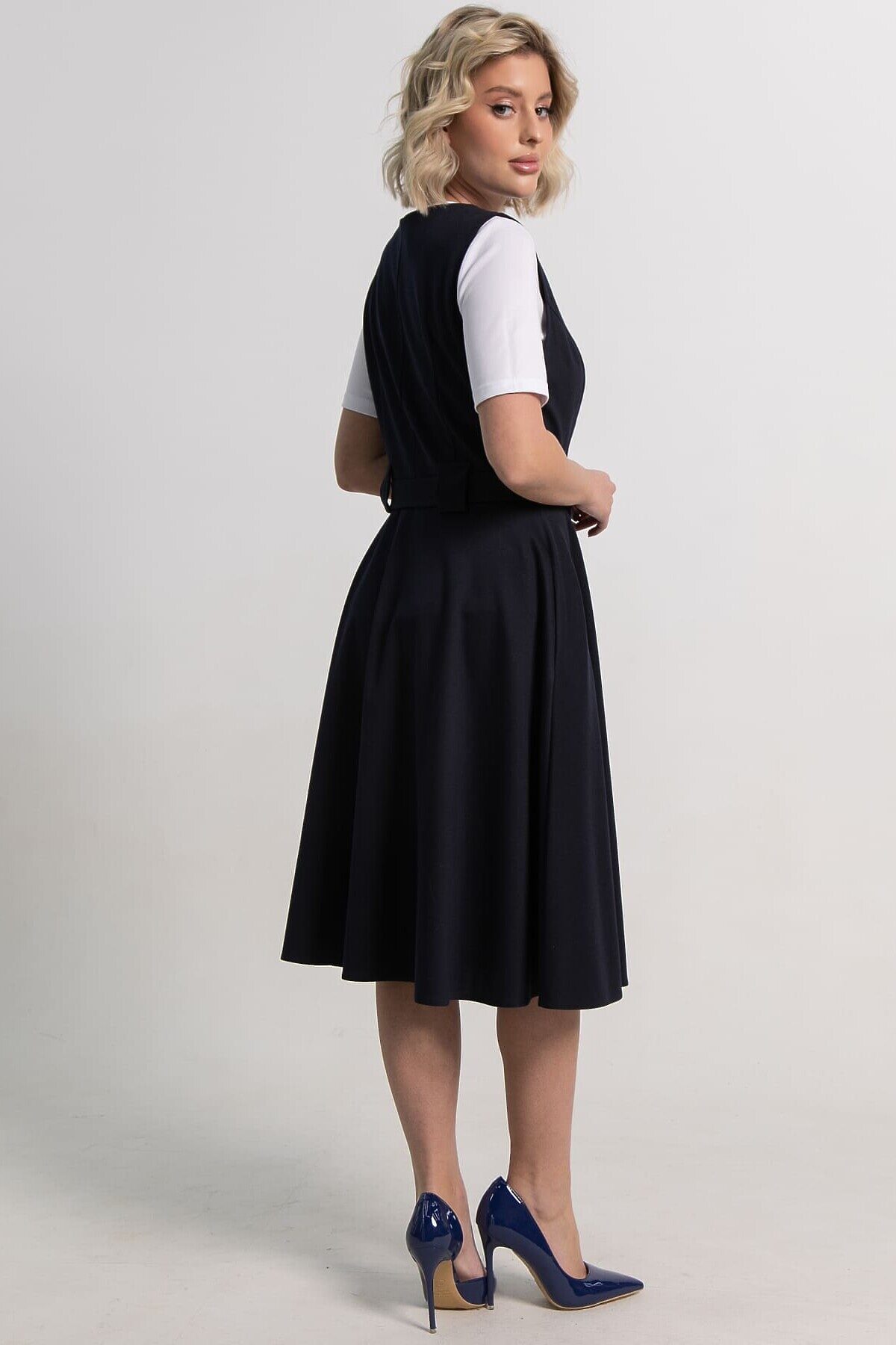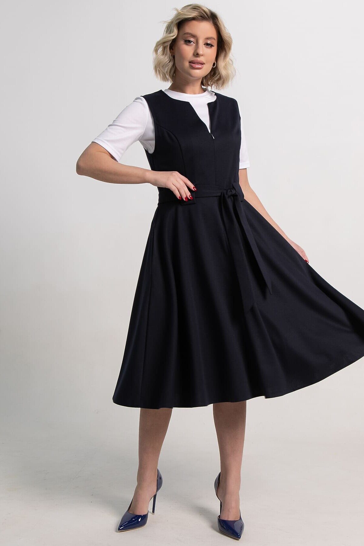 Бережная стирка при 30 градусах. Платье без подкладки! Женское платье — универсальная модель, которая станет базой для стильного делового гардероба. Этот свободный сарафан миди длины до колена выполнен в классическом А-силуэте и V-образным вырезом, что визуально вытягивает силуэт и делает образ более женственным и элегантным. Благодаря широким бретелям сарафан удобно носить с блузкой, водолазкой или рубашкой, создавая строгий и деловой стиль для офиса, учебы или официальных мероприятий. Это платье без рукавов — удачный выбор для тех, кто ценит классический стиль, удобство и универсальность. Оно подчеркнет ваш строгий и элегантный образ, станет незаменимой частью офисного или школьного дресс-кода и позволит выглядеть стильно каждый день.