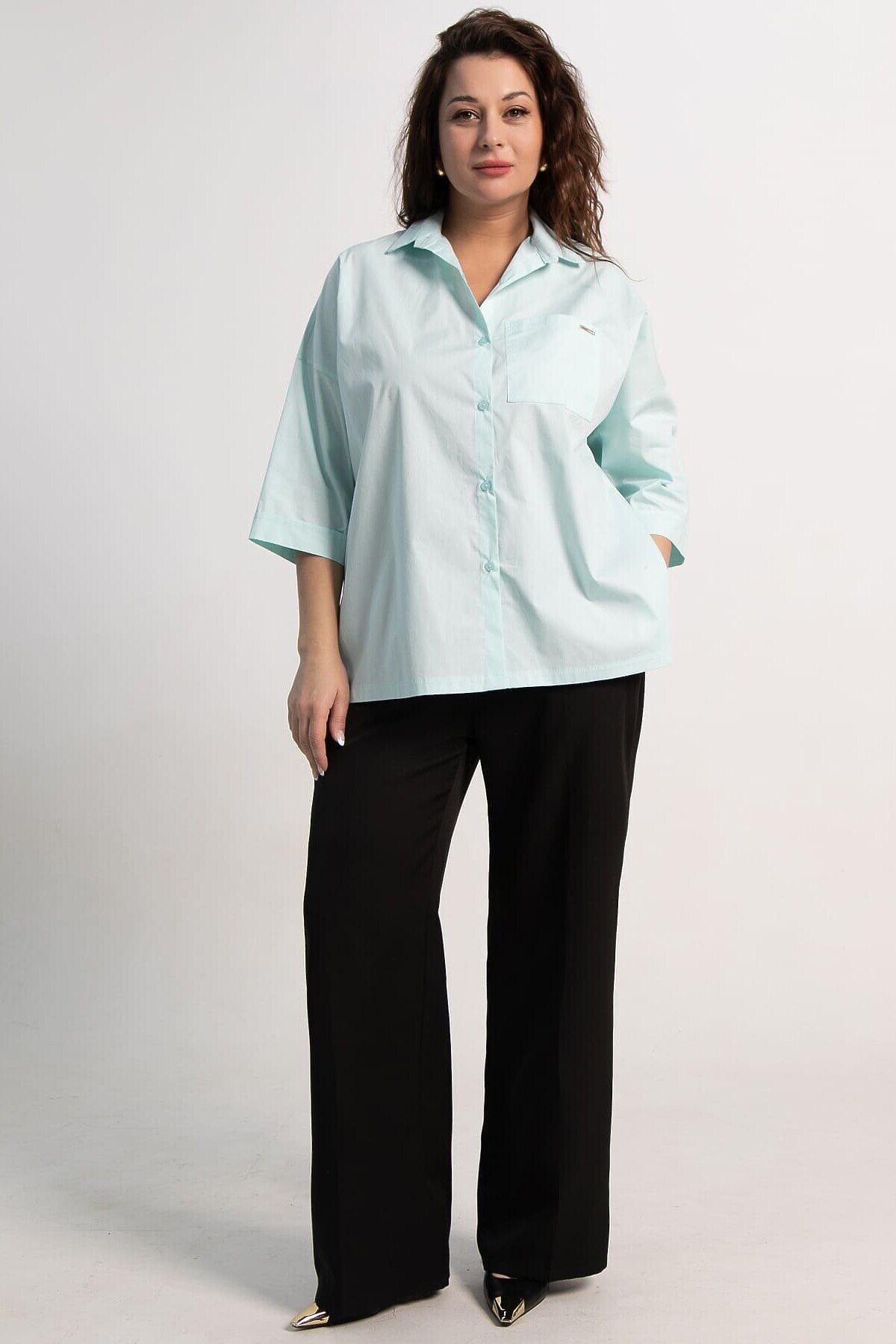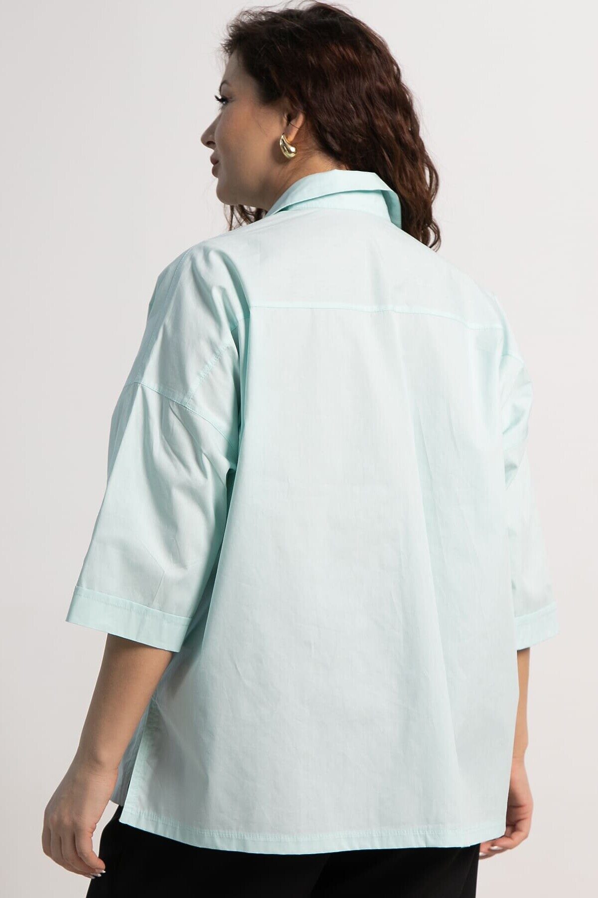 Женская рубашка мятного цвета — это свежесть и стиль в каждой детали! Спущенное плечо придает рубашке современный, непринужденный вид, делая ее идеальной для многослойных образов или как самостоятельную вещь. Рукав длиной три четверти с аккуратным манжетом — это практичное решение, которое подходит для любого сезона и добавляет образу элегантности. Рубашечный воротник на стойке обеспечивает безупречный внешний вид и позволяет носить рубашку как в формальной, так и в неформальной обстановке. С левой стороны расположен карман, который декорирован металлической вставкой. Слегка удлиненная спинка придает рубашке актуальный силуэт, создавая элегантный и сбалансированный образ. Боковые разрезы обеспечивают дополнительную свободу движений и добавляют динамичности. Эта рубашка — ваш идеальный выбор для создания стильного и комфортного образа на каждый день. Она прекрасно сочетается с джинсами, брюками или юбками, позволяя экспериментировать с различными стилями.