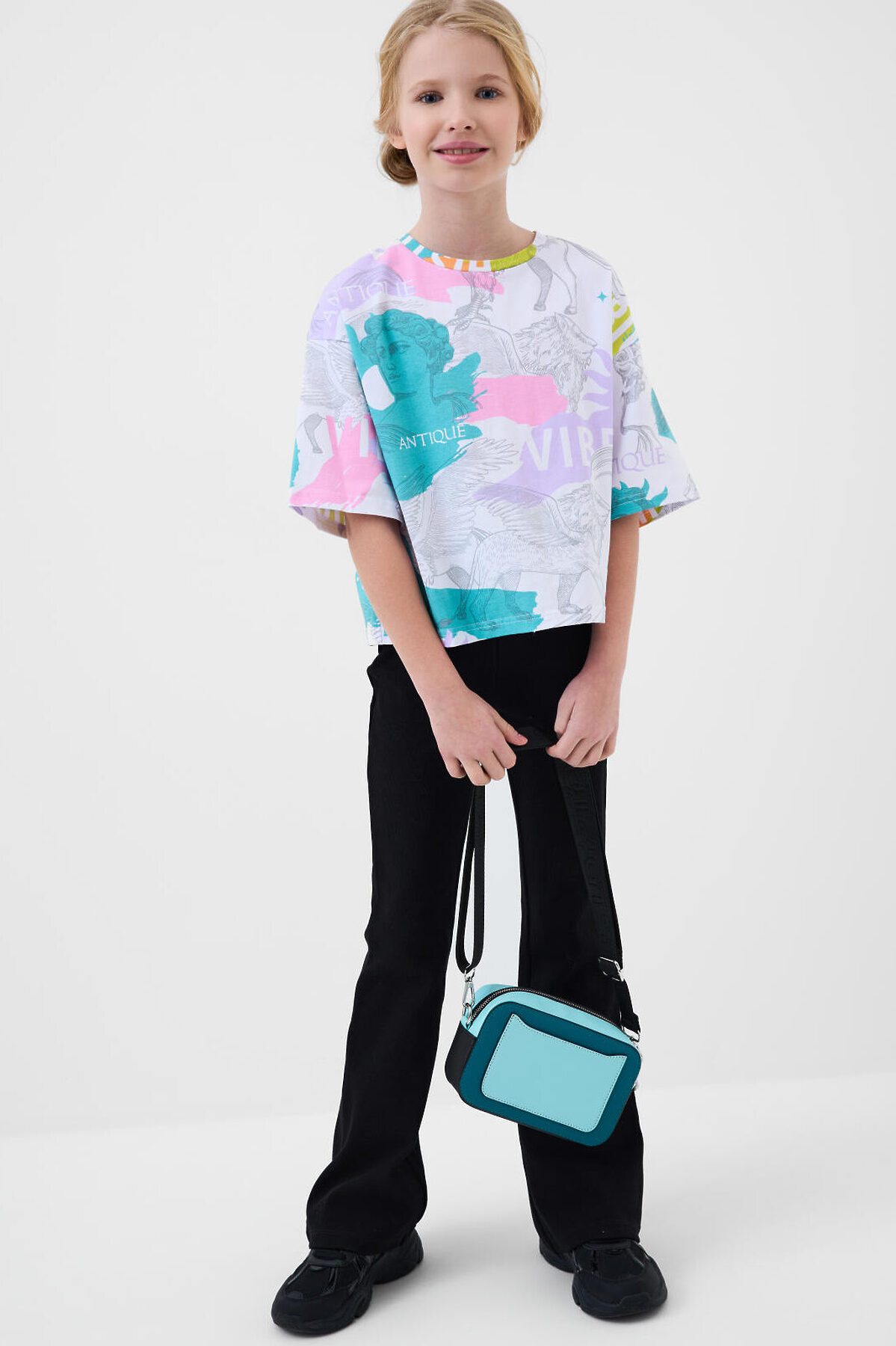 Сумка кросс-боди для девочки-подростка выполнена в стиле колор-блок. В комплекте с сумкой идет картхолдер, который можно носить на шее как украшение. Брендированный ремень регулируется. Основное отделение на молнии, сзади - отделение для транспортной карты, внутри есть карман на молнии. Фирменная брендированная подкладка. Параметры сумки: высота - 12 см, ширина -19 см, глубина - 6 см. Параметры картхолдера: высота - 7 см, ширина -10 см. В подарок идет дополнительный фирменный мешок для сумки (пыльник).