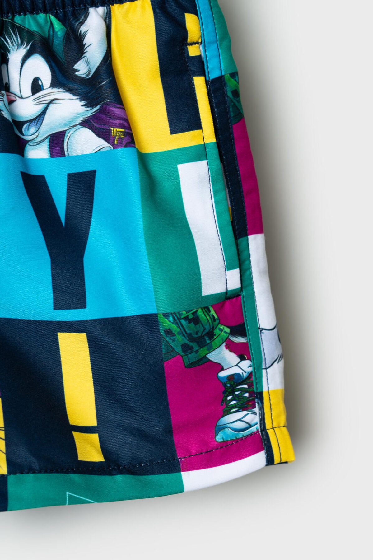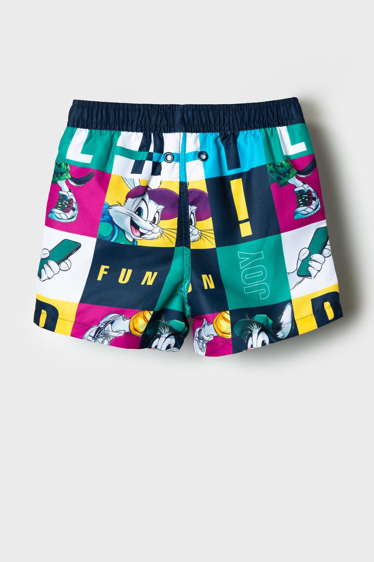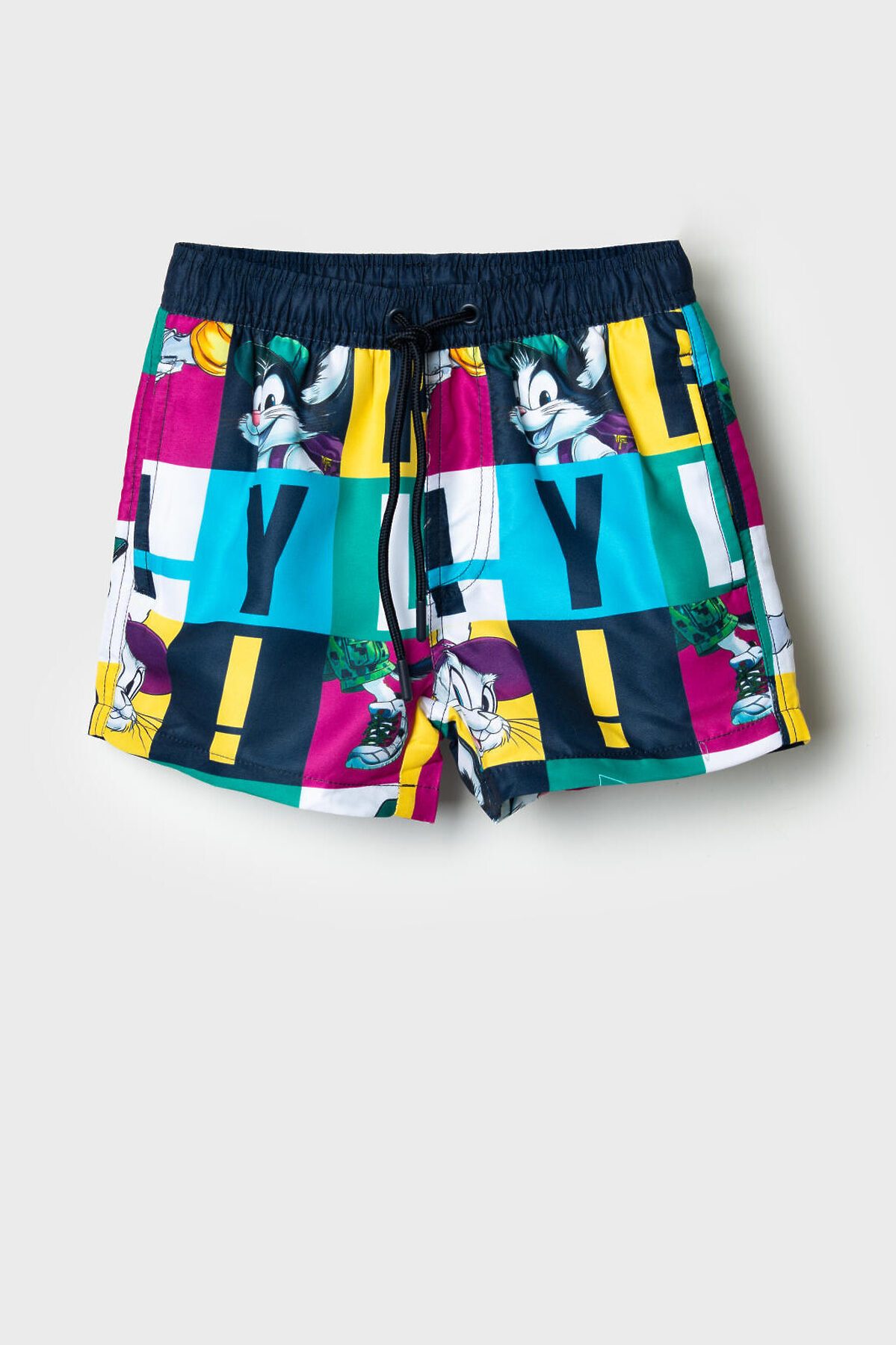 Плавательные детские шорты из быстросохнущего материала с водоотталкивающей пропиткой для мальчика. Бордшорты (swimshort) средней длины. Модель с подкладкой из мягкой сетки в виде трусов, карманы из сетки. Пояс на резинке с дополнительной регулировкой по талии шнурком. Благодаря UF-защите, ткань сохраняет первоначальный вид даже при длительном пребывании на солнце. Отличный вариант для пляжа и бассейна.