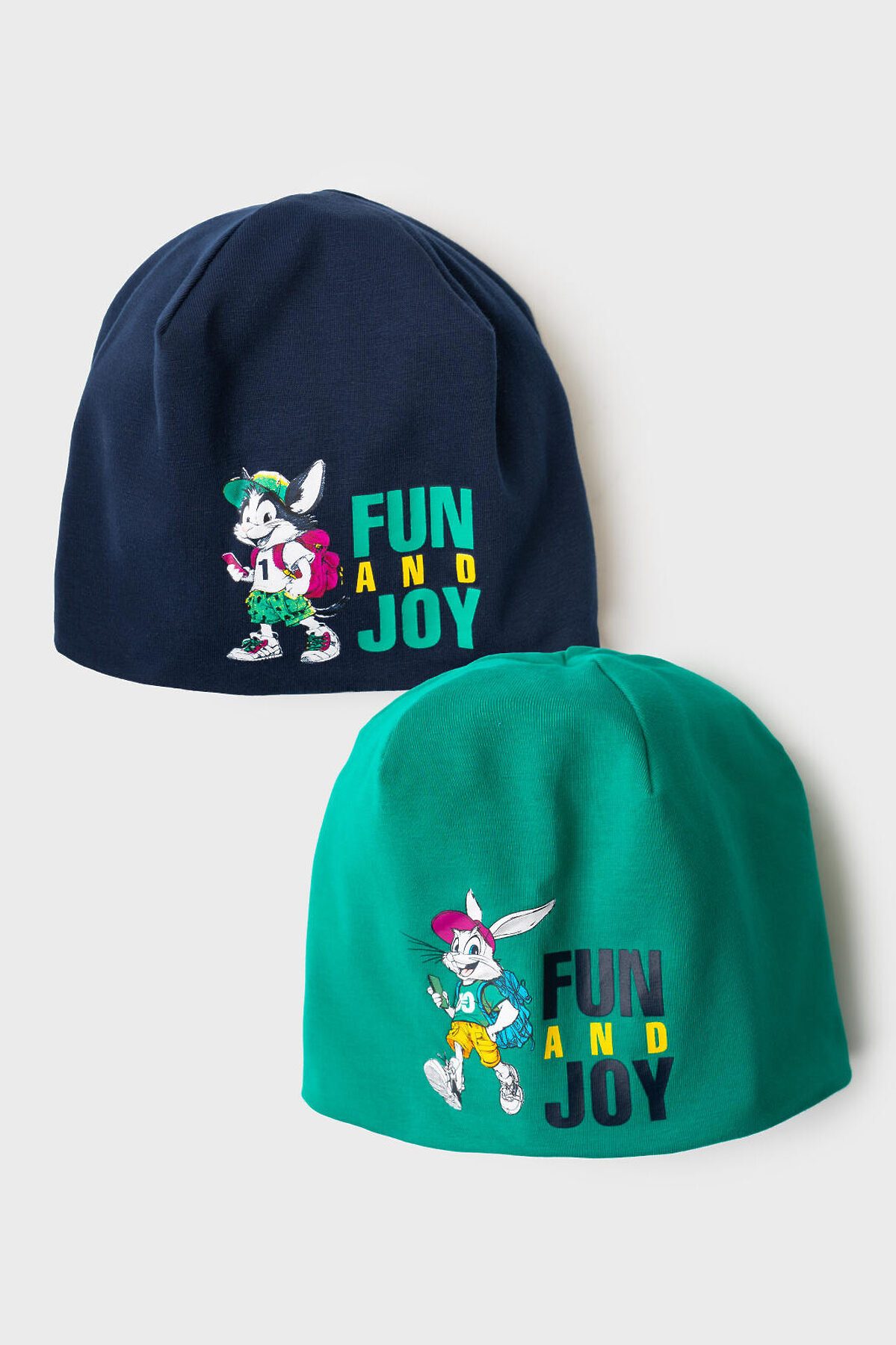 Шапка трикотажная для мальчиков, 2 шт в комплекте PLAYTODAY, тёмно-синий,зеленый