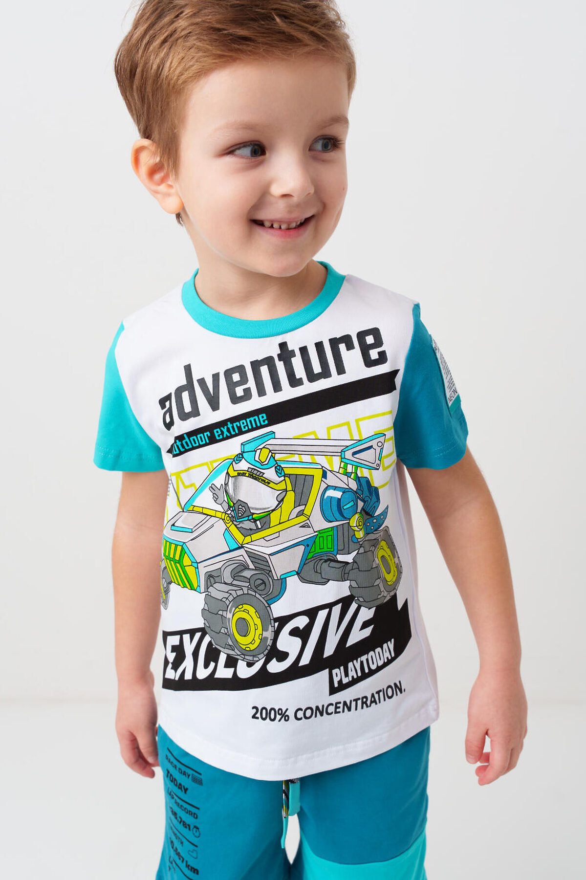 Комплект трикотажный для мальчиков: фуфайка (футболка), шорты PLAYTODAY, белый,бирюзовый
