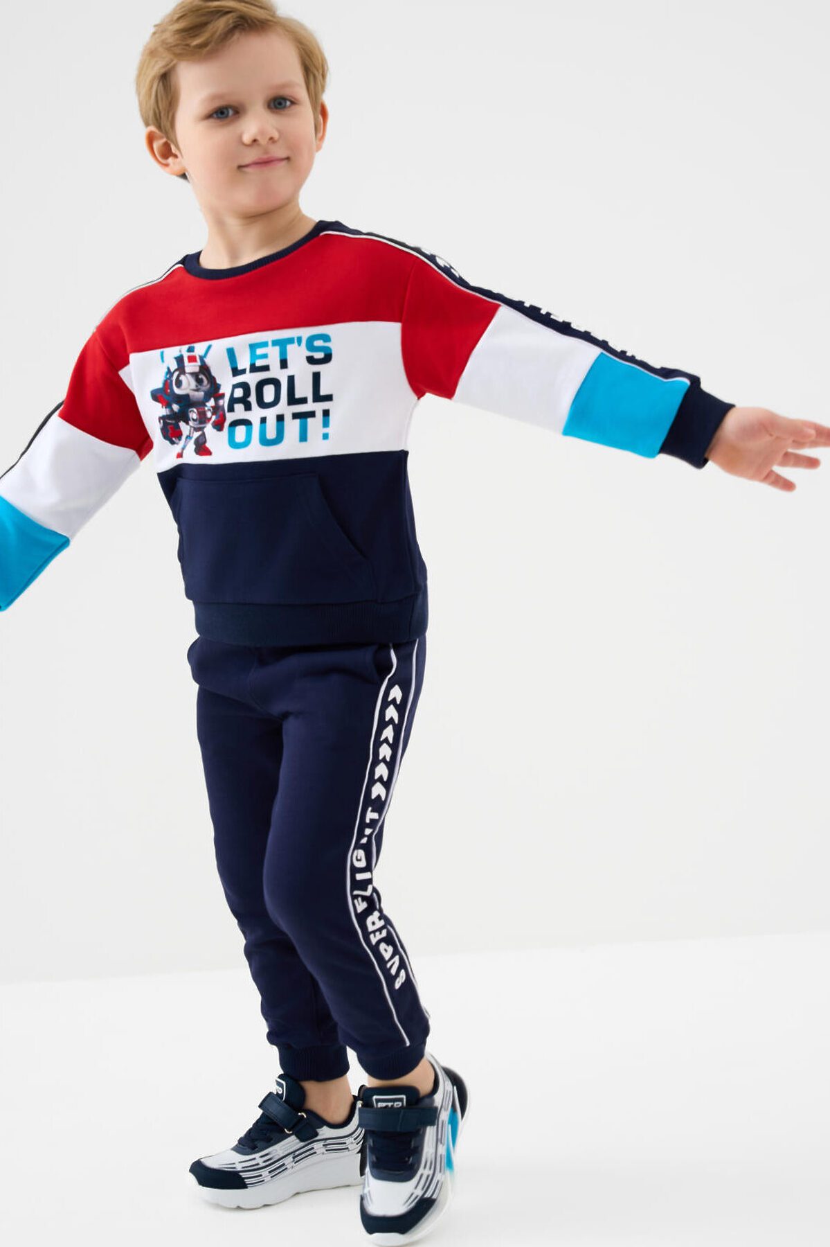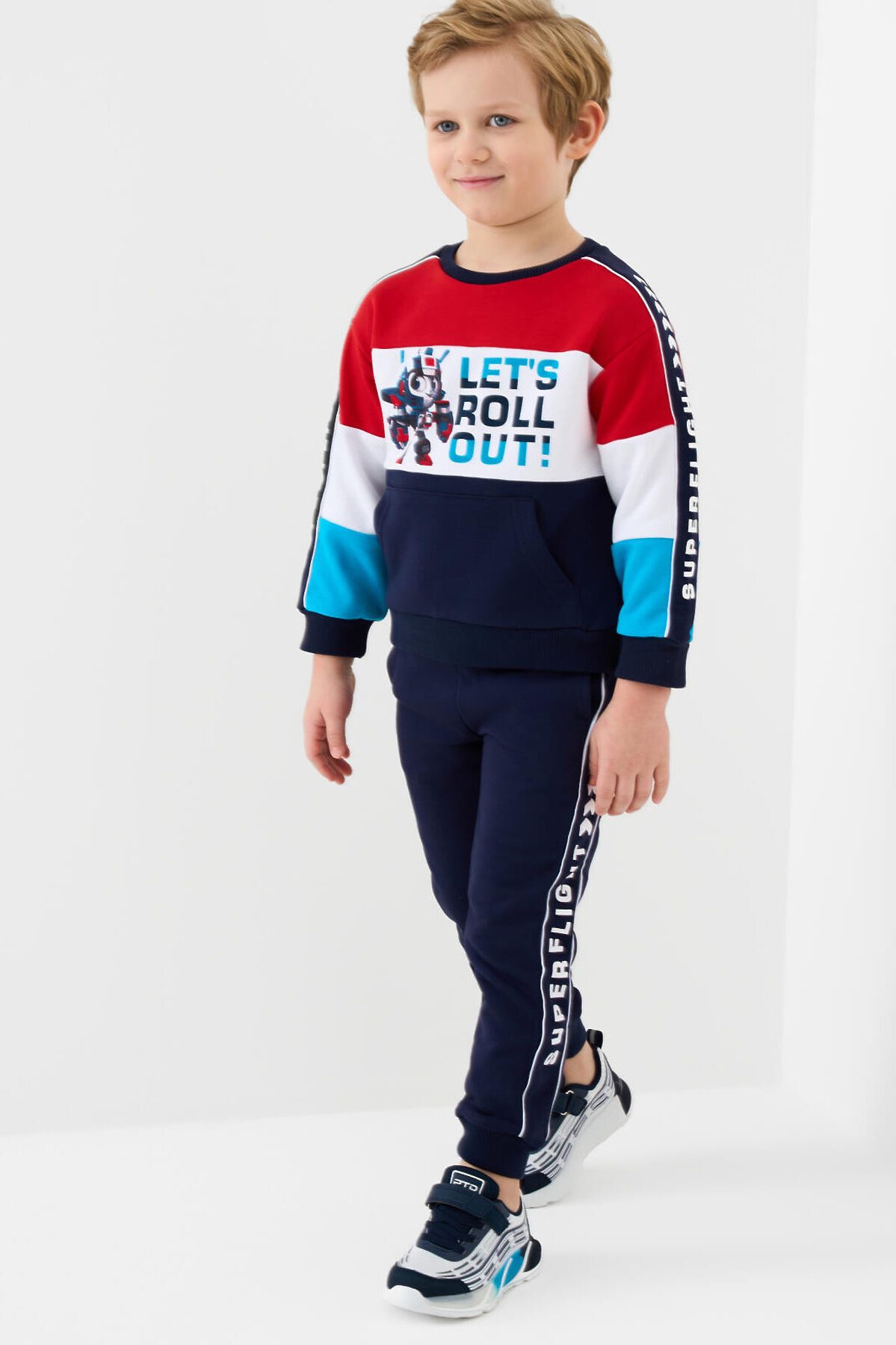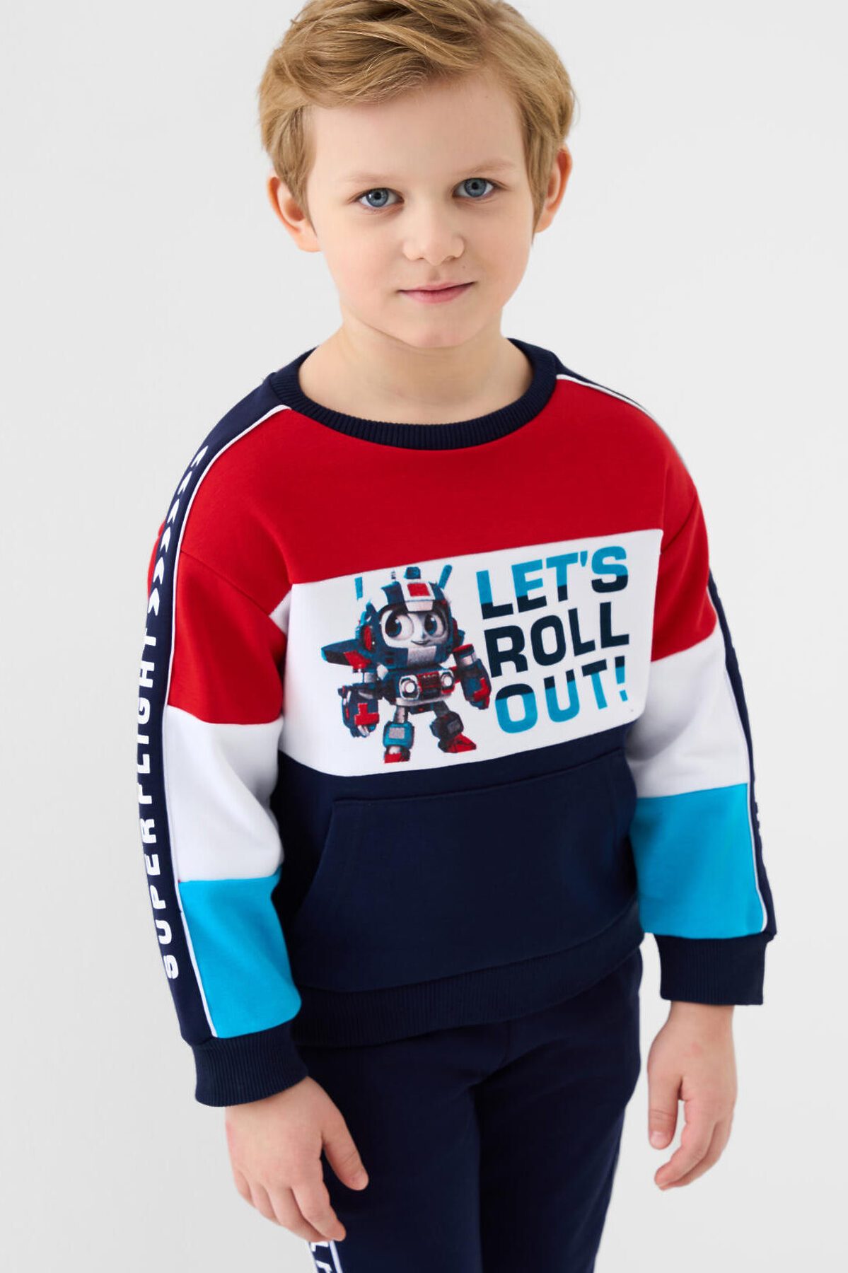 Детский свитшот оверсайз для мальчика. Выполнен из хлопкового футера без начеса. На груди и рукавах — яркий принт. Удобный карман-кенгуру. Горловина, манжеты и низ изделия выполнены из эластичного риба, что обеспечивает комфортную посадку.