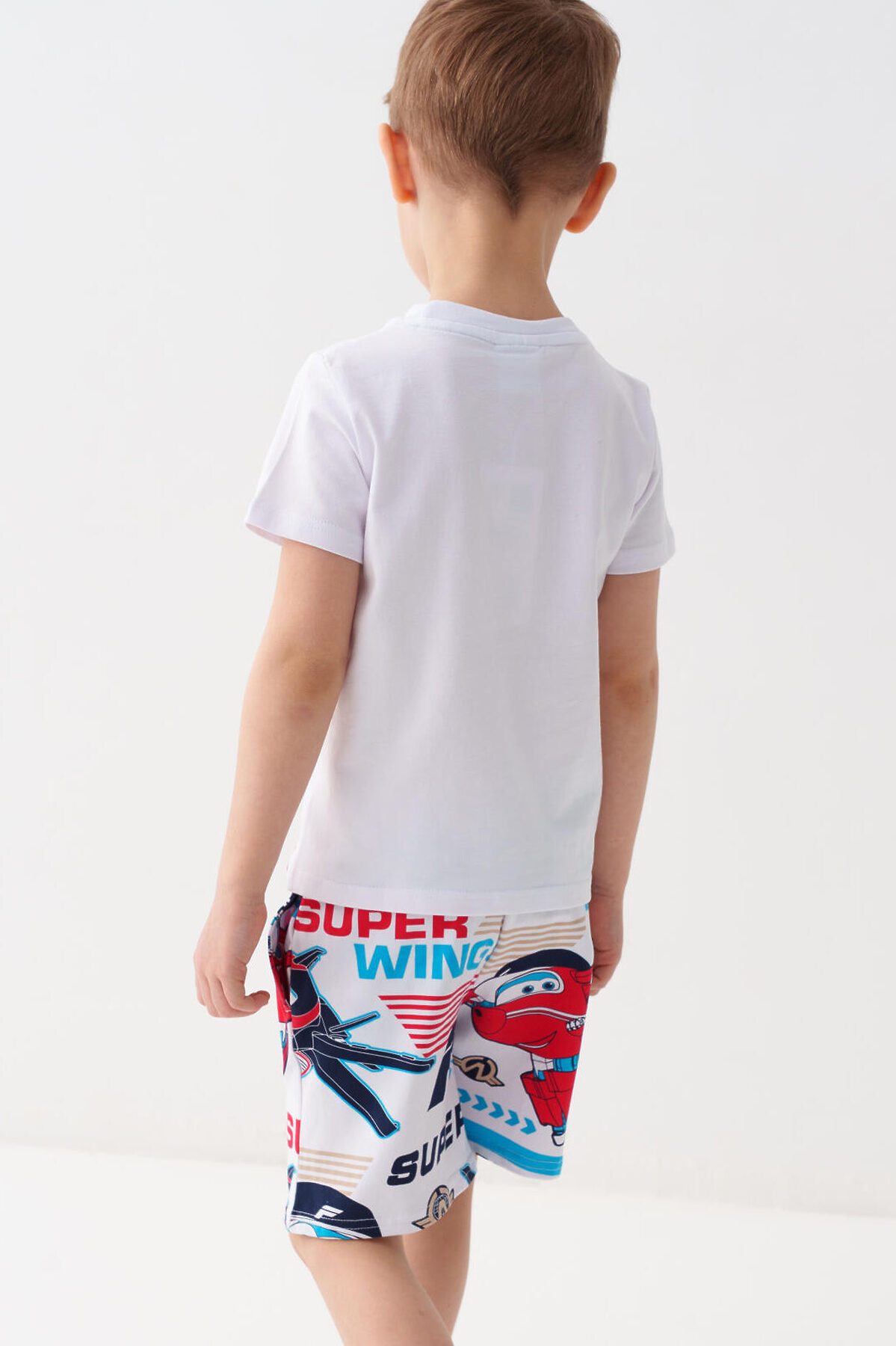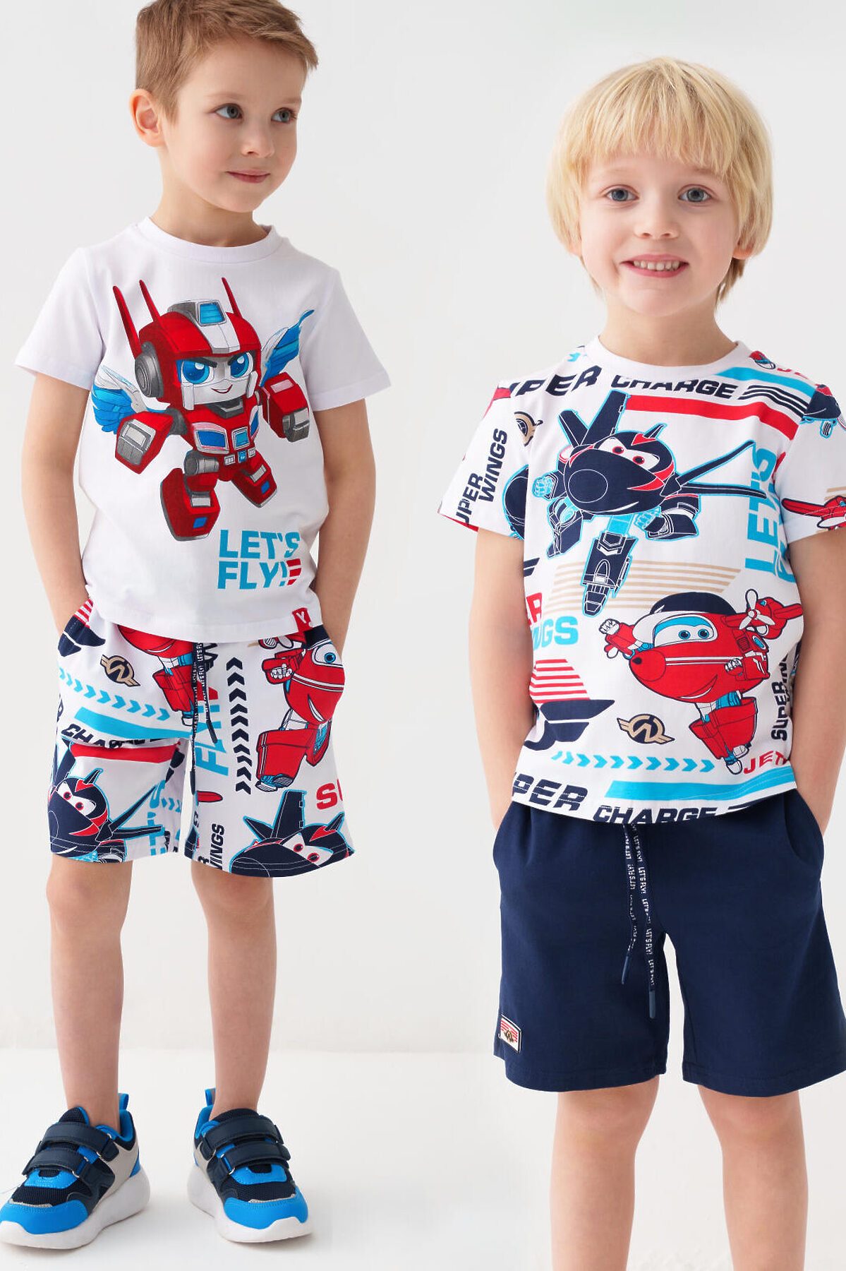 Набор детских шорт для мальчика. В комплект входят две пары шорт свободного кроя. Модели из мягкого, хлопкового трикотажа джерси. Удобная посадка обеспечивается эластичным поясом со шнуром. По бокам расположены два кармана.