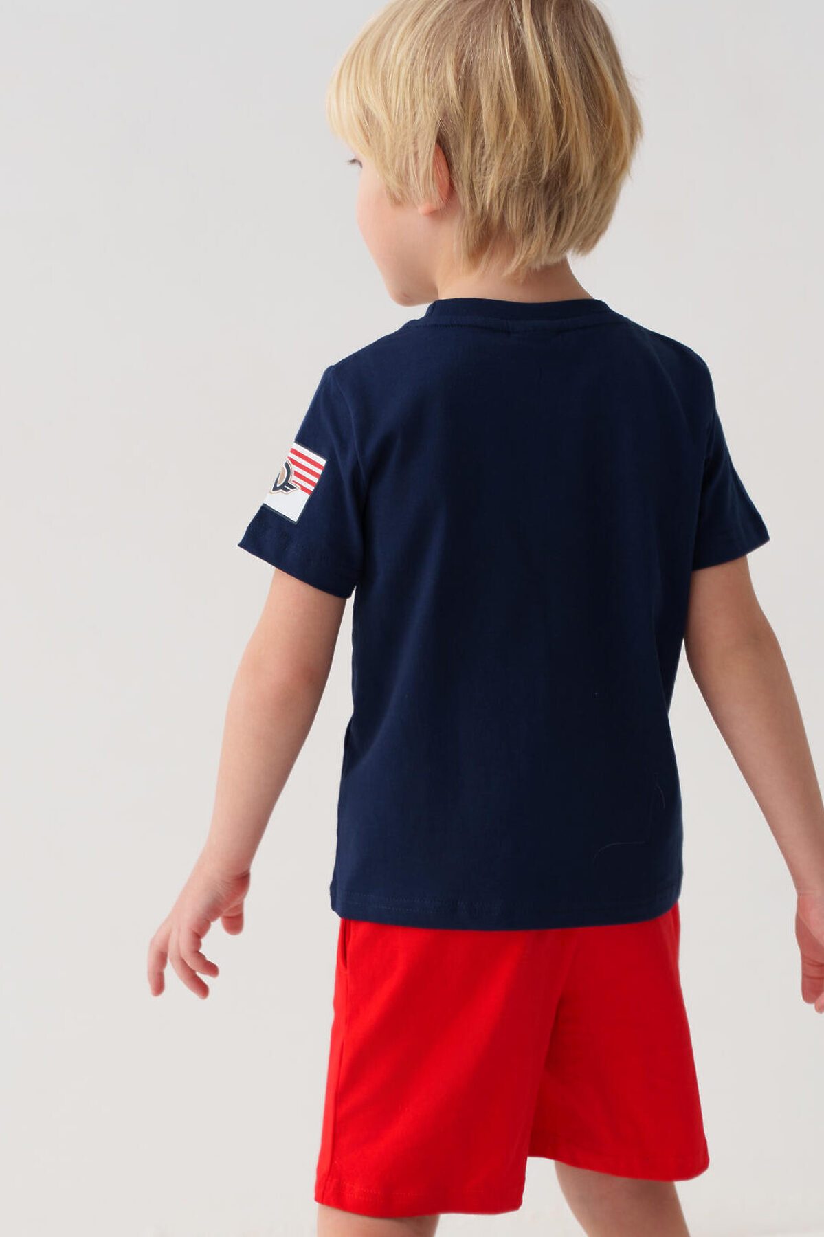 Комплект трикотажный для мальчиков: фуфайка (футболка), шорты PLAYTODAY, тёмно-синий,красный