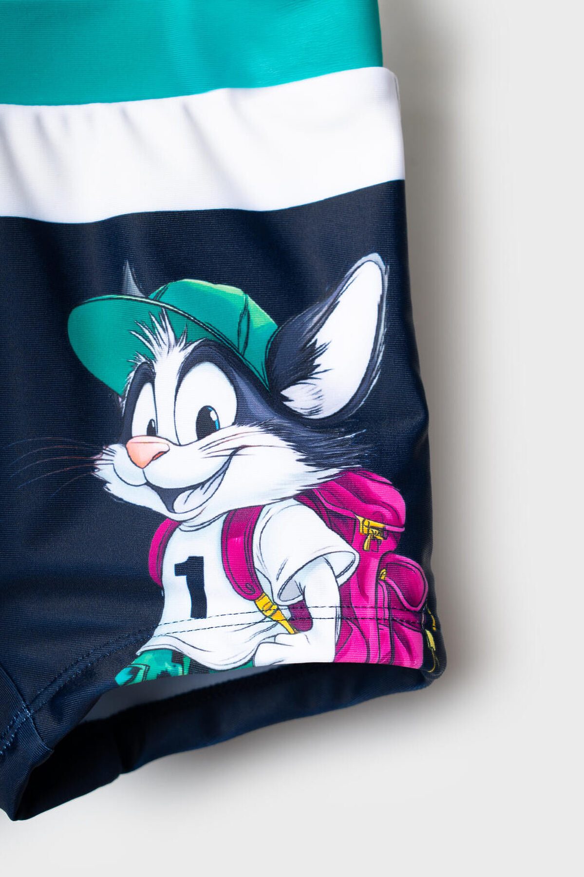 Плавки-шорты детские средней длины, прилегающего силуэта для мальчика. Изготовлены из эластичного трикотажа, с подкладкой для большего комфорта. Ткань устойчива к солнцу и солёной воде, благодаря UF-защите сохраняет насыщенность цвета и структуру волокон. В поясе — удобная резинка и регулируемый шнурок.