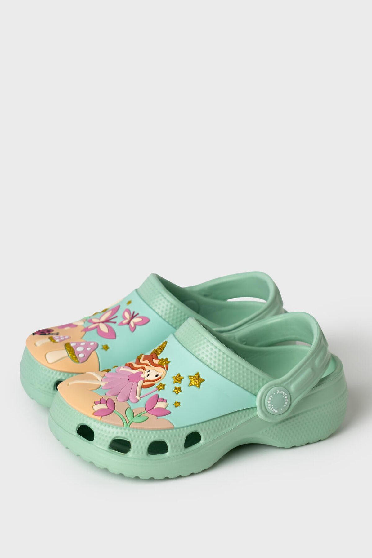 Сабо детские для девочки. Сабо из облегченного и прочного ЭВА. Материал хорошо моется. Объемный рисунок на правой и левой полупарах рассказывают нам целую историю из мира фей. Форма модели учитывает эргономику стопы. Модель имеет перекидной ремешок для лучшей фиксации обуви на ноге. Благодаря вентиляционным отверстиям сабо проветриваются, ноги ребенка дышат и не потеют. *Размер на подошве может отличаться от этикетки. Сверяйтесь с информацией на этикетке.