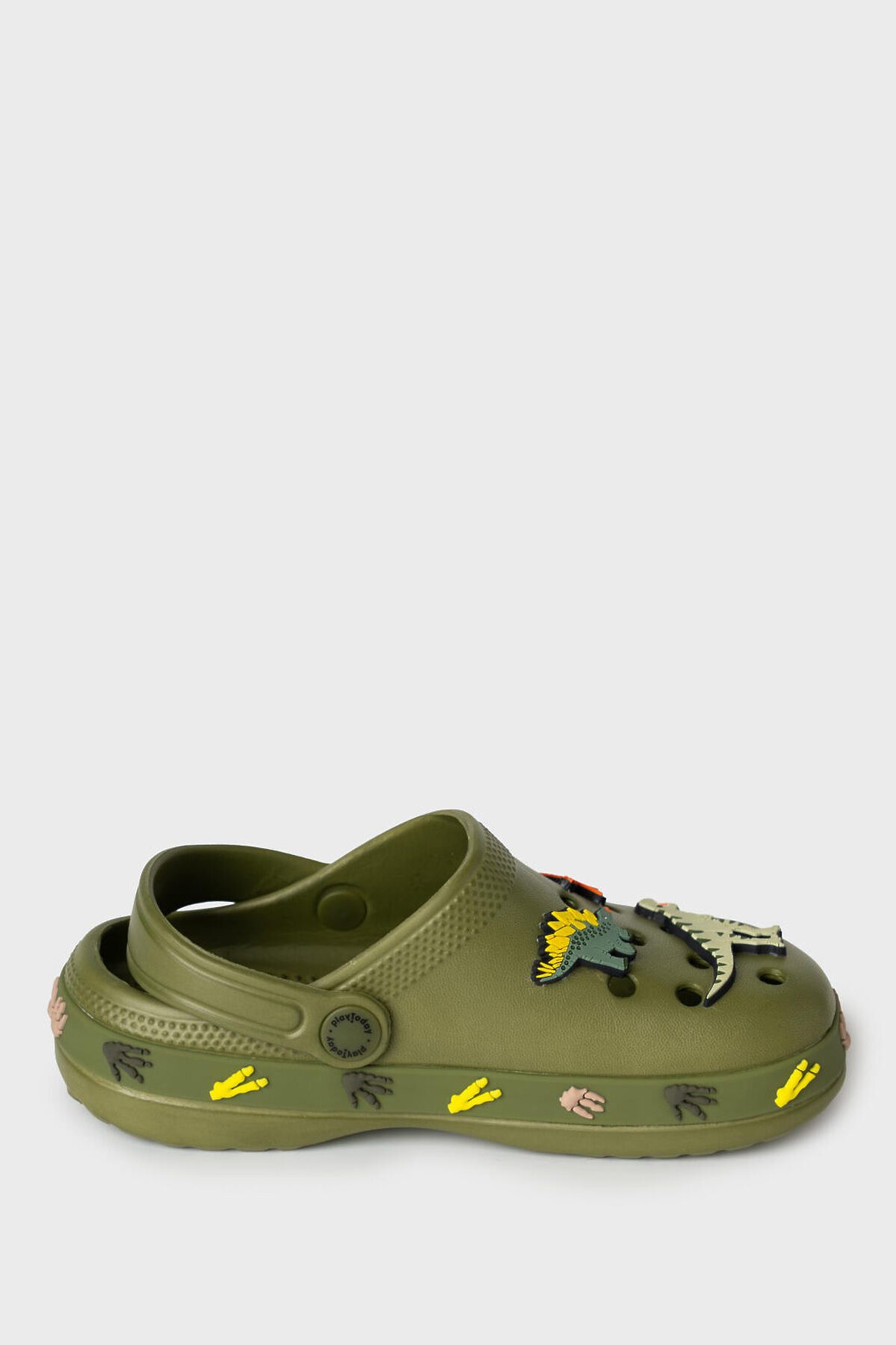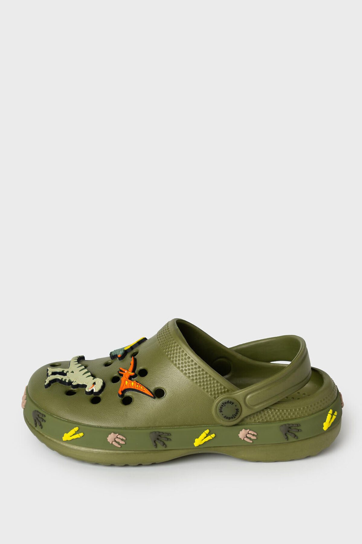 Сабо детские для мальчика. Сабо из облегченного и прочного ЭВА. Материал хорошо моется. Модель украшена джибицами динозавров. Форма модели учитывает эргономику стопы. Модель имеет перекидной ремешок для лучшей фиксации обуви на ноге. Благодаря вентиляционным отверстиям сабо проветриваются, ноги ребенка дышат и не потеют. *Размер на подошве может отличаться от этикетки. Сверяйтесь с информацией на этикетке.
