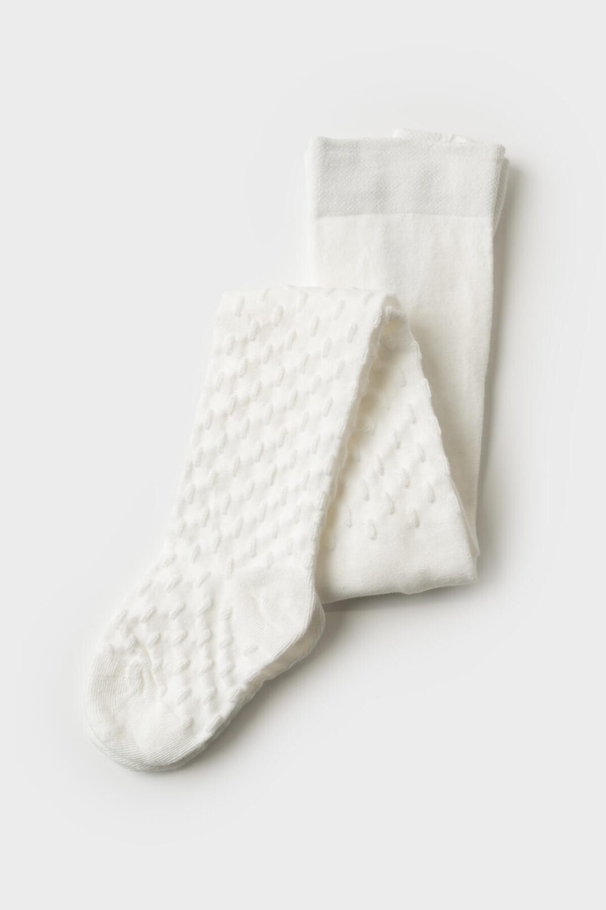 Детские колготки для девочки. Базовая модель в белом цвете. Колготки тянутся, хорошо сидят за счёт эластичного пояса, имеют удобную посадку и усиленный мысок и пятку. Материал — мягкий хлопковый трикотаж.