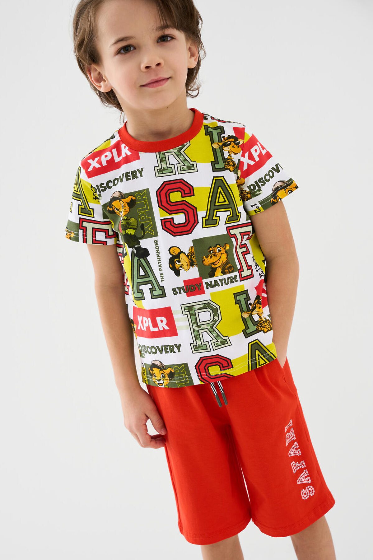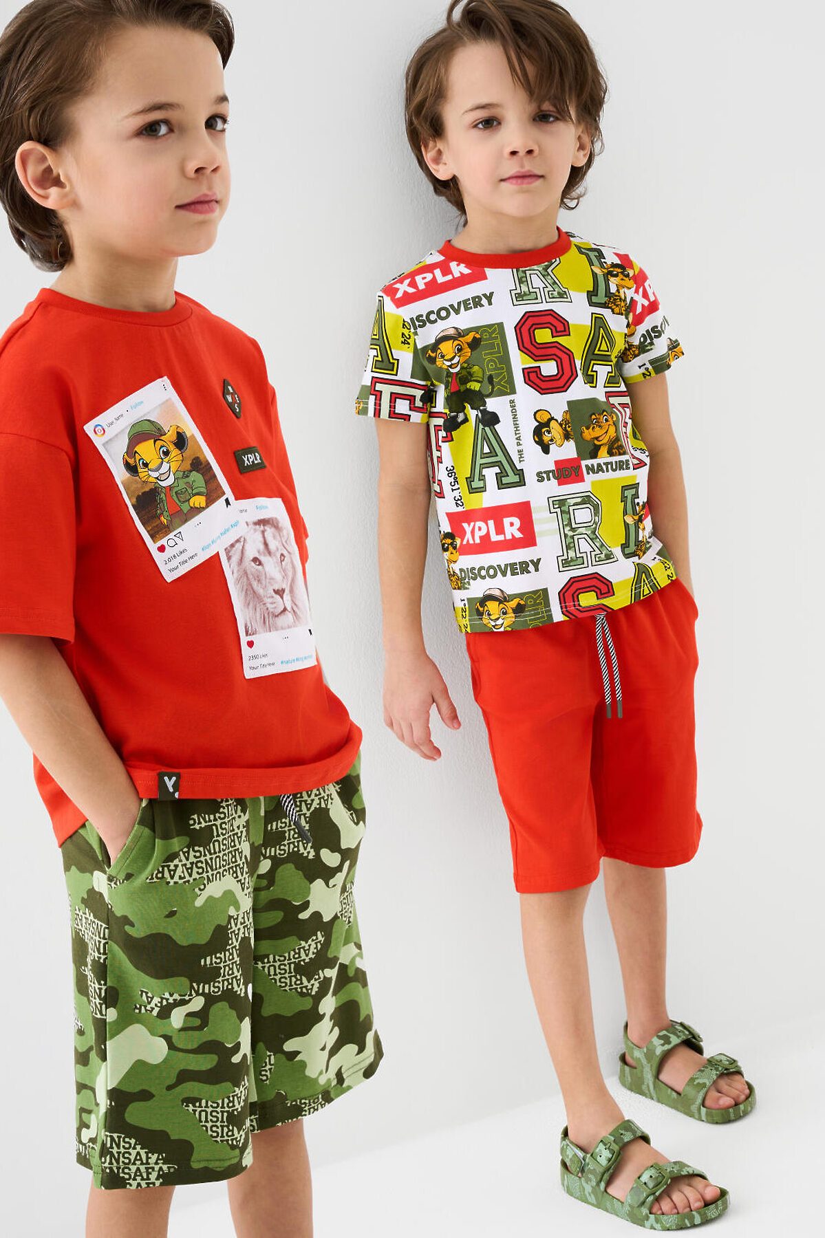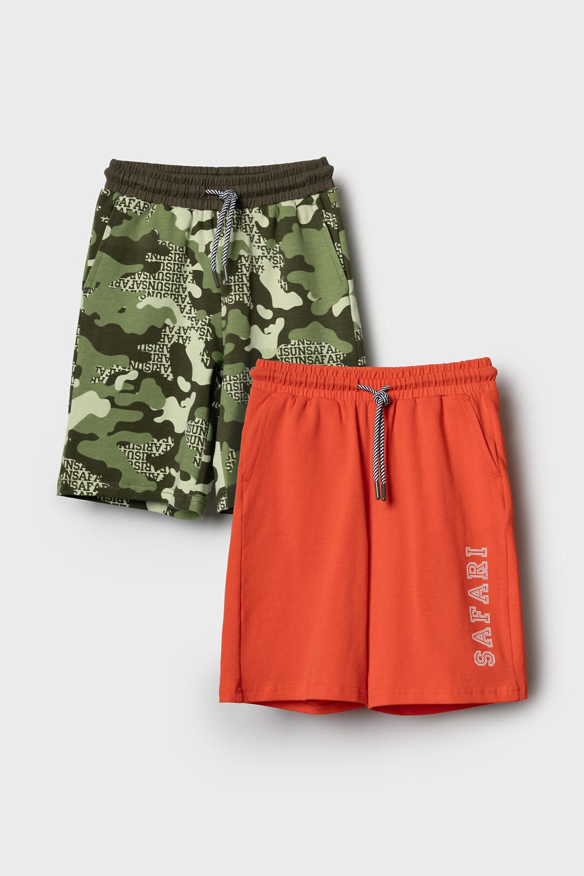 Набор детских шорт для мальчика. В комплект входят две пары шорт свободного кроя. Модели из мягкого, хлопкового трикотажа джерси. Удобная посадка обеспечивается эластичным поясом со шнуром. По бокам расположены два кармана.