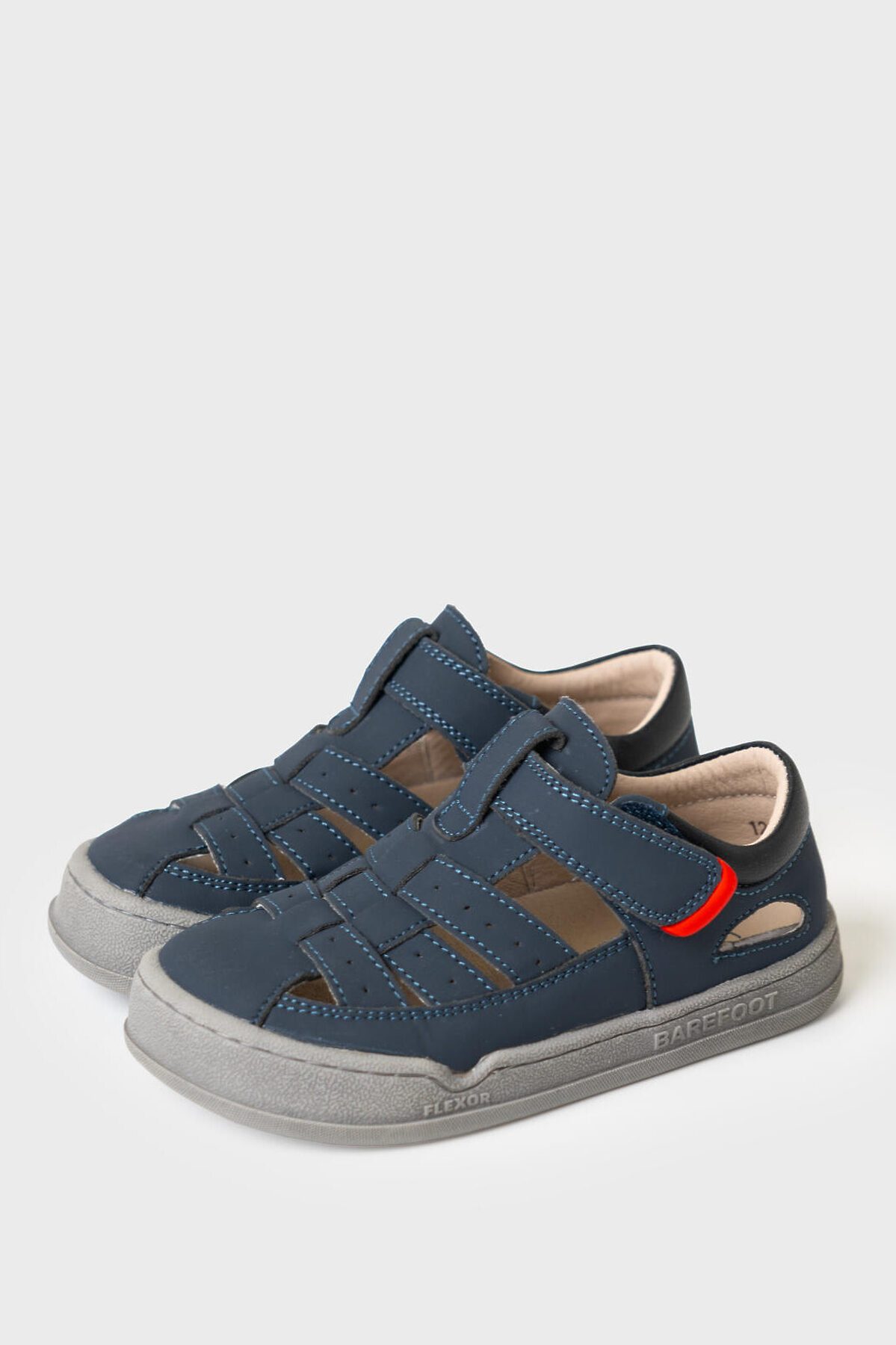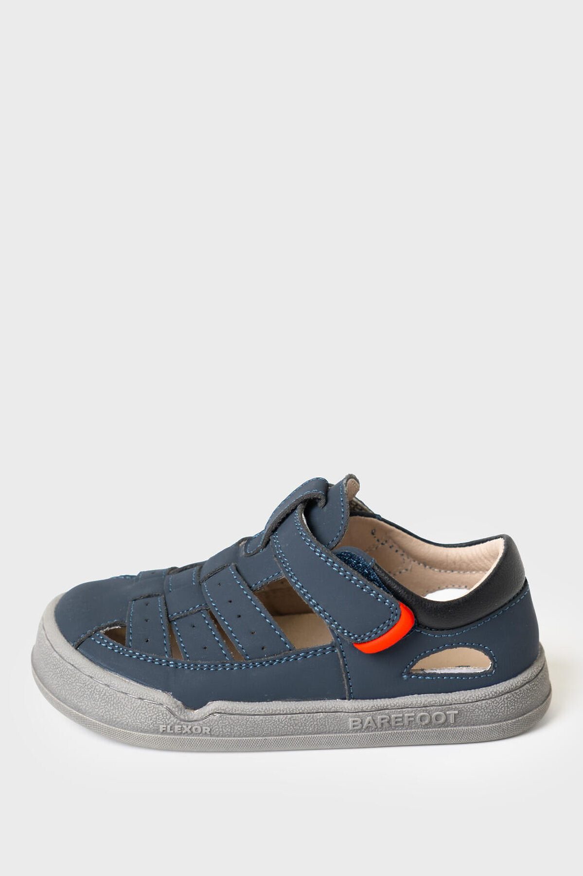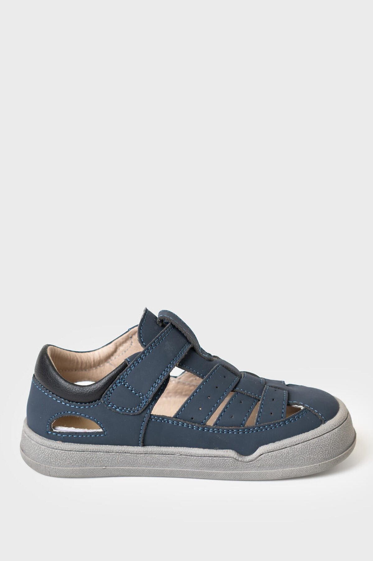 Сандалии для мальчика с закрытой носочной и пяточной частью выполнены из искусственного нубука. Удобный ремень с липучкой позволяют регулировать обувь на любой подъем и позволяют ребенку обуваться самостоятельно. Подкладка выполнена из натуральной свиной кожи. Стелька выполнена из натуральной кожи. Подошва из ТПР гибкая и нескользкая. Подошва дополнительно прошита по бортику для дополнительной прочности и гибкости. Парфюмированная подошва имеет запах кокоса. Модель выполнена по технологии BAREFOOT (босоногая обувь): широкая носочная часть повторяет естественную форму стопы ребенка, легкая, гибкая и хорошо амортизирующая подошва, специальный рисунок протектора подошвы, имитирующий присоски осьминога для лучшего сцепления с дорогой.