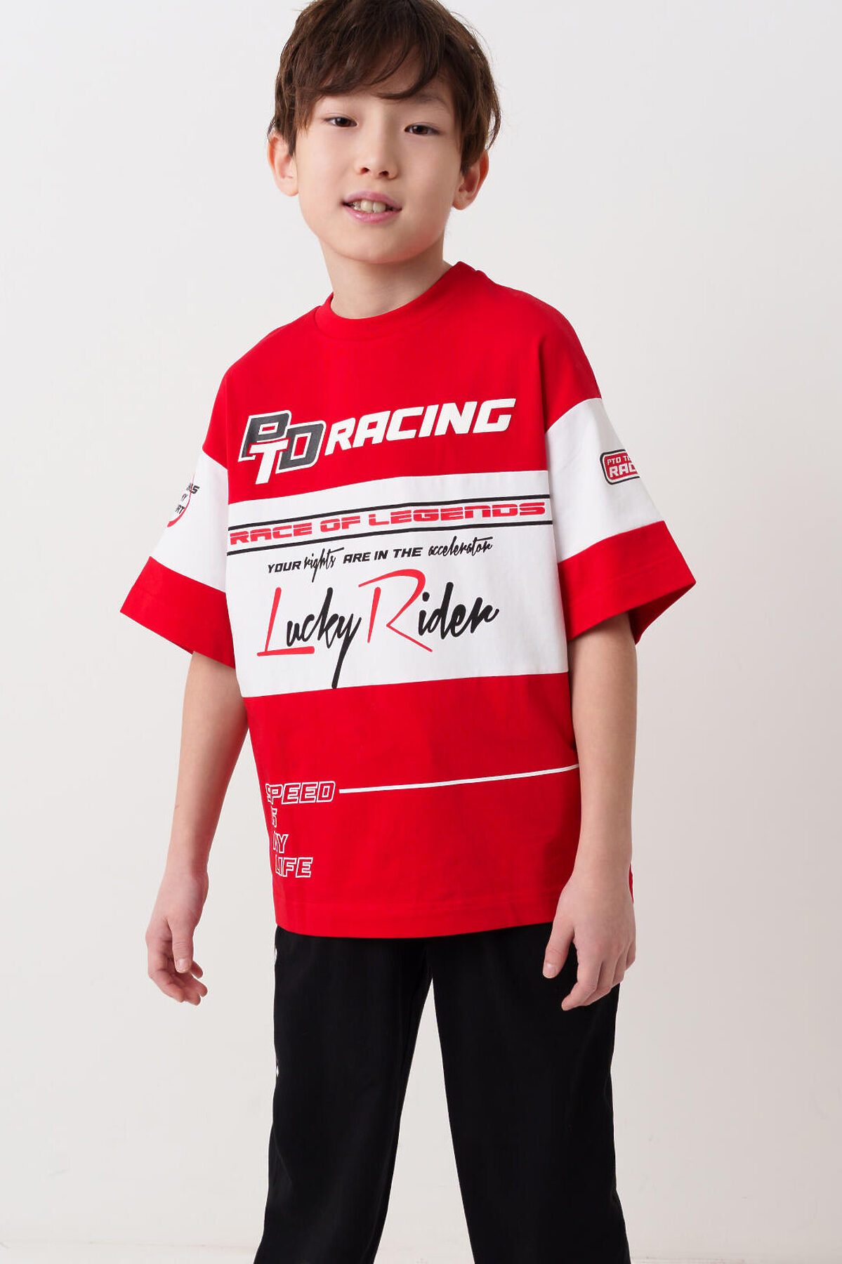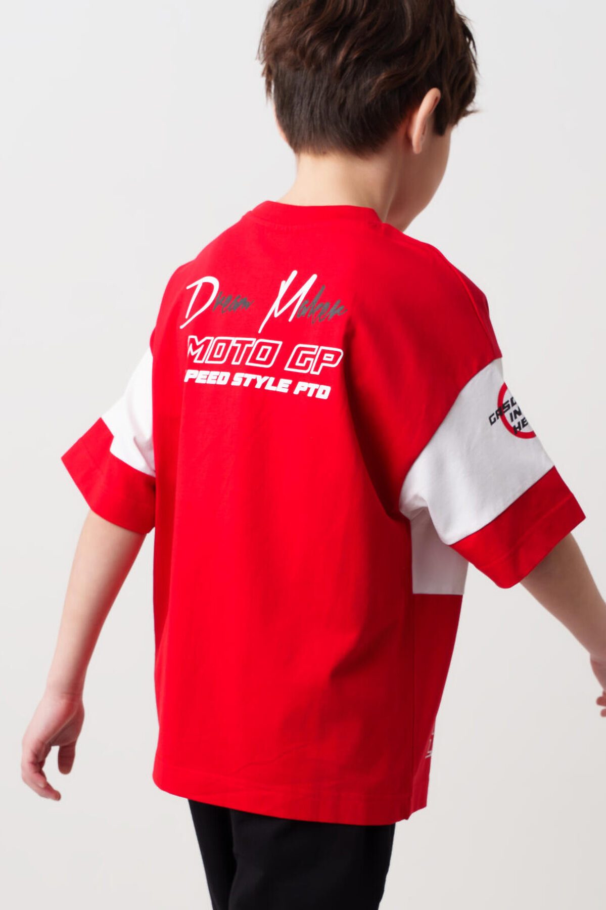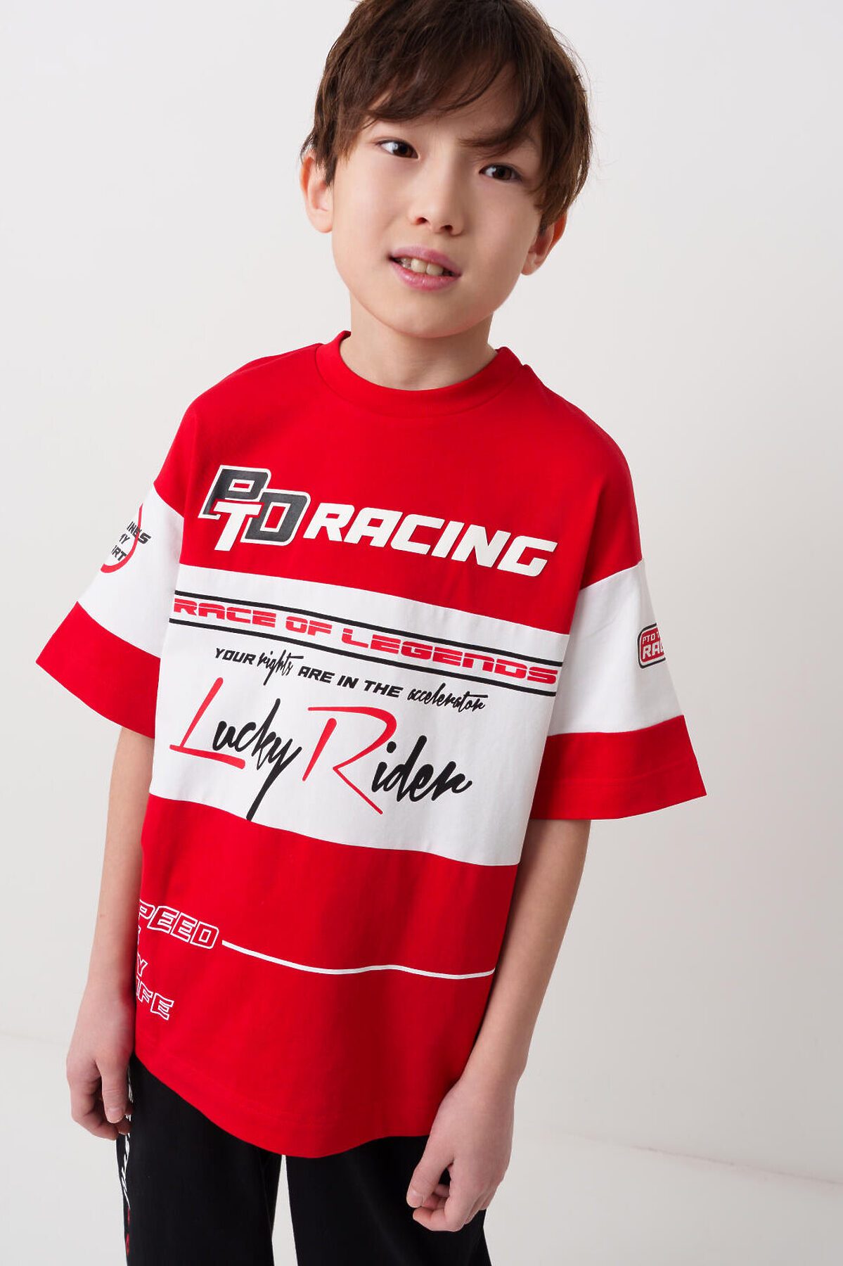 Костюм для мальчика подростка. Состоит из футболки с коротким рукавом и брюк джоггеров. Футболка оверсайз с яркими принтами в гоночной тематике. Брюки выполнены из плотного хлопкового трикотажа. Модель с комфортной посадкой, пояс на резинке дополнен шнурком. Удобные боковые карманы. Внизу — эластичные манжеты.